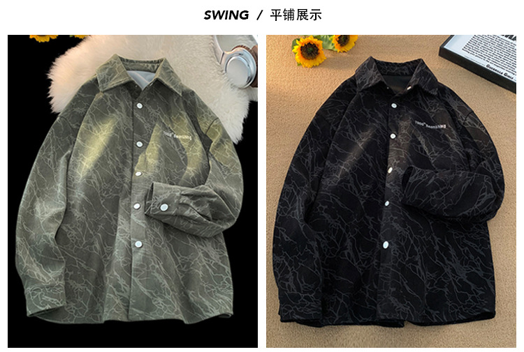 아메리칸 스타일 레트로 코듀로이 셔츠 남성용 트렌디 브랜드 봄 자수 하이 엔드 느낌 코피 핸섬 셔츠 홍콩 스타일 일본 재킷스토어 가기