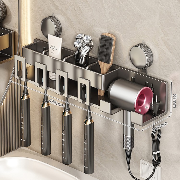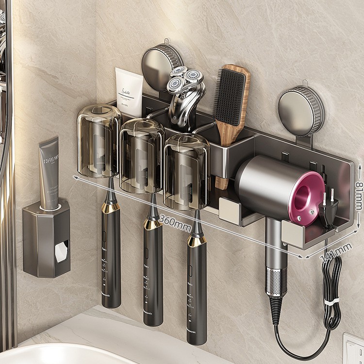 • 흡착컵·헤어드라이어 수납선반+칫솔꽂이·더블+치약 압착기
