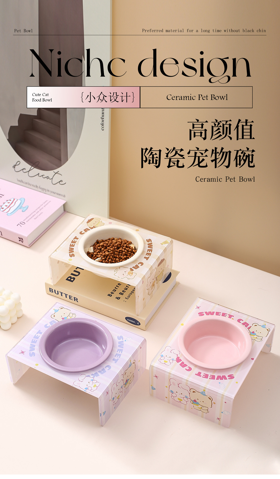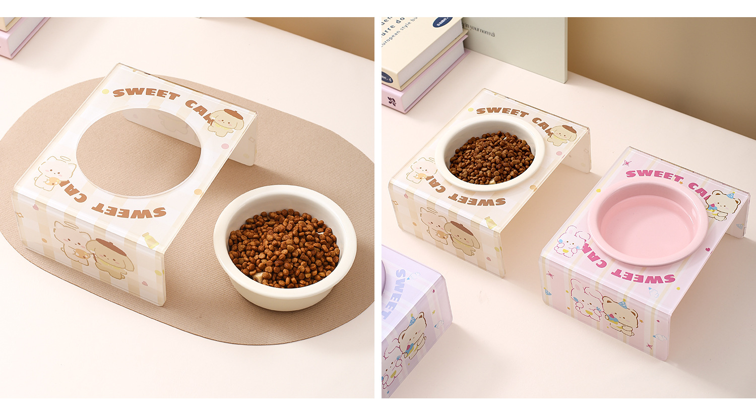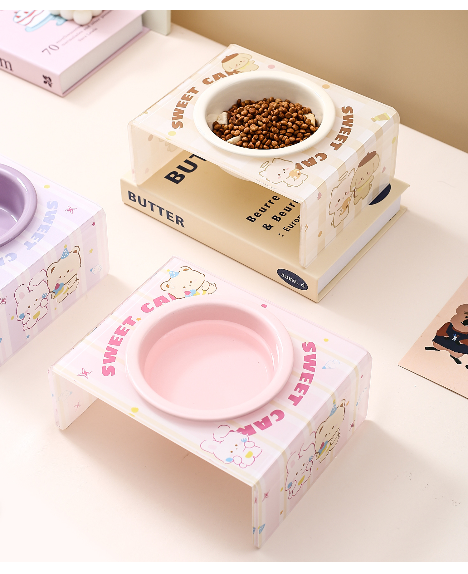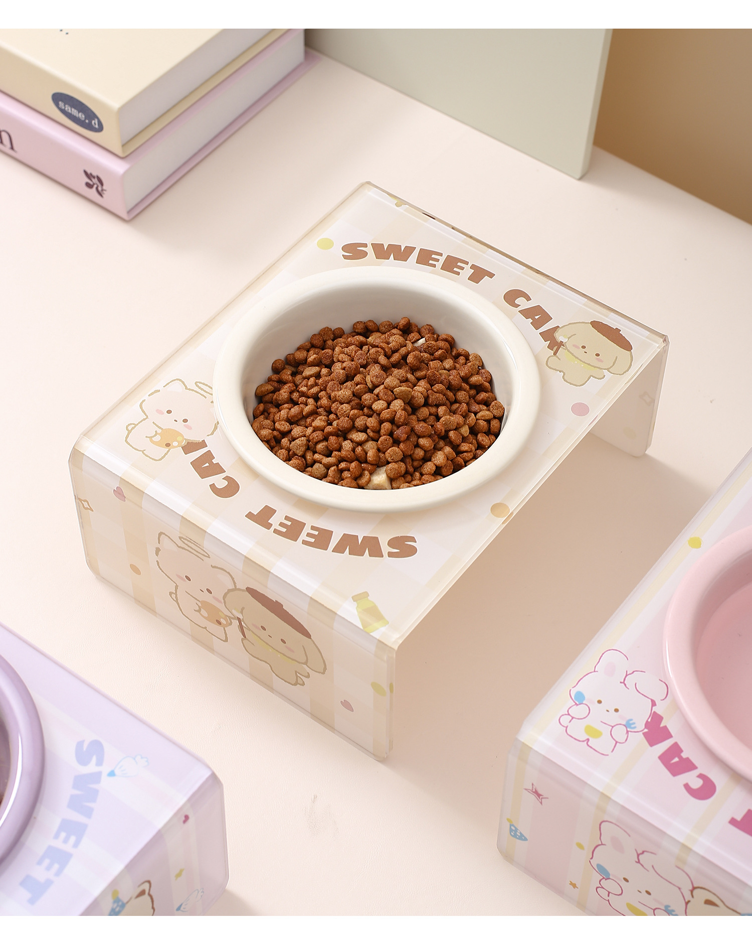 토끼 곰 아크릴 랙 가장자리 보호자와 창조적 인 크림 스타일 애완 동물 그릇 물 그릇 고양이 개 밥 그릇 마시는 그릇 개 음식 분지스토어 가기