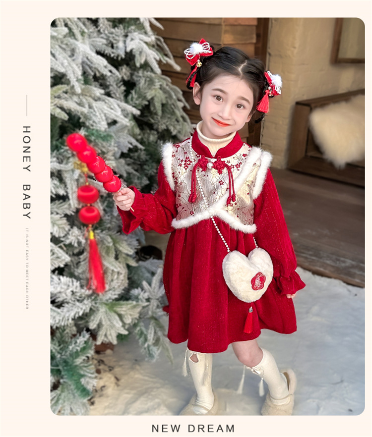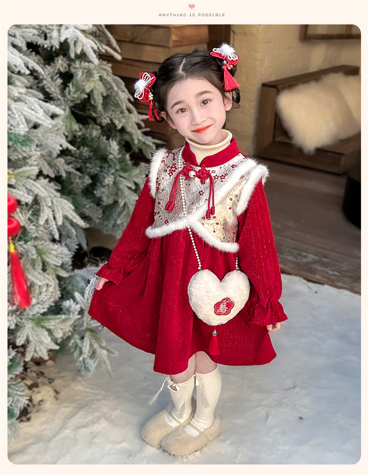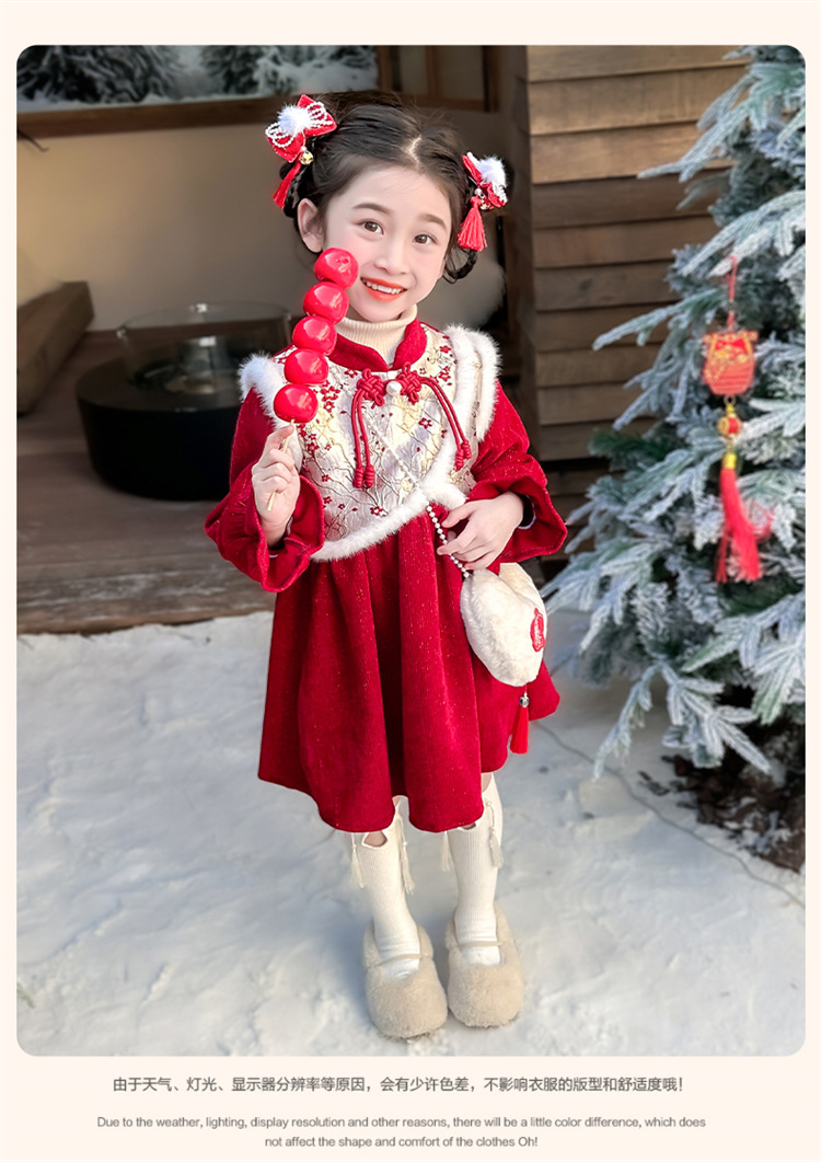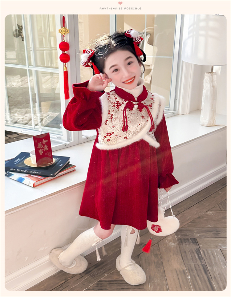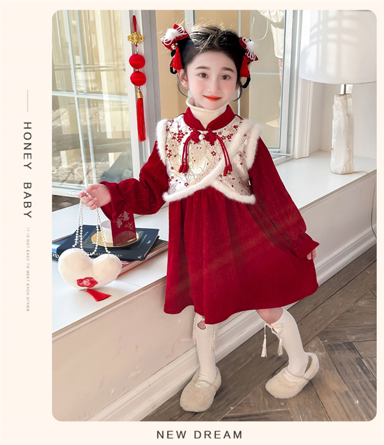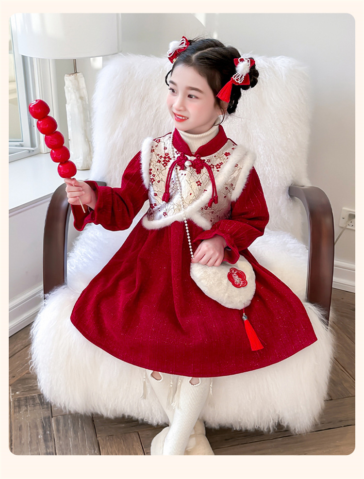 여자 신년 붉은 원피스 가을 겨울 청삼 원피스 2025 봄 축제 소녀 중국 스타일 신년 원피스 공주 원피스스토어 가기