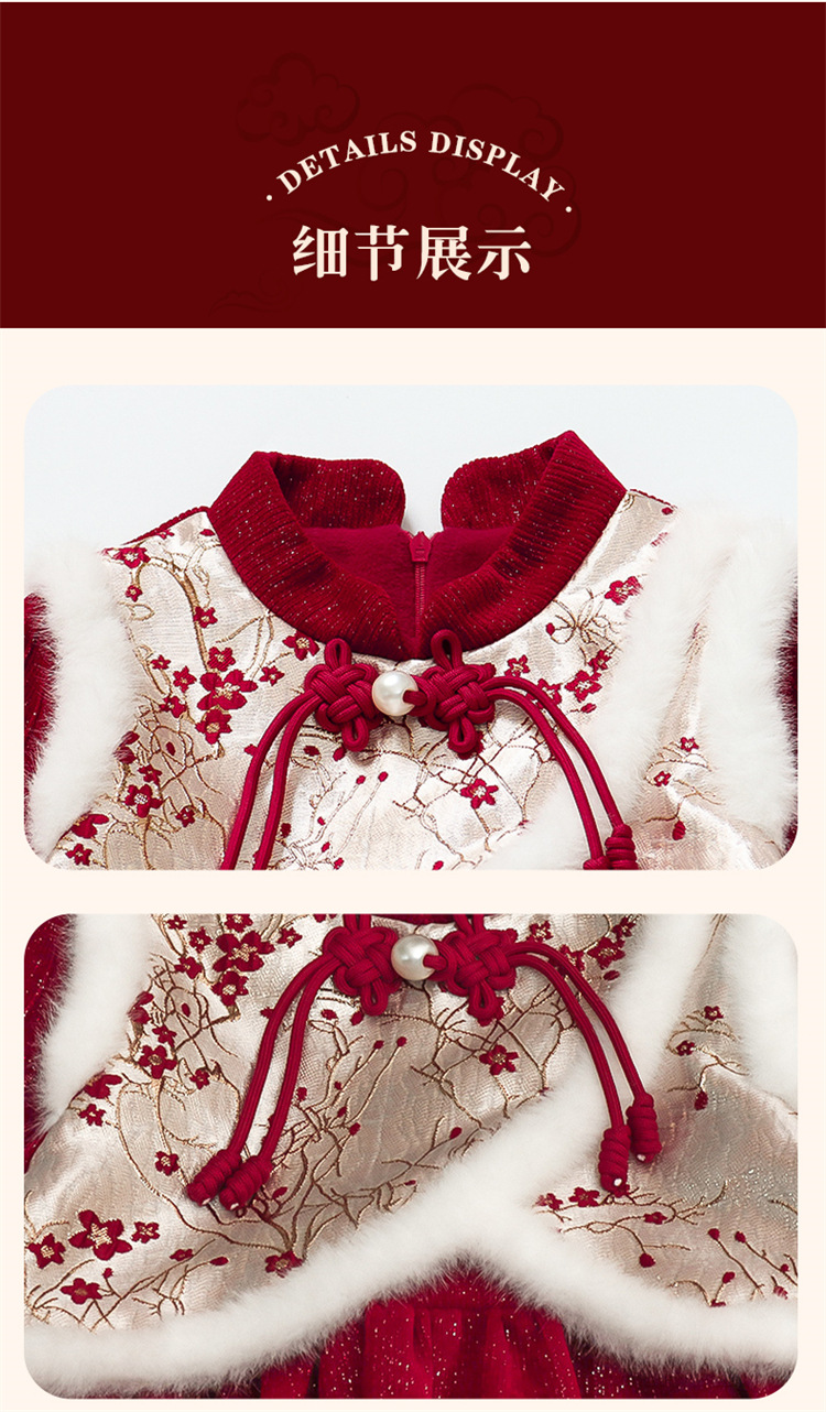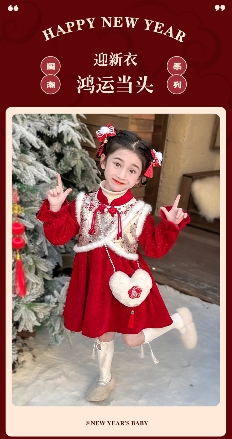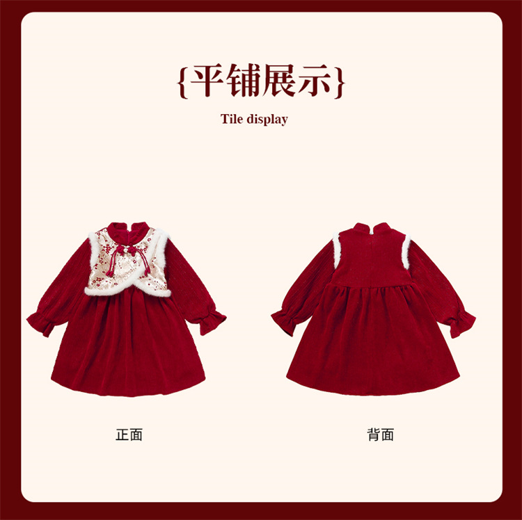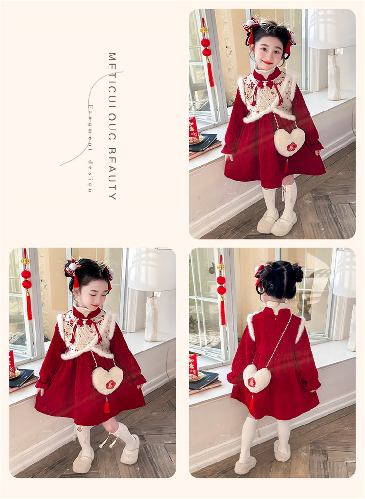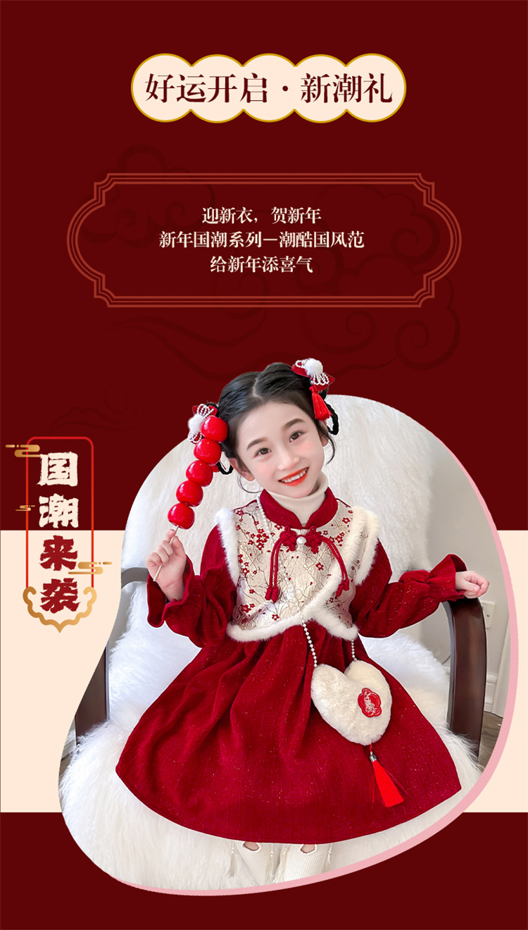 여자 신년 붉은 원피스 가을 겨울 청삼 원피스 2025 봄 축제 소녀 중국 스타일 신년 원피스 공주 원피스스토어 가기