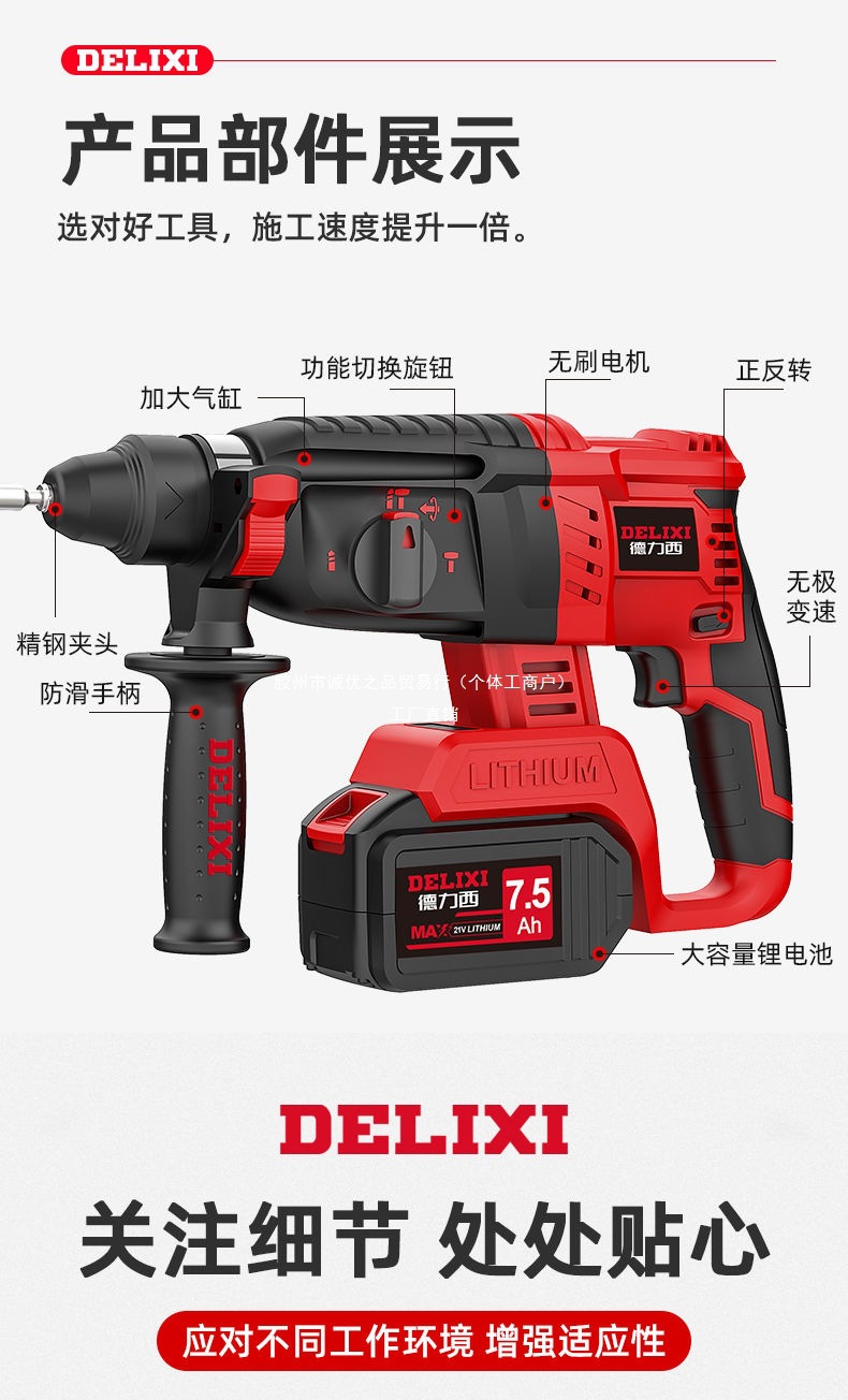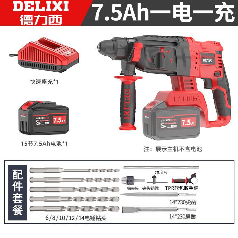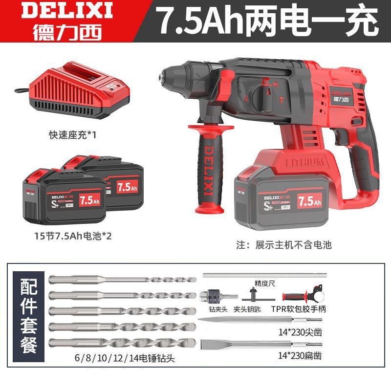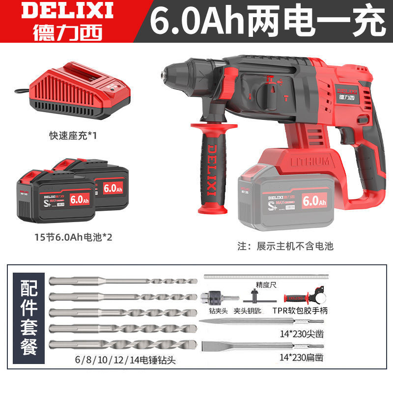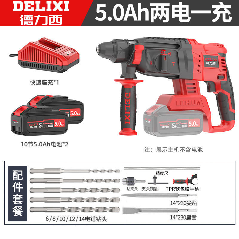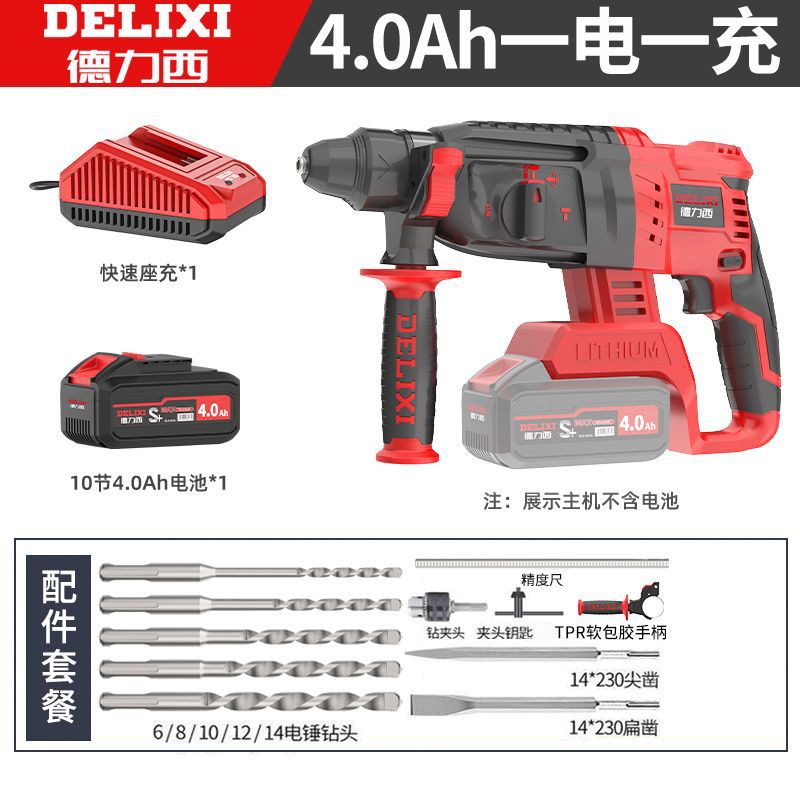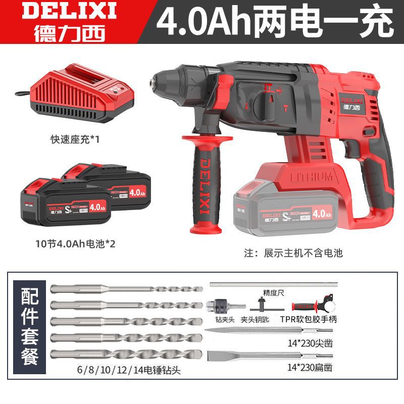 Delixi 충전식 전기 해머 리튬 배터리 브러시리스 충격 드릴 콘크리트 드릴링 돌 드릴링 무선 야외 전기 픽스토어 가기