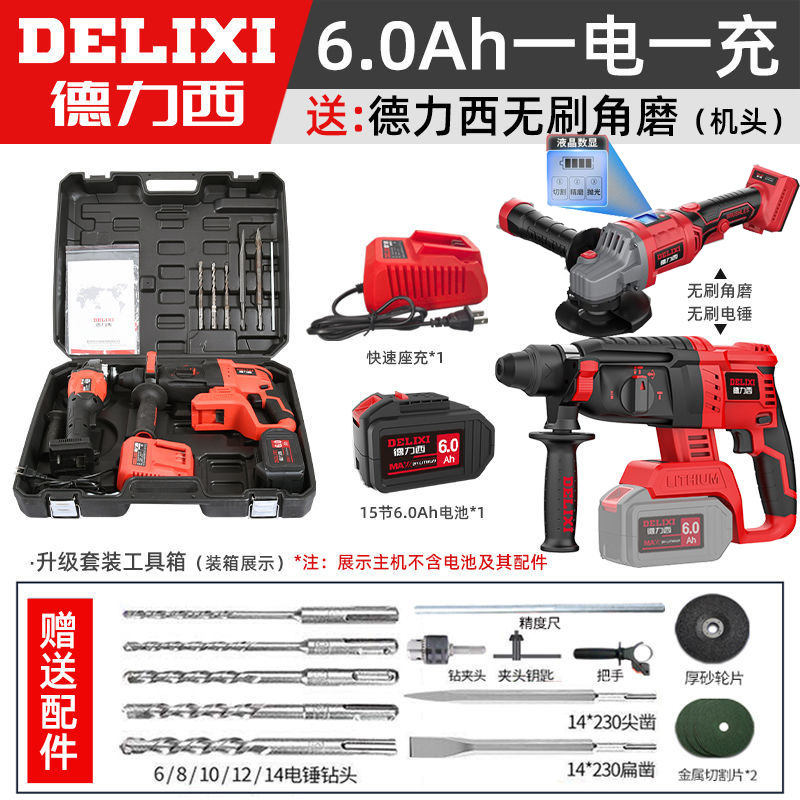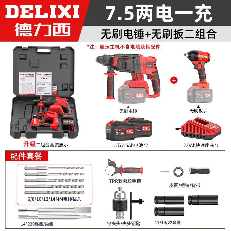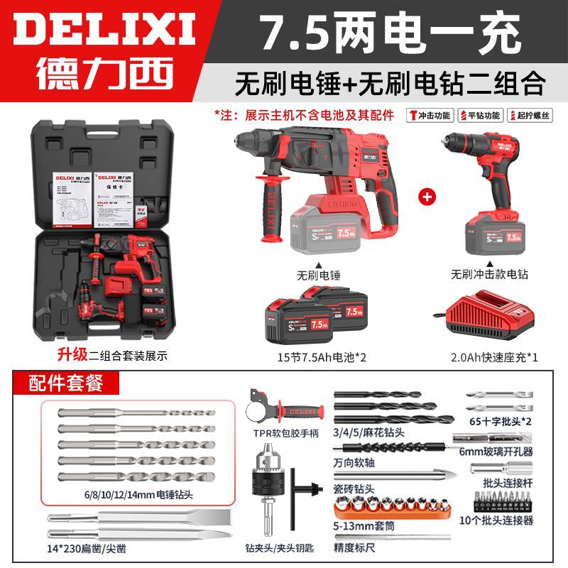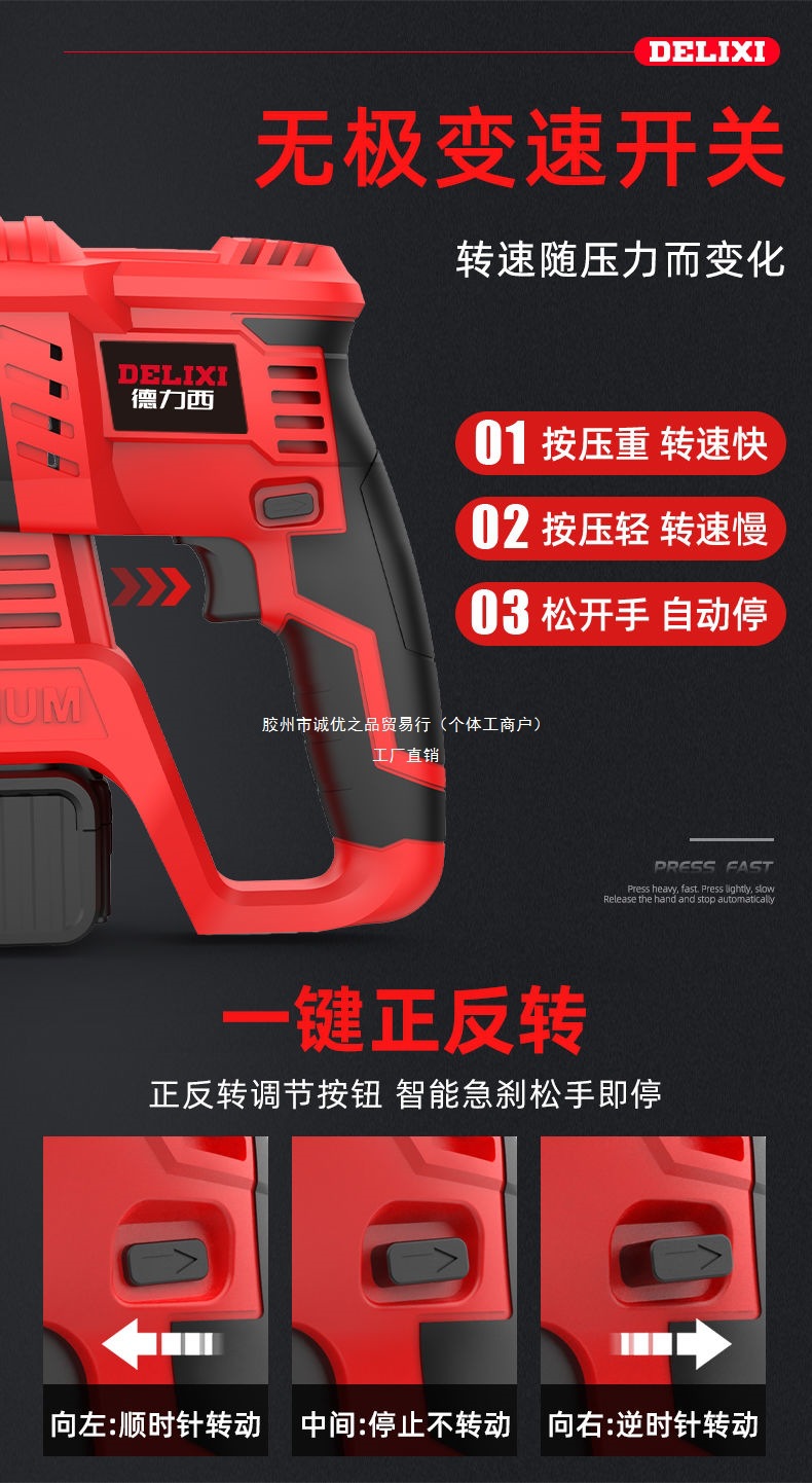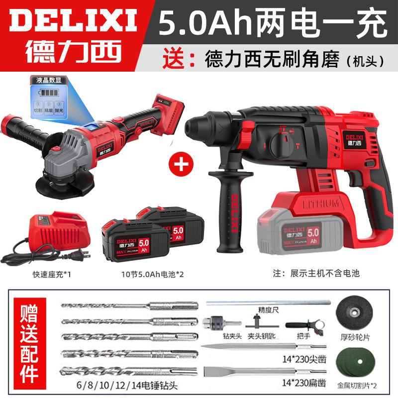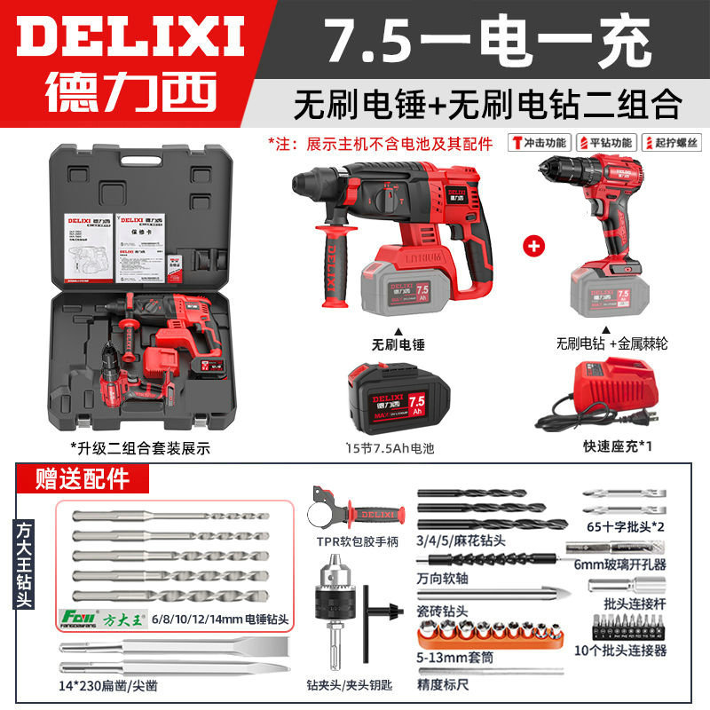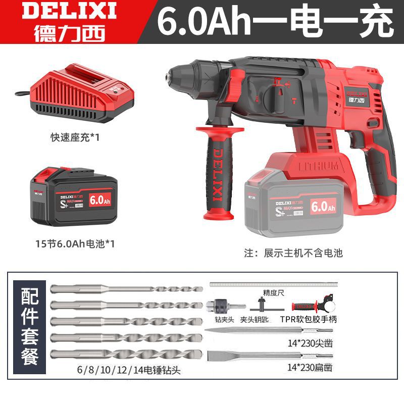 Delixi 충전식 전기 해머 리튬 배터리 브러시리스 충격 드릴 콘크리트 드릴링 돌 드릴링 무선 야외 전기 픽스토어 가기