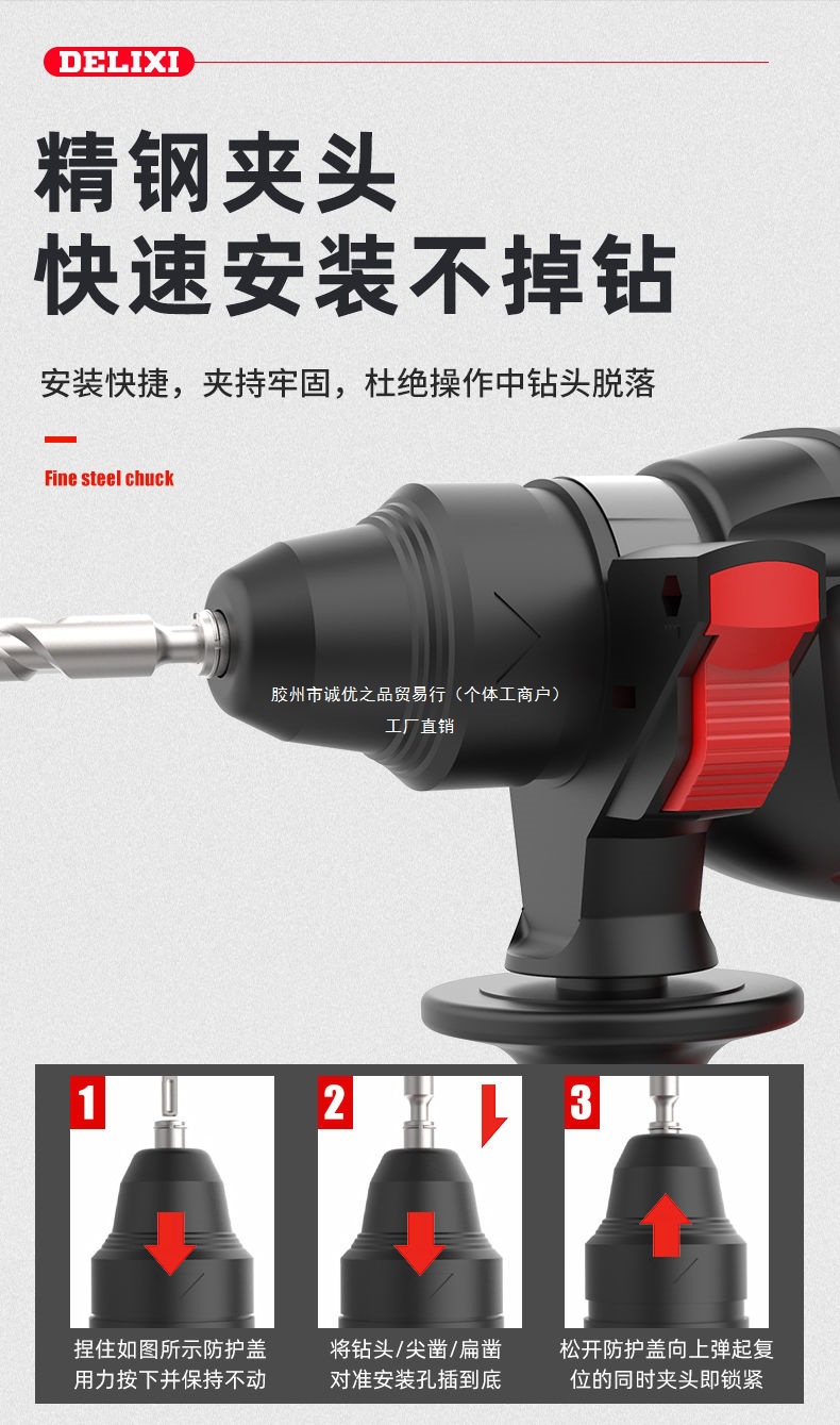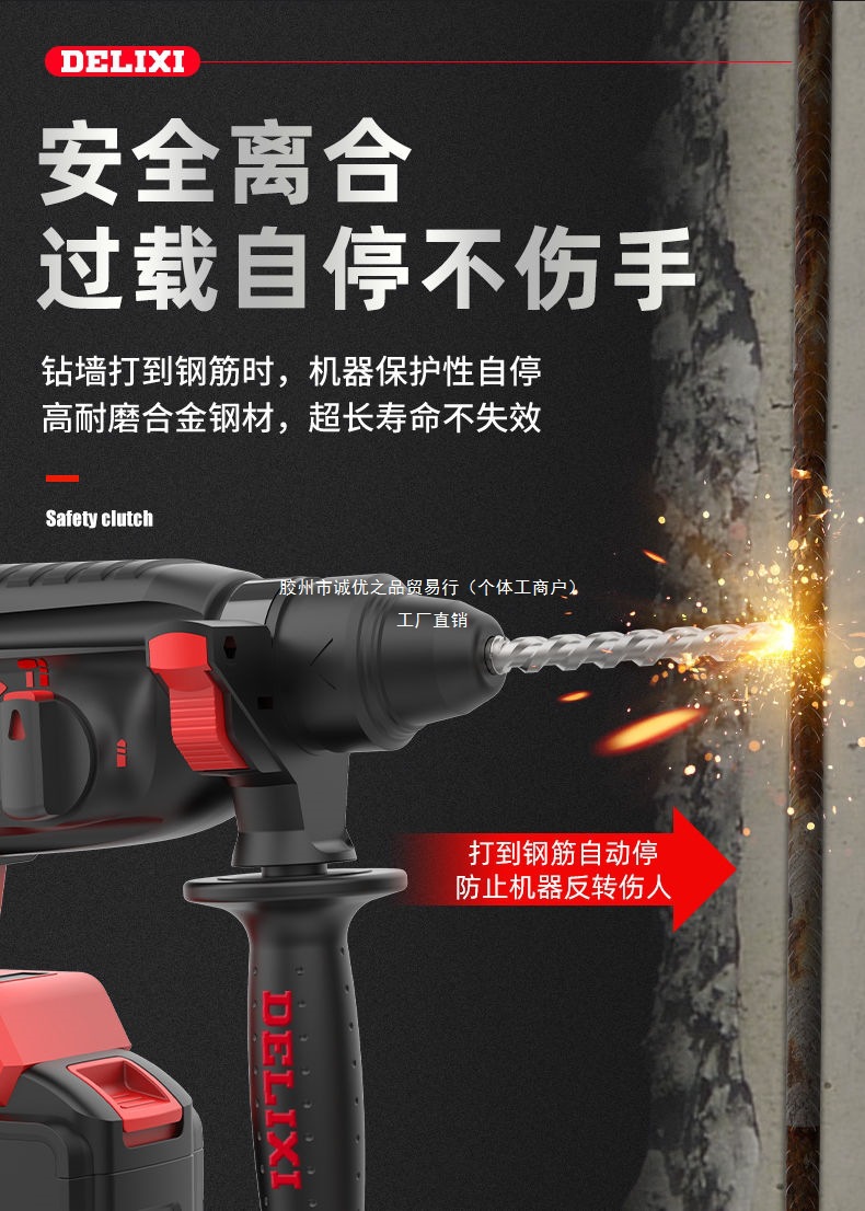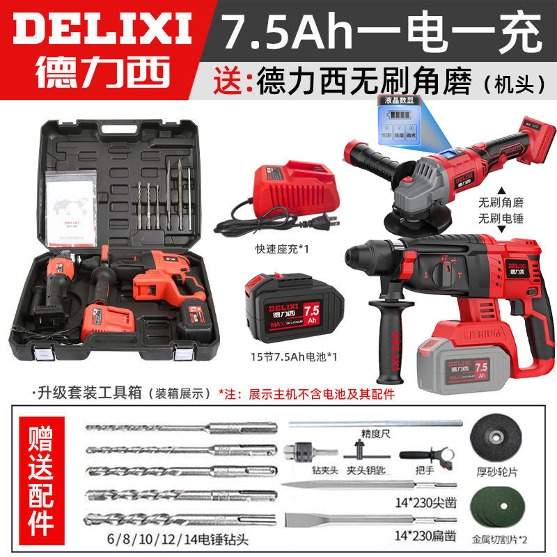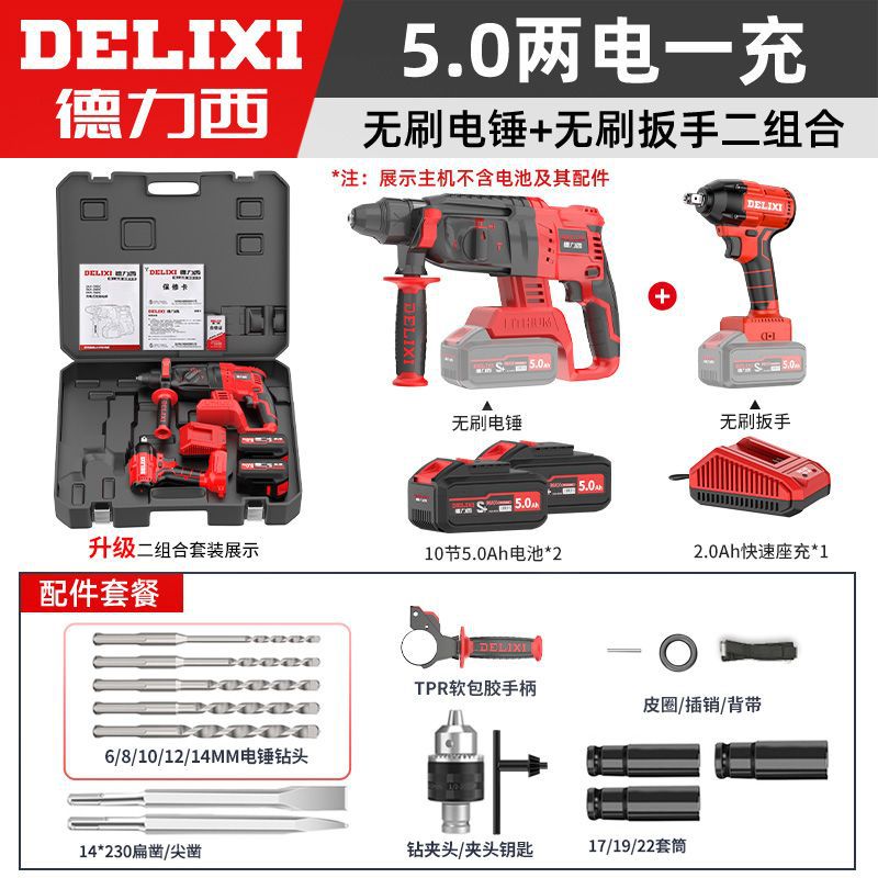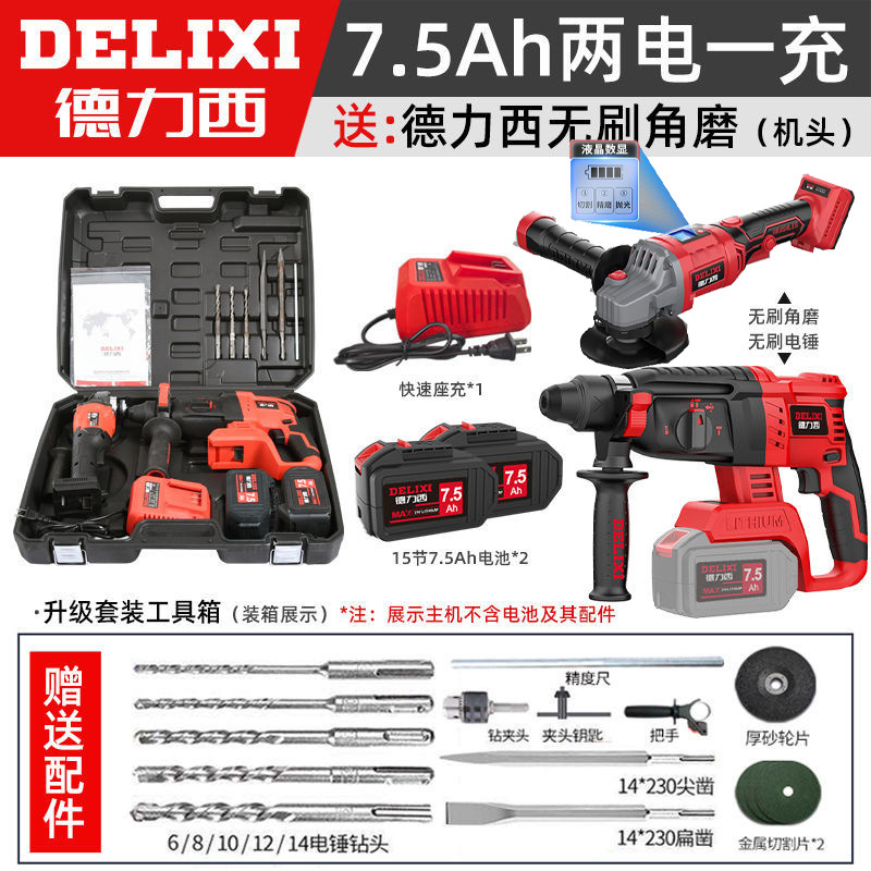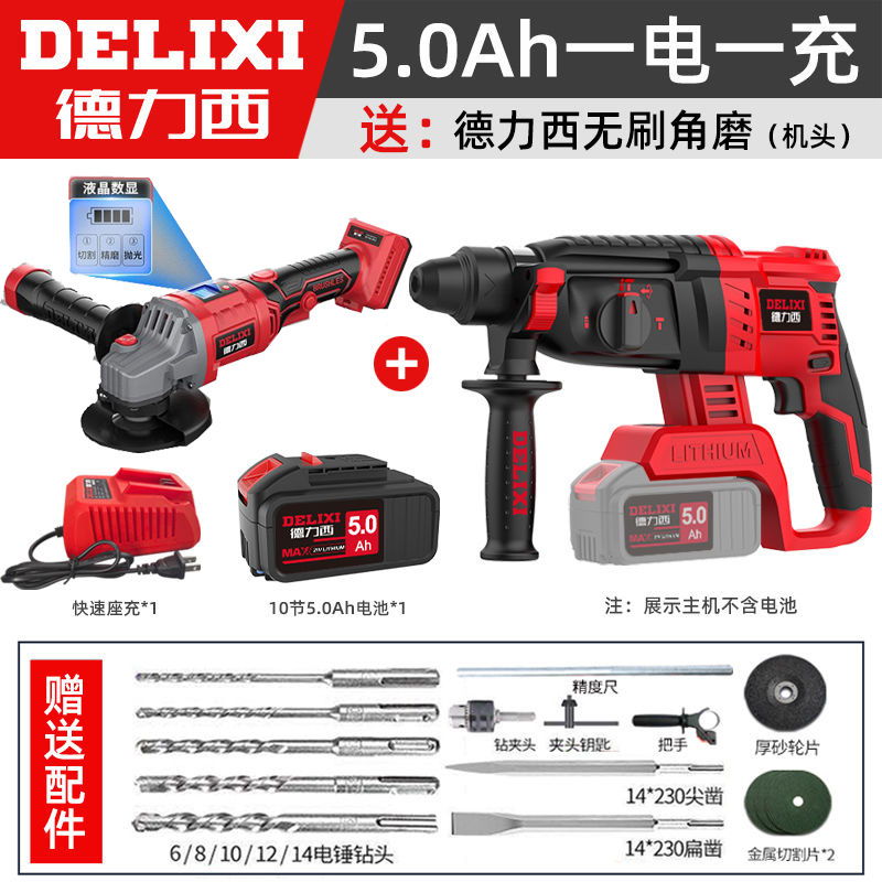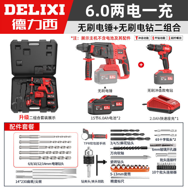 Delixi 충전식 전기 해머 리튬 배터리 브러시리스 충격 드릴 콘크리트 드릴링 돌 드릴링 무선 야외 전기 픽스토어 가기