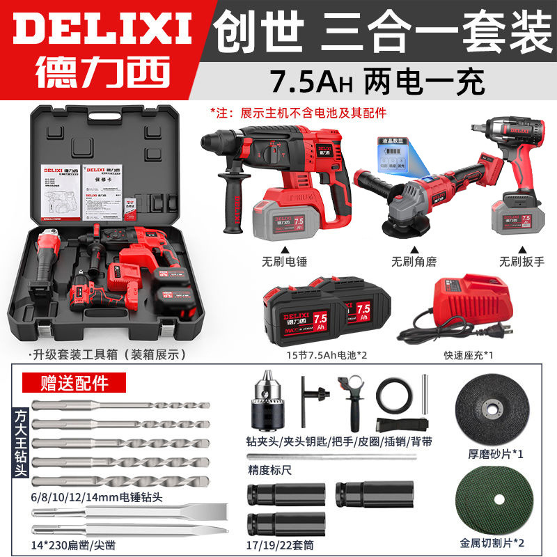 • Chuangshi 전기 해머 + 앵글 그라인더 + 전기 핸드 드릴 7.5Ah 배터리 2개