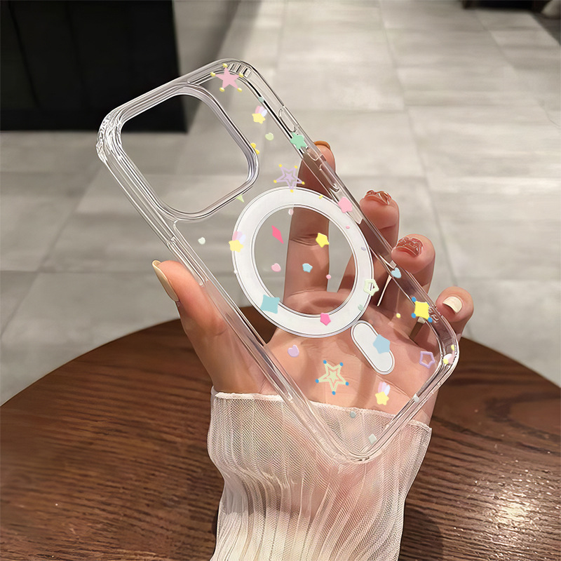 컬러풀한 별 모양 자석 케이스, 애플 16프로맥스 아크릴 대형 홀 휴대폰 케이스, 아이폰17 투명 15스토어 가기
