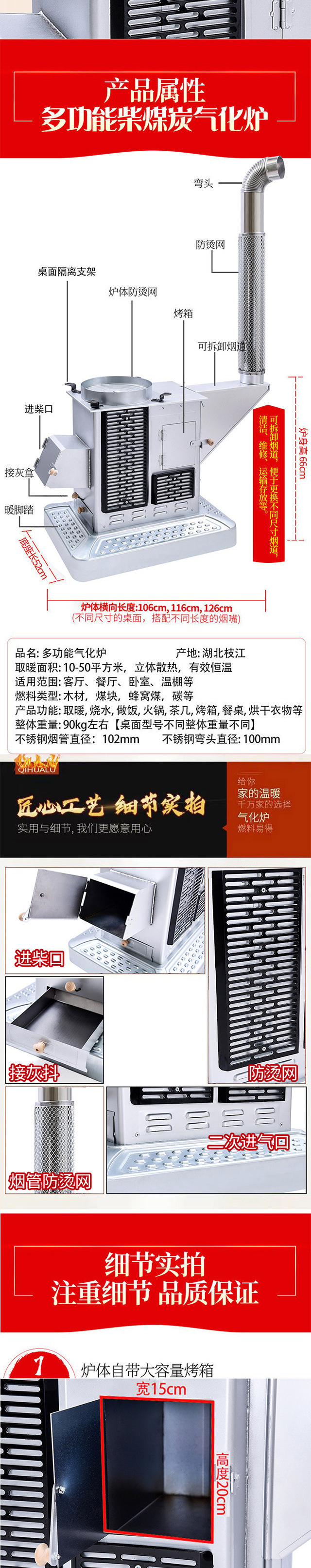 기화 용광로 디젤-석탄 이중 목적 가열로 에너지 절약 무연 베이킹로 새로운 농촌 가정 실내 가스화 장작로스토어 가기