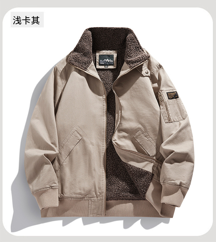 가을과 겨울 새로운 미국 스타일 레트로 남성 재킷 양가죽 칼라 툴링 청소년 루즈 탑 남자 따뜻한 재킷스토어 가기