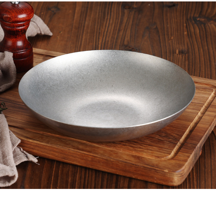 빈티지 304 스테인레스 스틸 라운드 접시 샐러드 플레이트 피클 플레이트 조미료 요리 얕은 접시 스낵 플레이트 오래 된 둥근 접시 디너 플레이트