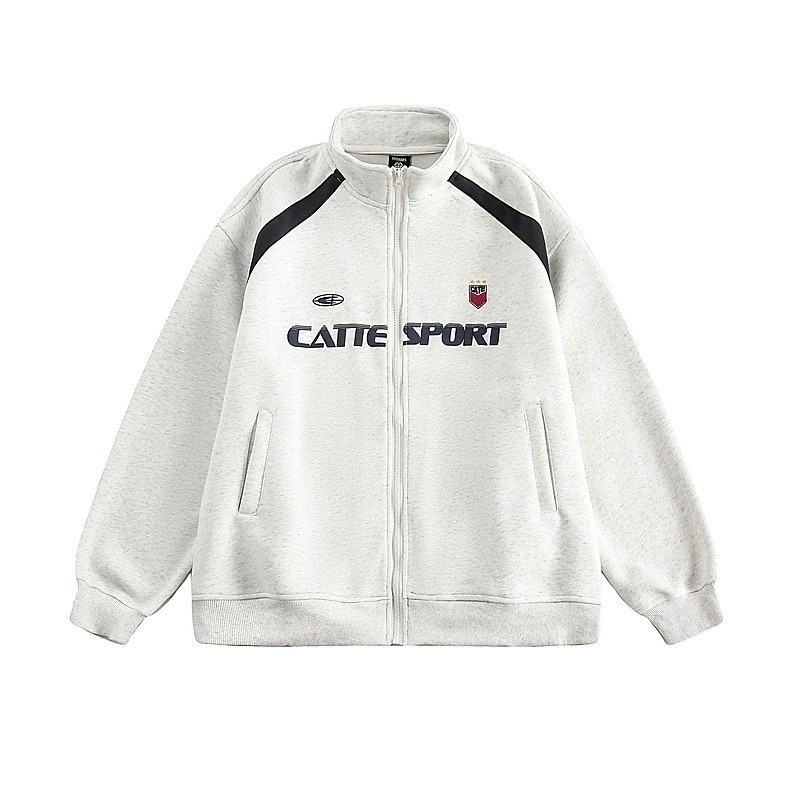 빈티지 유행 브랜드 수직 칼라 카디건 스웨터 남자 2024 봄과 가을 편지 인쇄 유행 브랜드 느슨한 스포츠 재킷스토어 가기