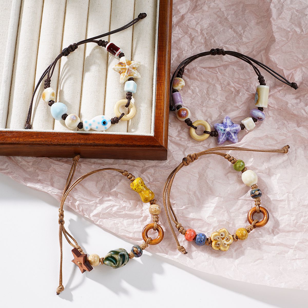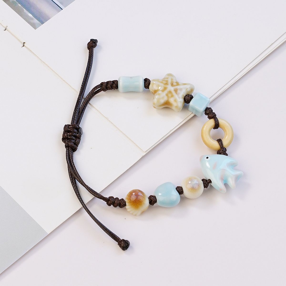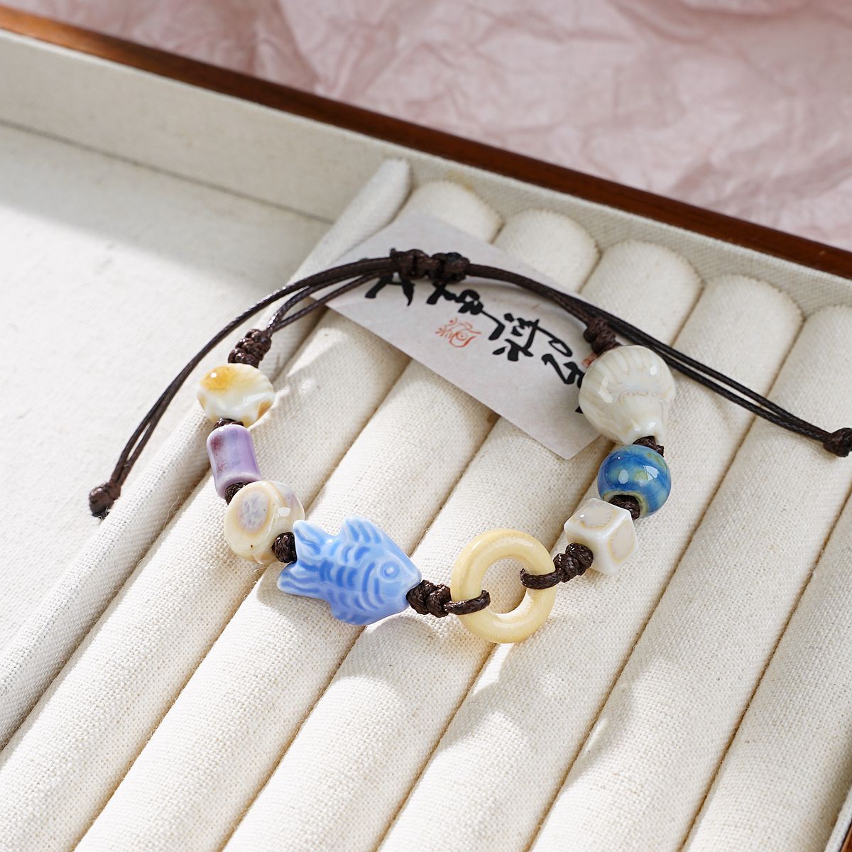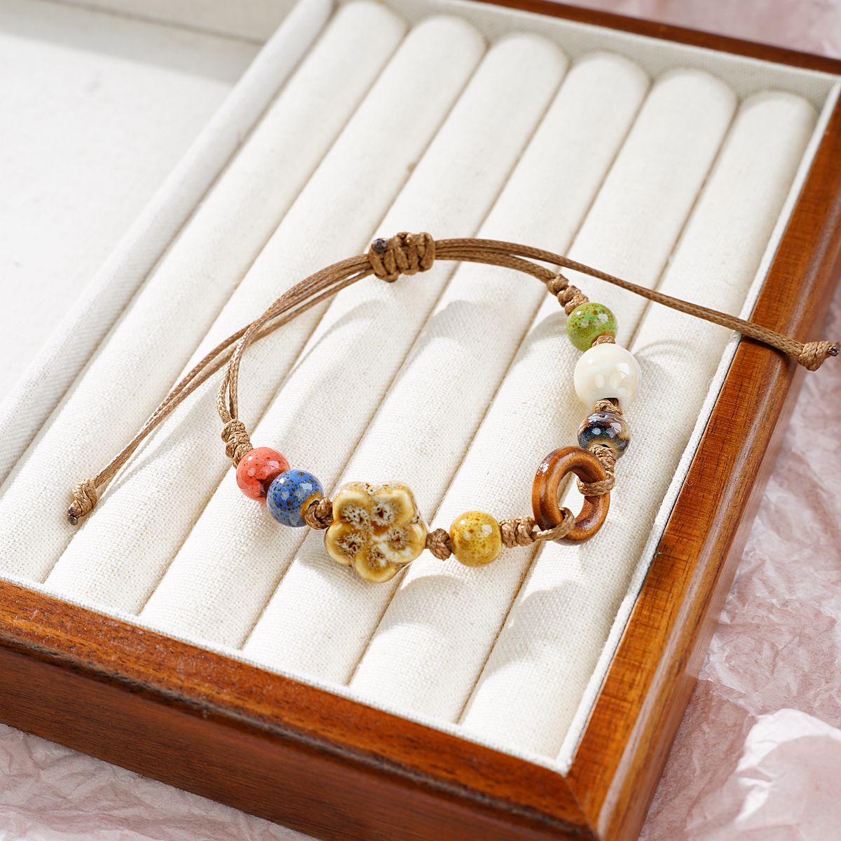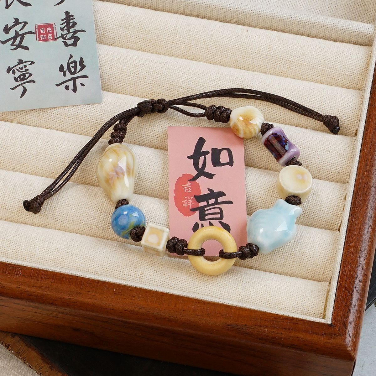 재미있는 원래 세라믹 팔찌 커플 새로운 중국 스타일 조커 꽃 보석 Guofeng 골동품 손 로프 여성 공장 도매