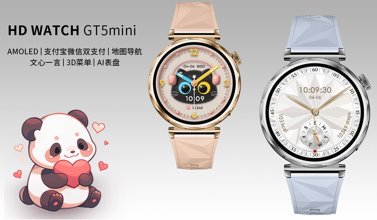 높은 색상 가치 스마트 시계 GT5mini 학생 여성 LED 라운드 스크린 방수 블루투스 전화 gt5 스마트 시계스토어 가기