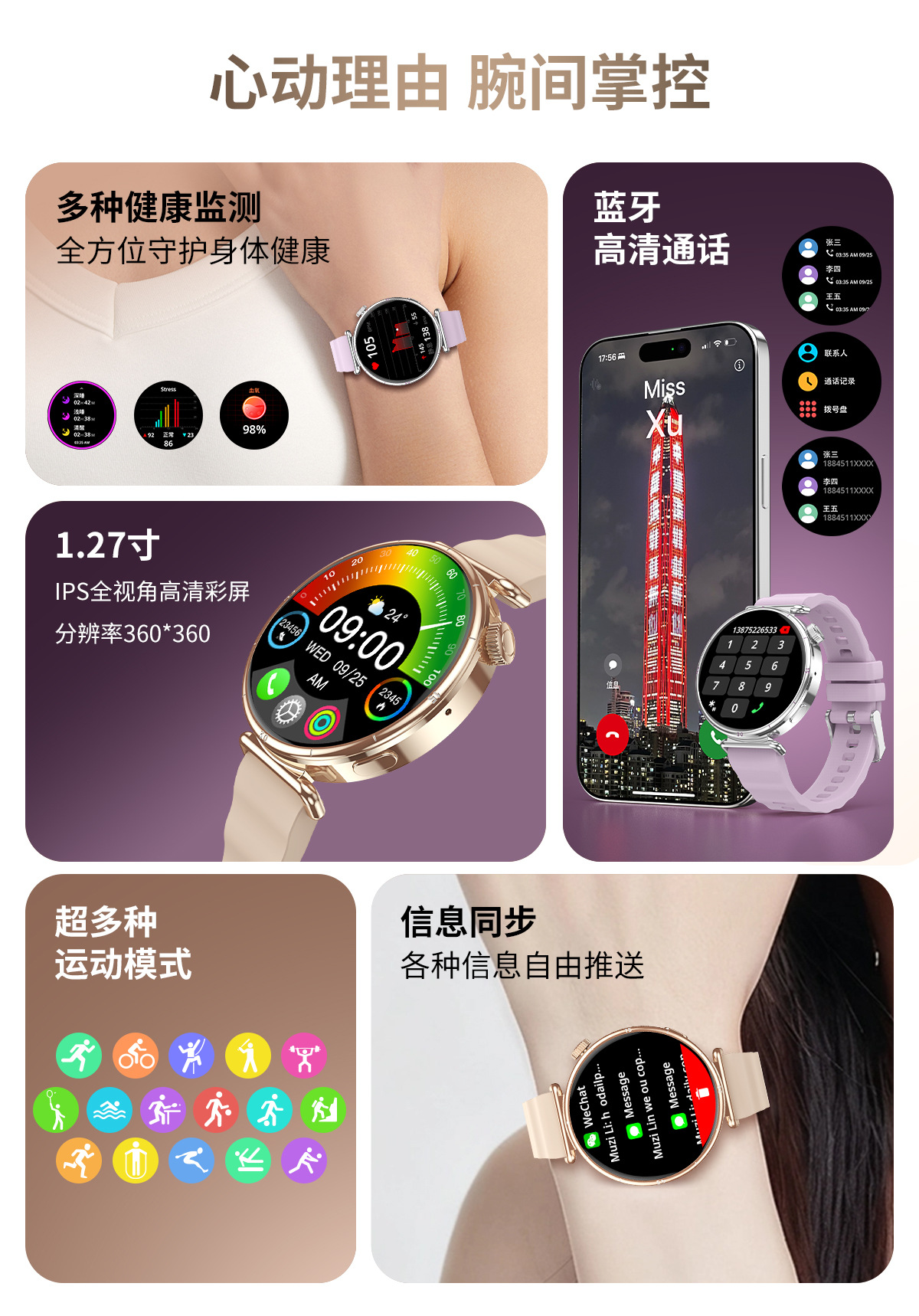 고급스러운 스마트워치 CW6mini 학생 여성용 LED 원형 화면 방수 블루투스 통화 gt5 스마트워치스토어 가기