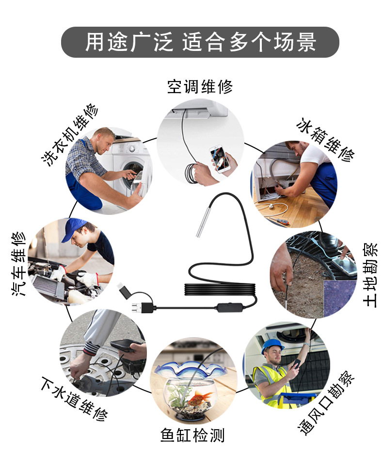 3.9mm 3 대 1 산업용 내시경 파이프 자동차 검사 내시경 typeC 안드로이드 휴대 전화 내시경