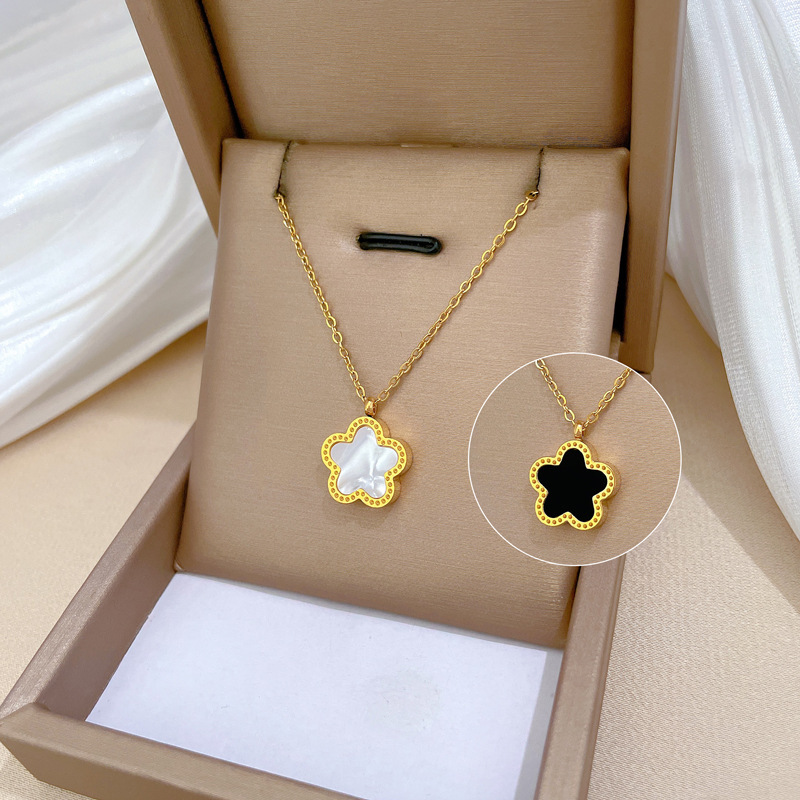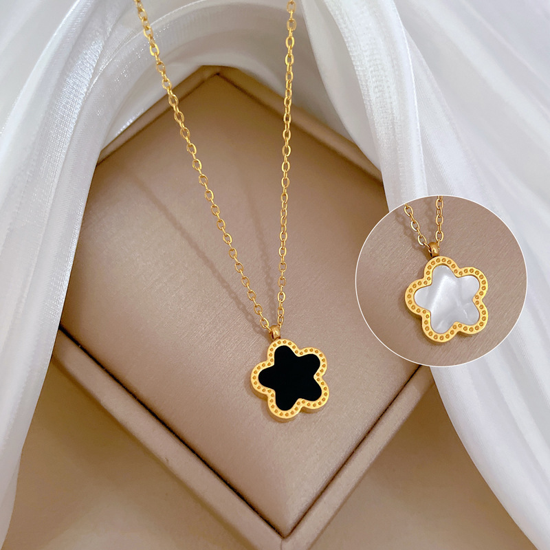 [전신 티타늄강] 다섯 잎 꽃 양면 성격 매우 간단한 바람으로 진짜 금 목걸이 여성 그물 붉은 쇄골 X20
