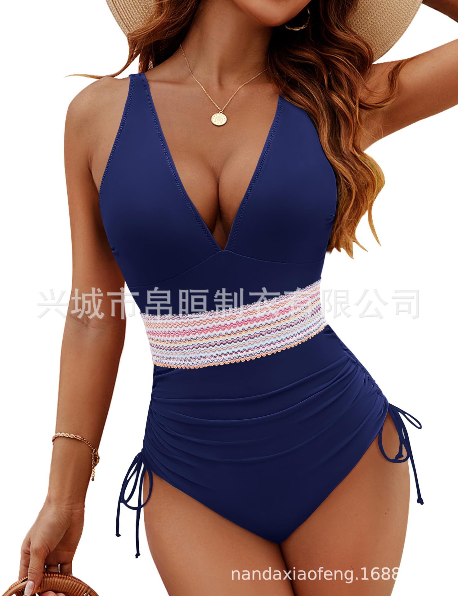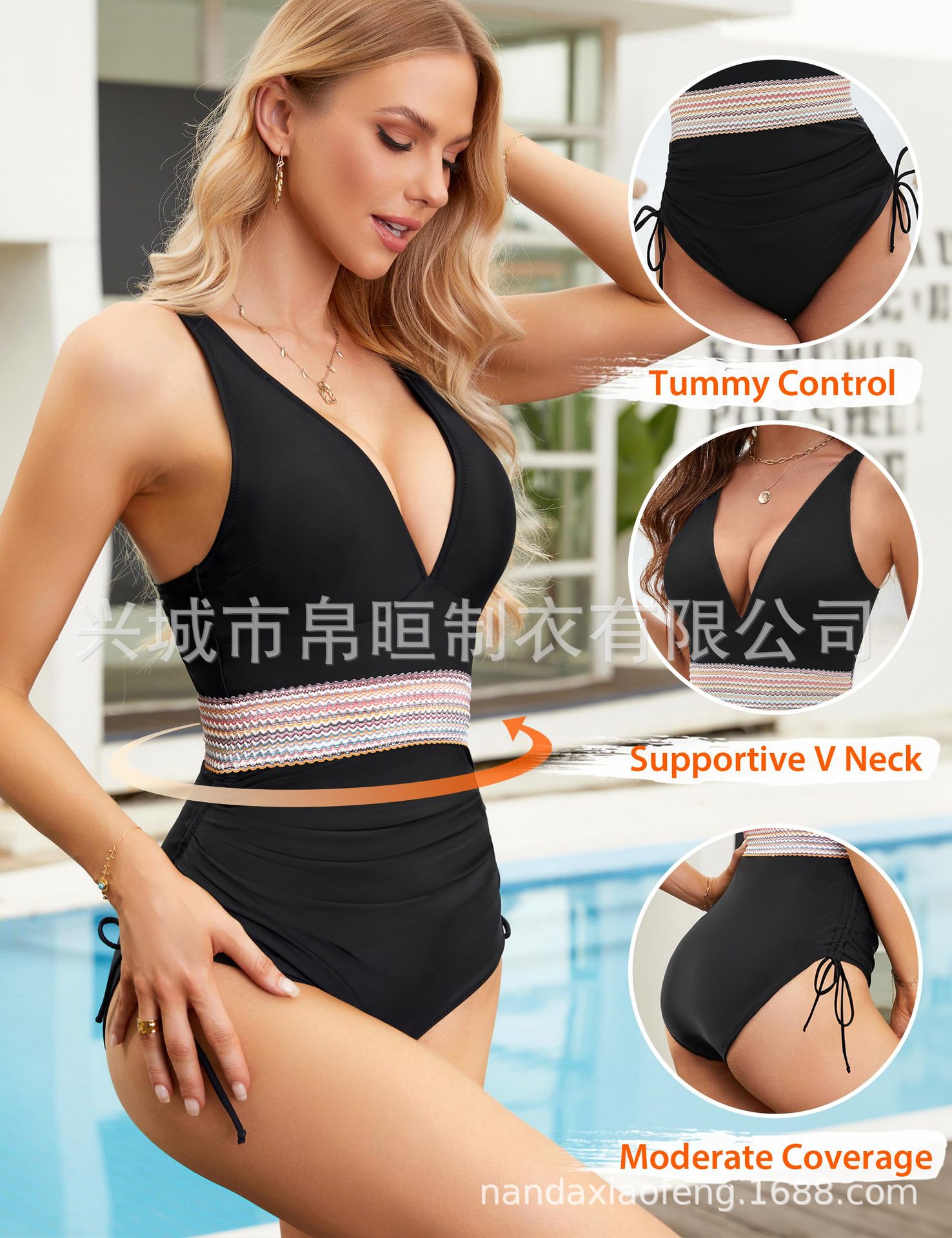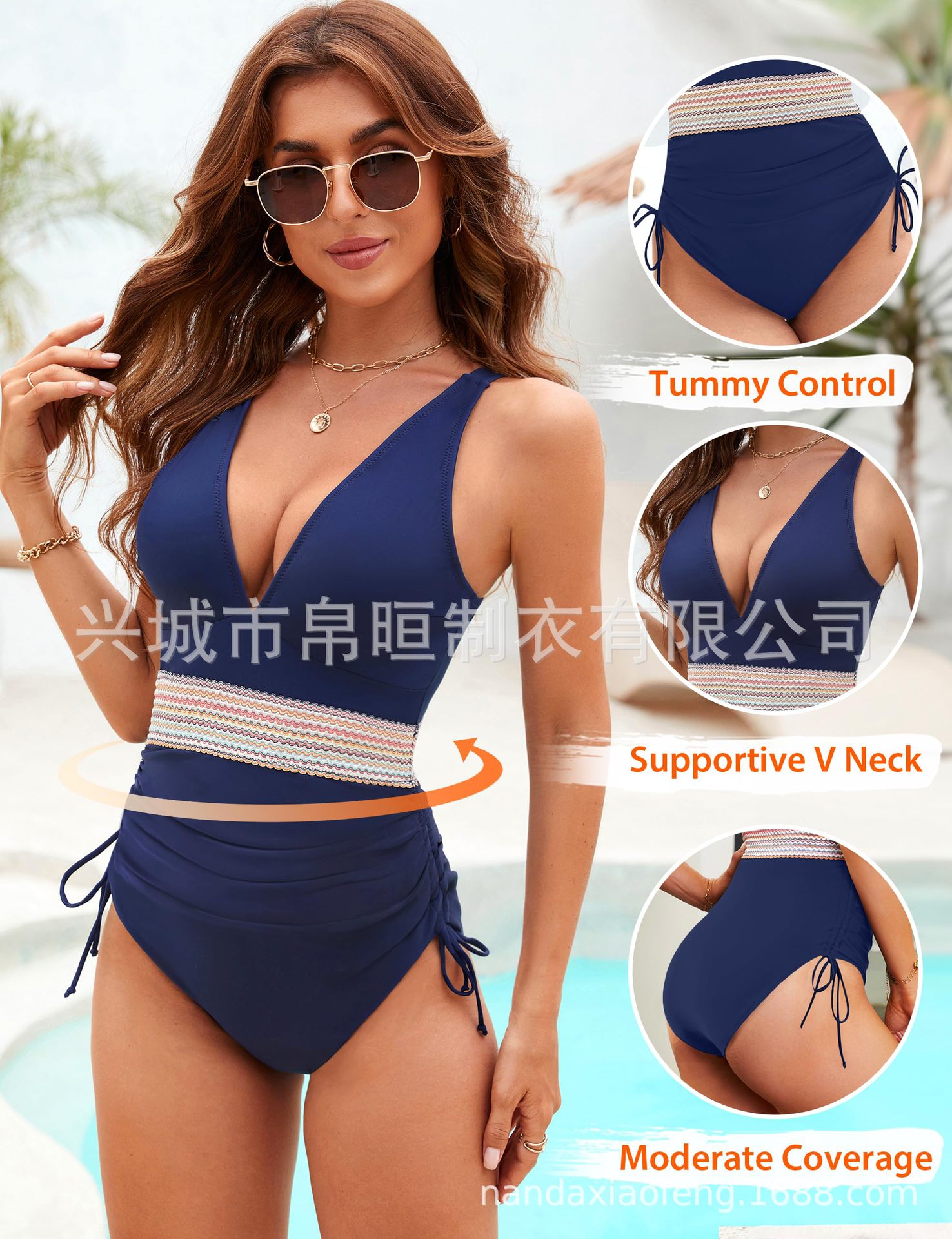 2025 아마존 유럽과 미국의 새로운 여성 복부 수영복 바디-슬림-피트 보통 수영복 컬러 매칭 드로우 스트링 수영복스토어 가기
