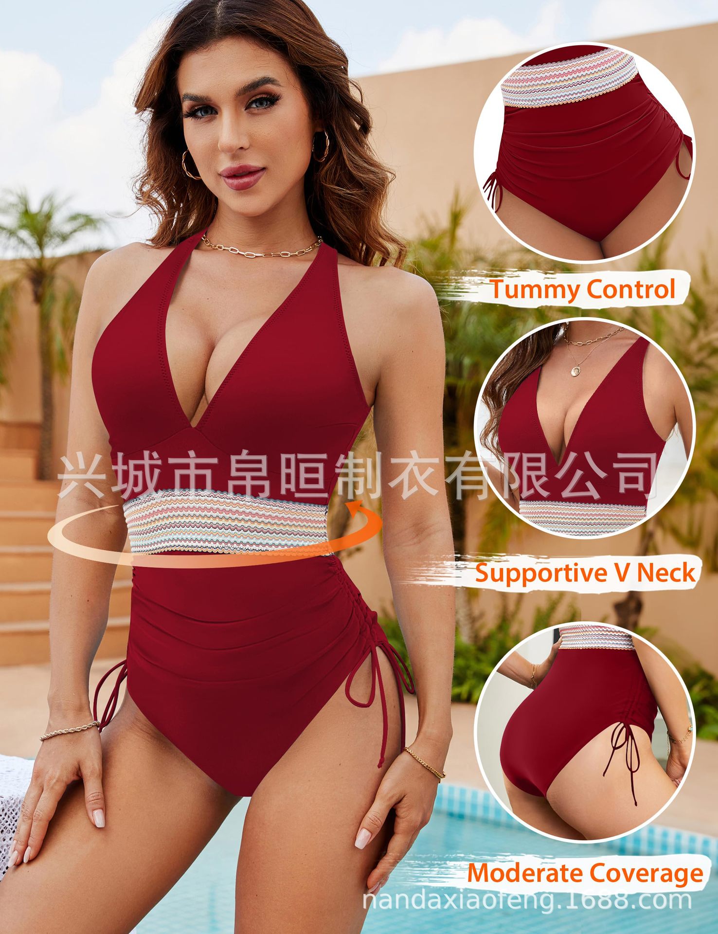 2025 아마존 유럽과 미국의 새로운 여성 복부 수영복 바디-슬림-피트 보통 수영복 컬러 매칭 드로우 스트링 수영복
