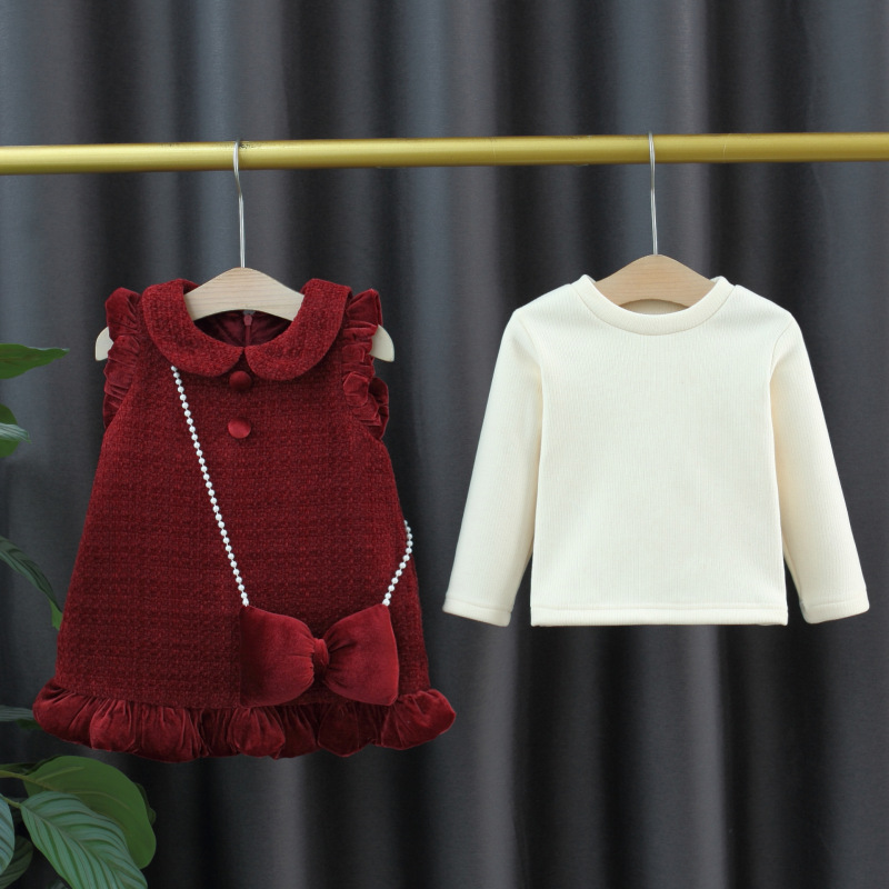 새 소녀 기모 원피스 두 조각 빨간 년 의류 여성 보물 새해 공주 Zhili 대외 무역 라이브 방송