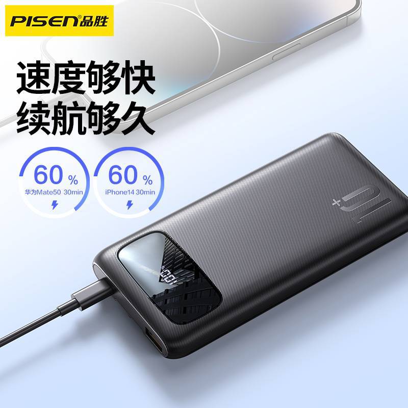Pinsheng 충전 보물 20000 mA 22.5W 빠른 충전 셀프 벨트 라인 PD 모바일 전원 공급 장치 애플 화웨이 휴대 전화스토어 가기