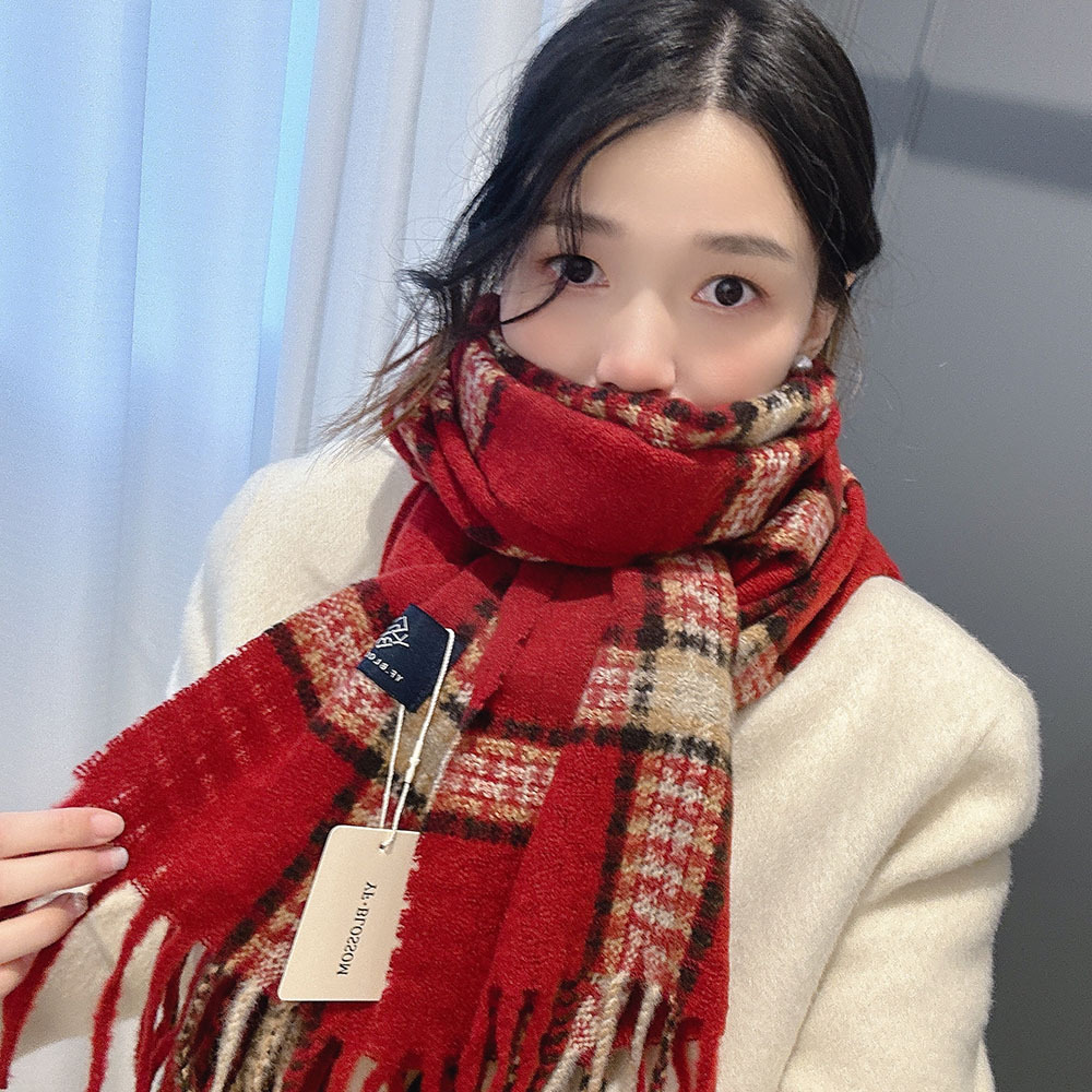 하이 퀄리티 캐시미어 YF 엔티티 오리지널 격자 무늬 컬러 블록 아름다운 스카프 여성 겨울 학생 스카프 축제 분위기