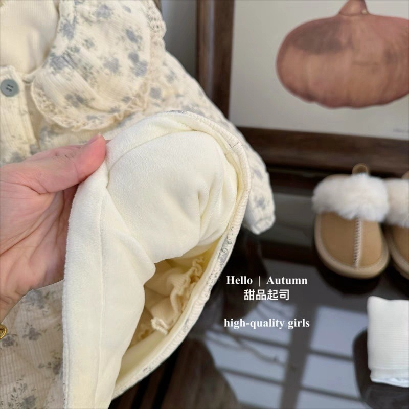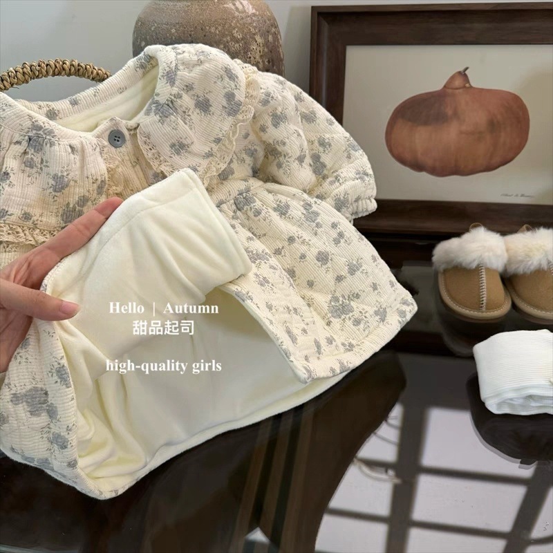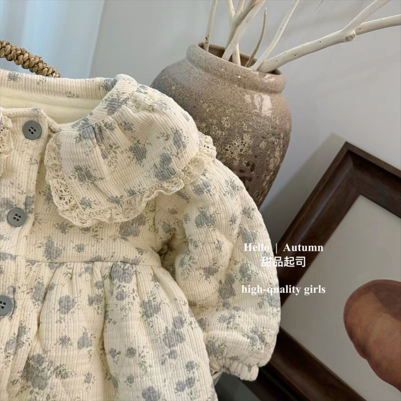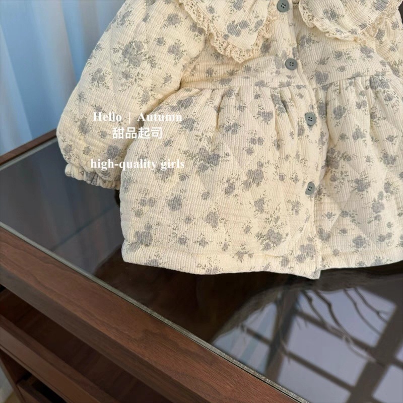 프랑스 스타일 도파민 작은 꽃 여성 보물 레이스 인형 칼라 달콤한 두꺼운 퀼트 스커트 코트 코튼 코트스토어 가기