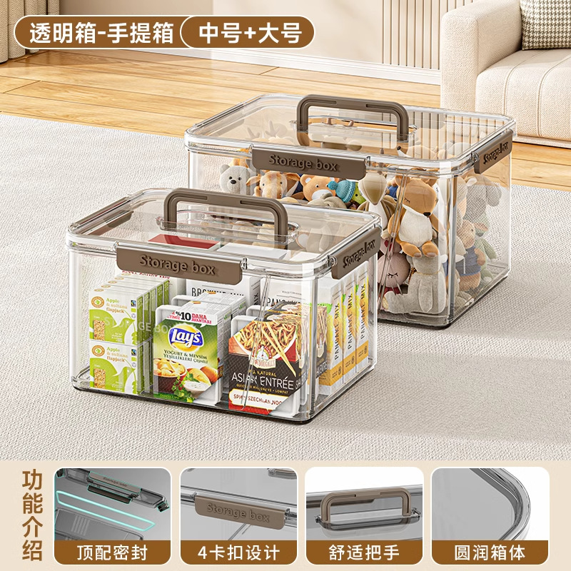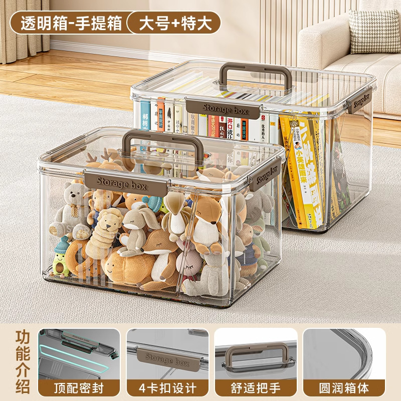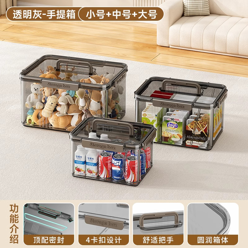 투명한 휴대용 저장 상자 가정용 방진 의류 보관 및 뚜껑 다기능 간식 장난감 보관 상자가있는 색칠 상자스토어 가기