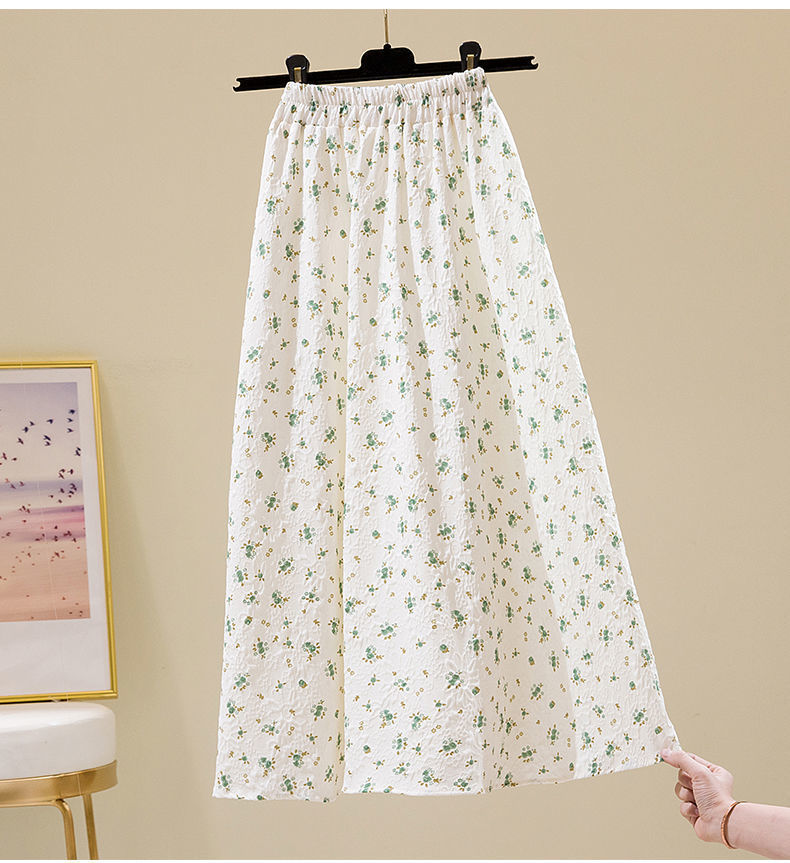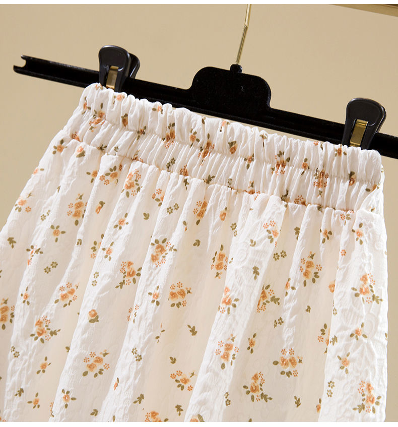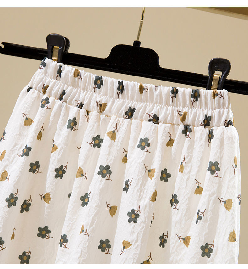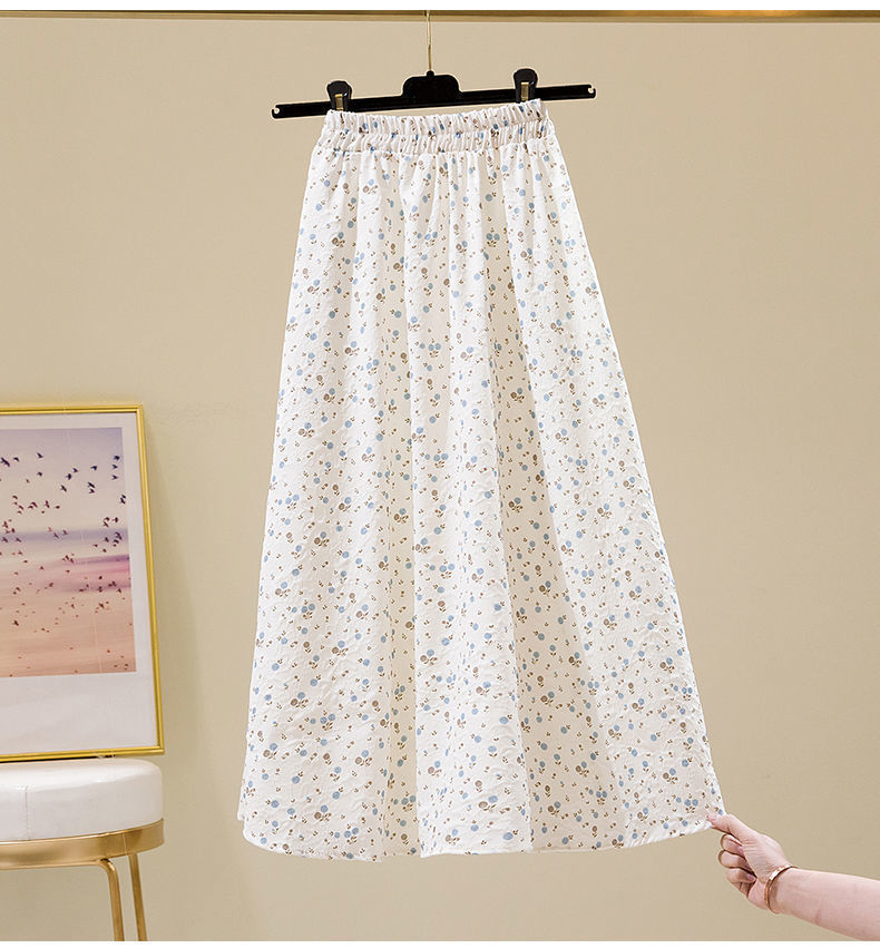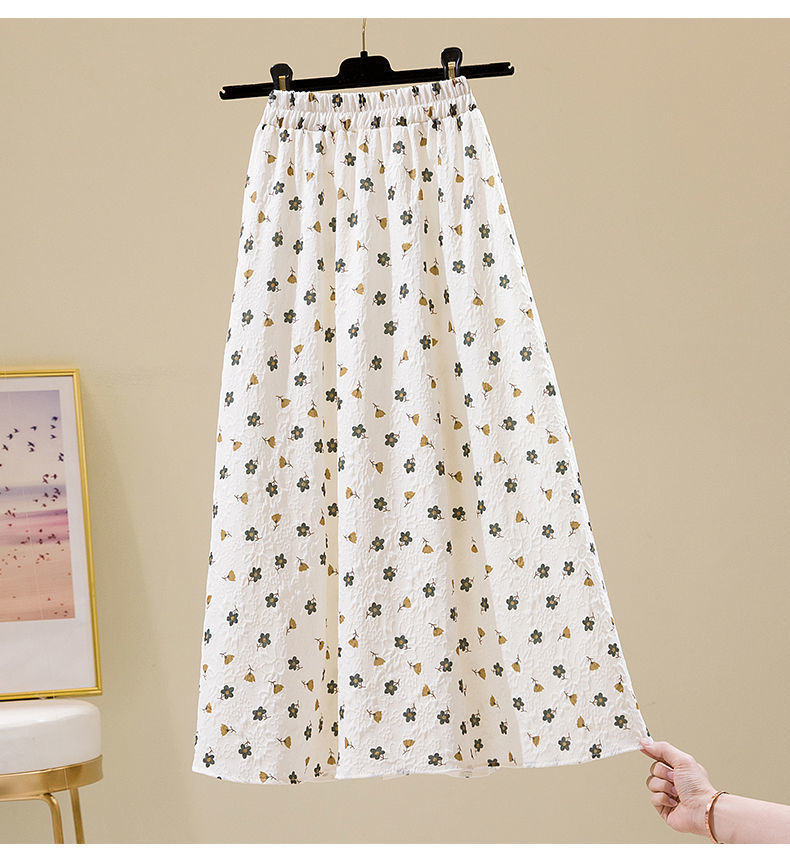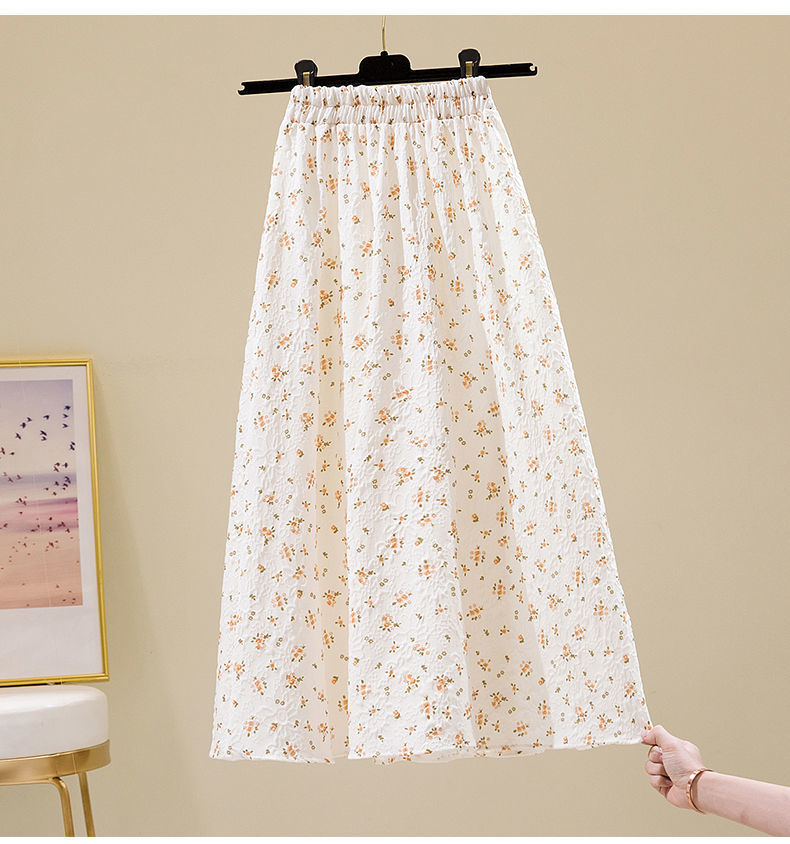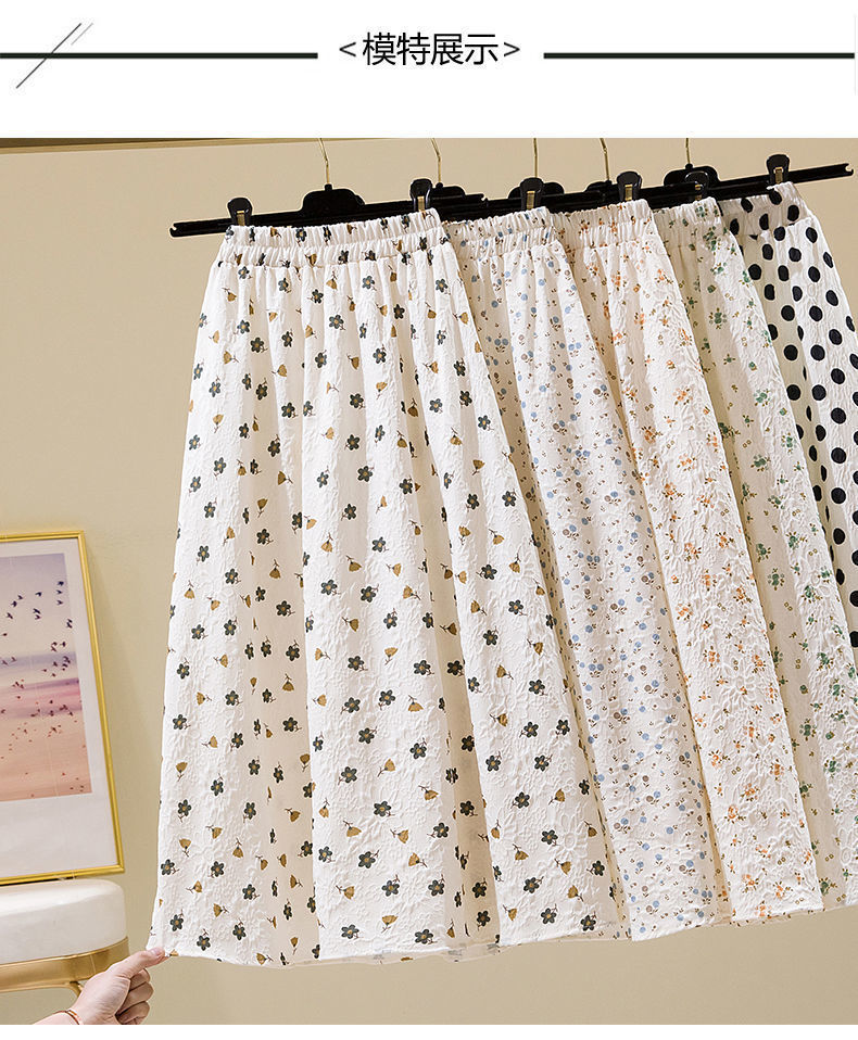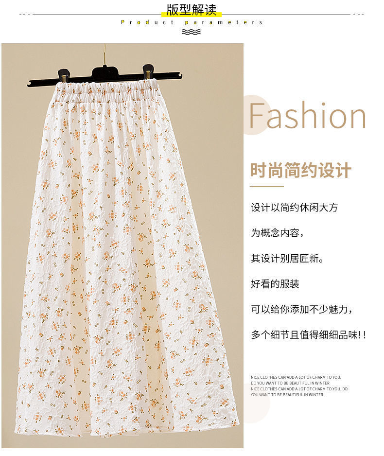 2022 새로운 스타일 엘라 스토 높은 허리 슬리밍 신선한 스타일 플로팅 꽃 중간 길이 A 라인 스커트 우산 스커트 여성용 트렌디 스커트스토어 가기