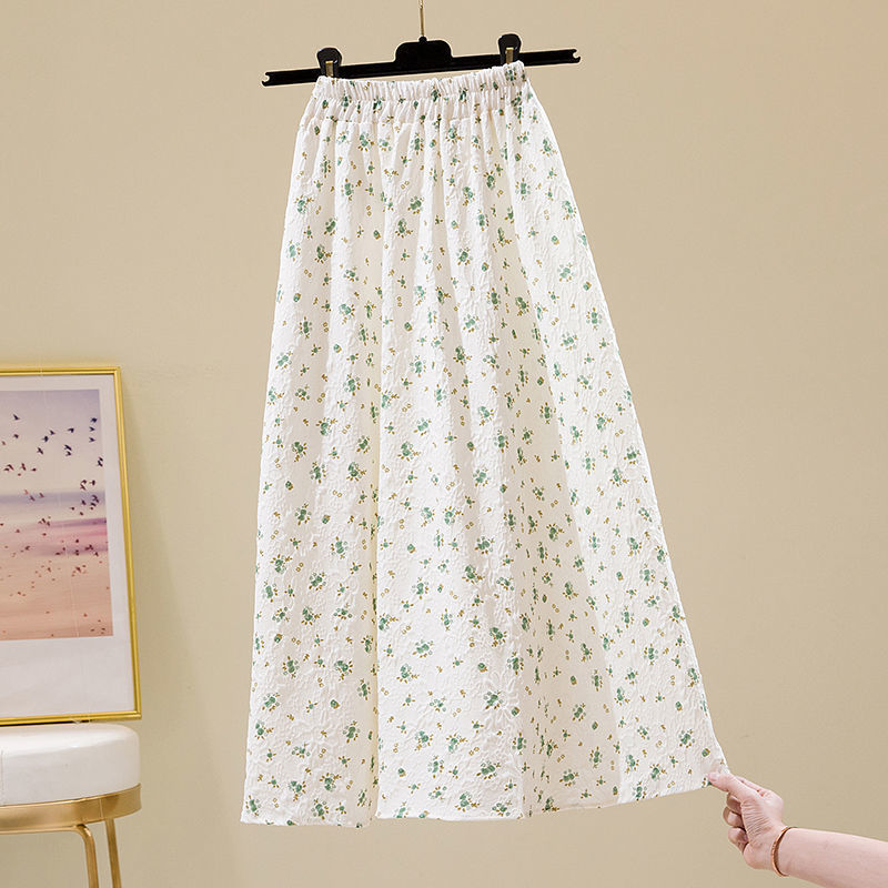 2022 새로운 스타일 엘라 스토 높은 허리 슬리밍 신선한 스타일 플로팅 꽃 중간 길이 A 라인 스커트 우산 스커트 여성용 트렌디 스커트