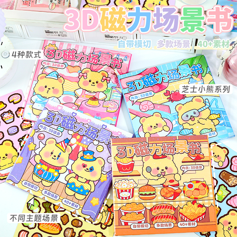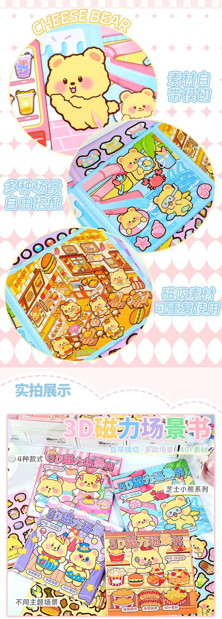 치즈 곰 3D 자기 장면 책 만화 귀여운 곰 컷 프리 손 계정 장면 소재 조용한 책