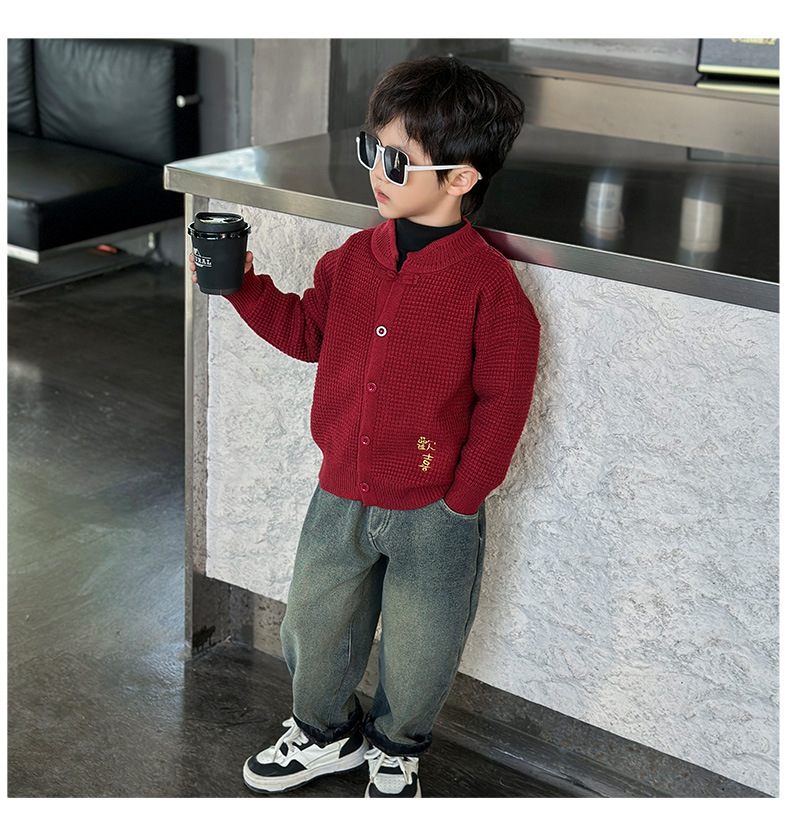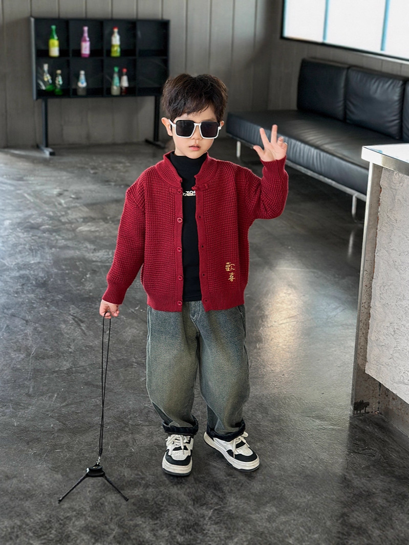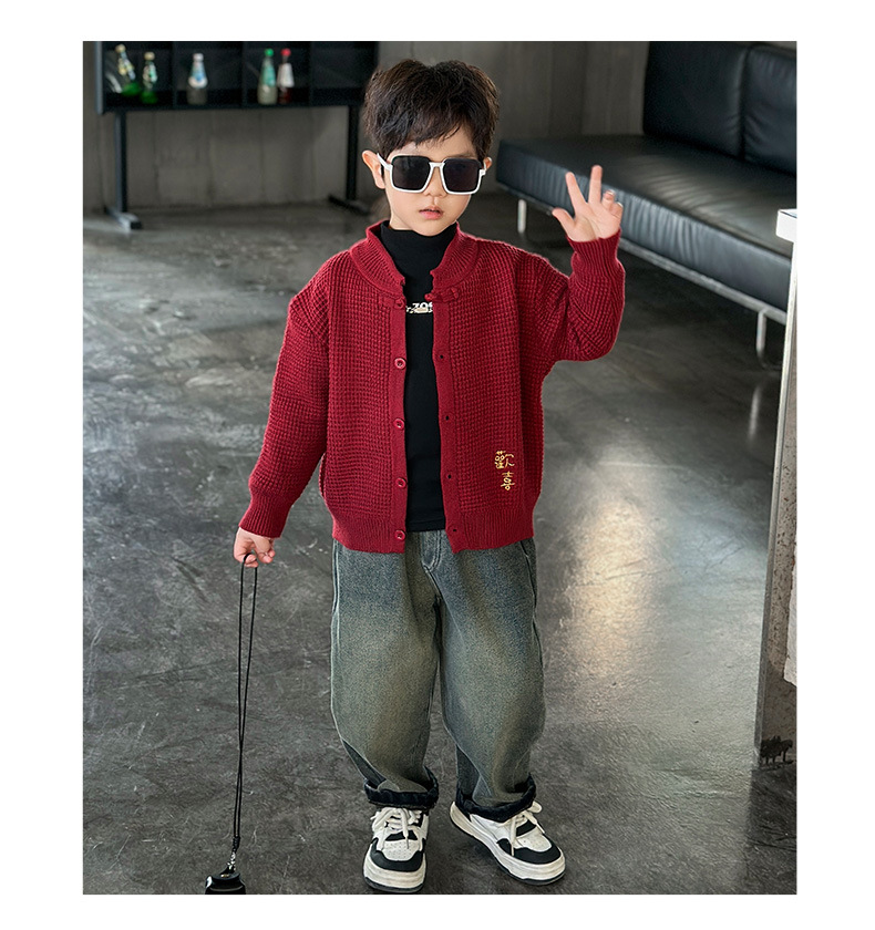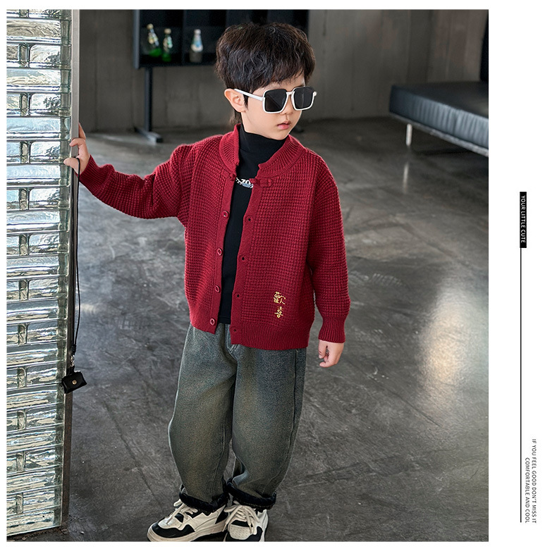어린이 카디건 스웨터 겨울 축제 옷 소년 캐주얼 신년 옷 아기 붉은 새해 코트 여성 드래곤 년스토어 가기
