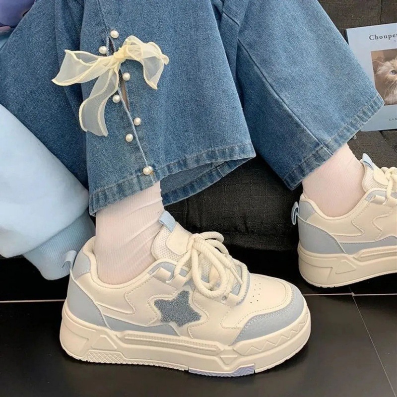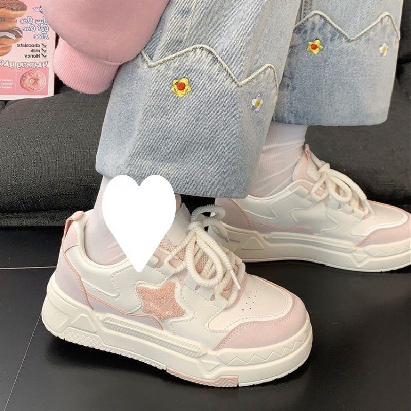 소녀 신발 운동화 보드 신발 조수 2023 봄과 가을 새 흰색 신발 두꺼운 밑창 캐주얼 스포츠 학생 신발스토어 가기