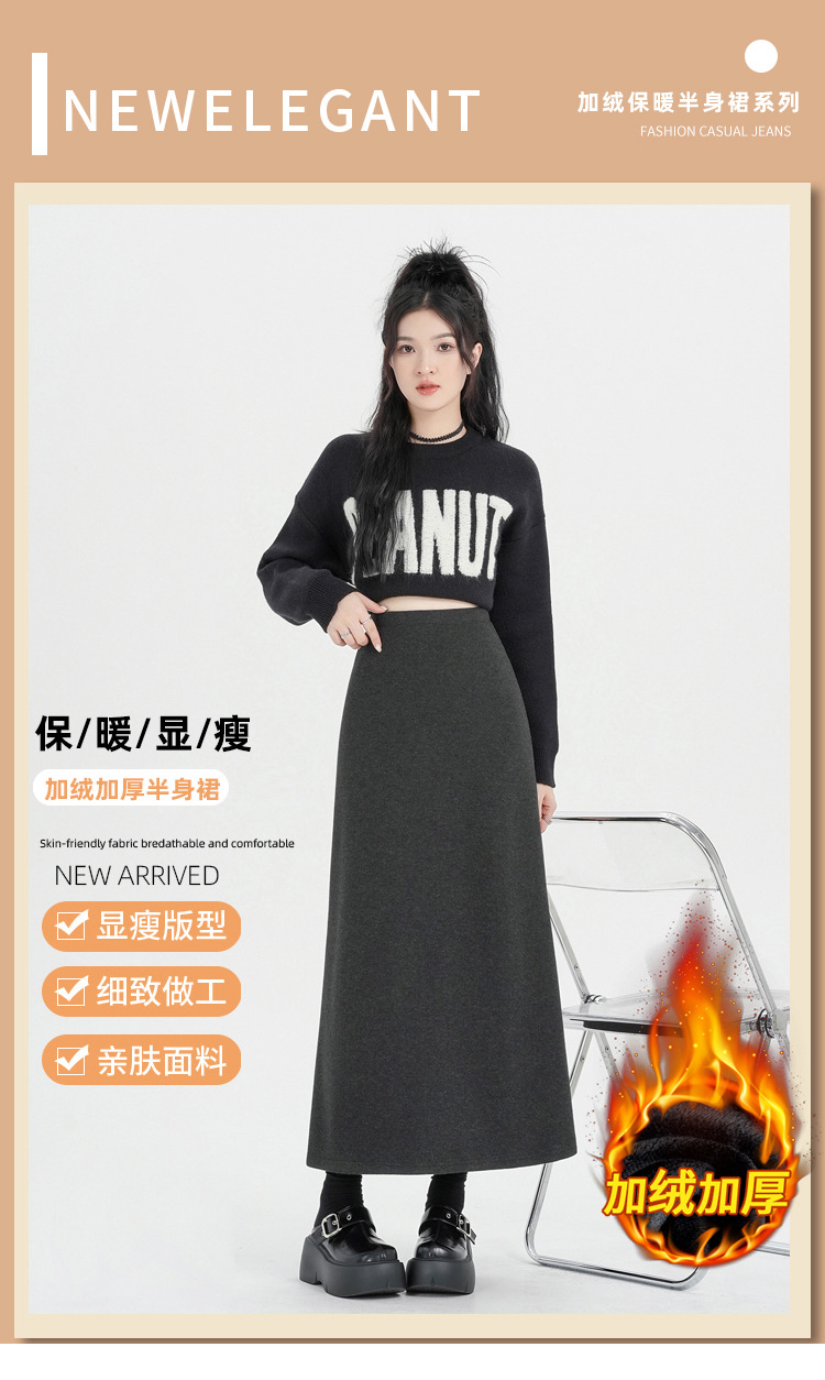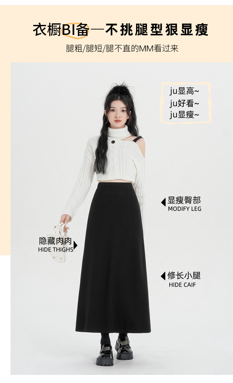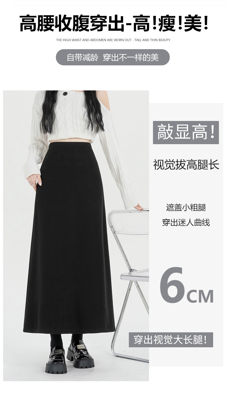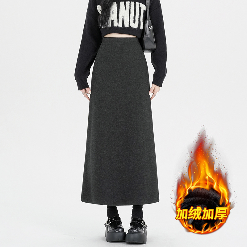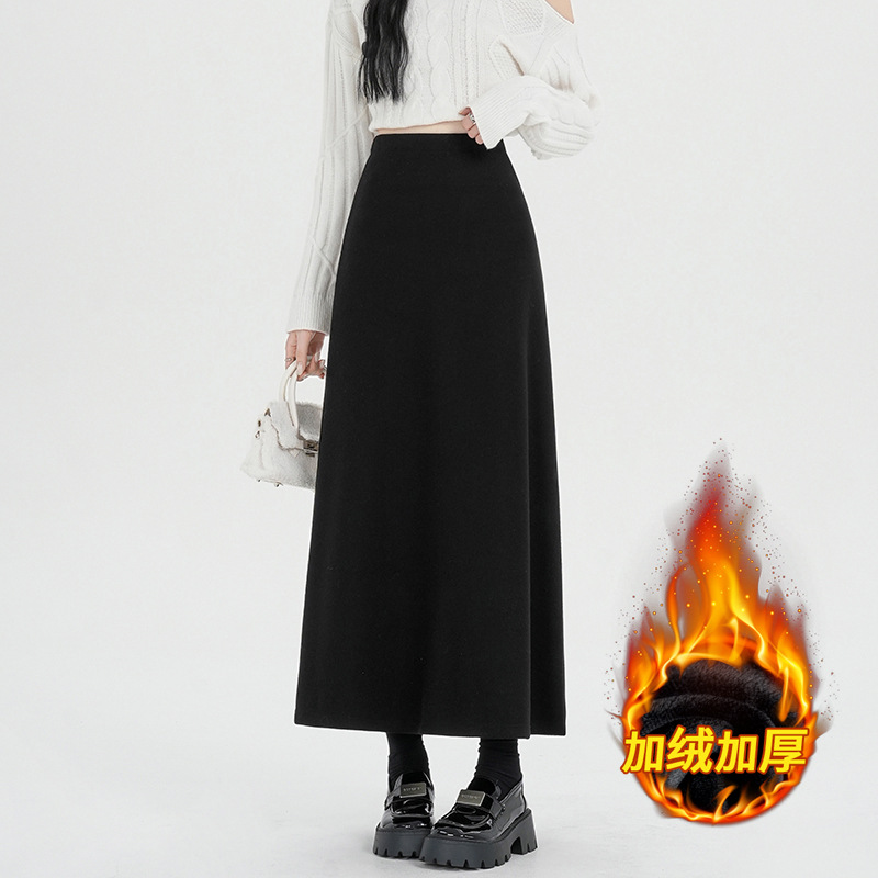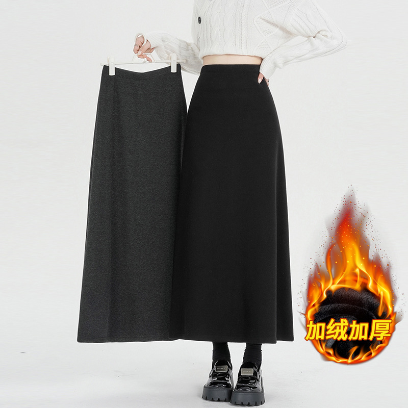진짜 샷 기모 블랙 A 자형 스커트 여성의 2024 가을과 겨울 새로운 플러스 사이즈 스트레칭 슬림 롱 스커트 힙 스커트스토어 가기