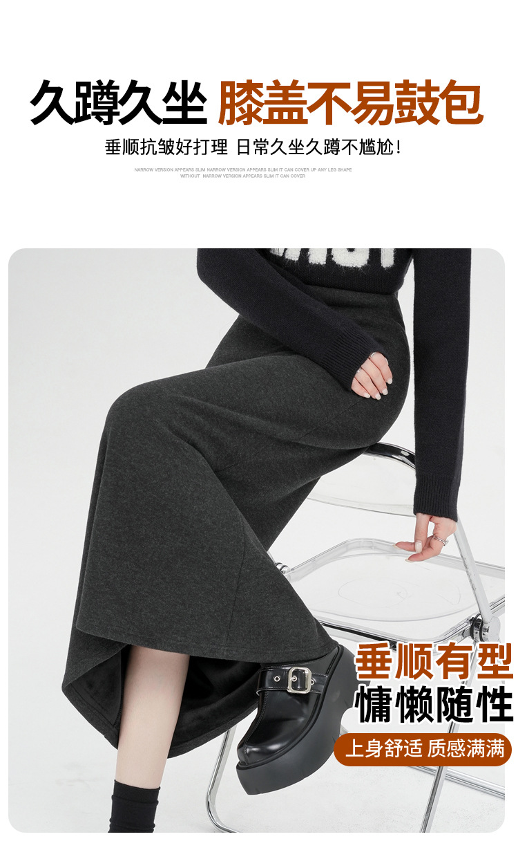 진짜 샷 기모 블랙 A 자형 스커트 여성의 2024 가을과 겨울 새로운 플러스 사이즈 스트레칭 슬림 롱 스커트 힙 스커트