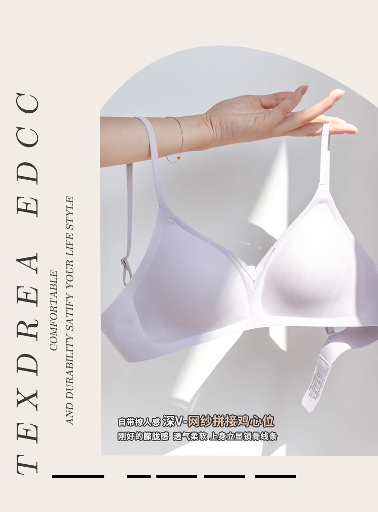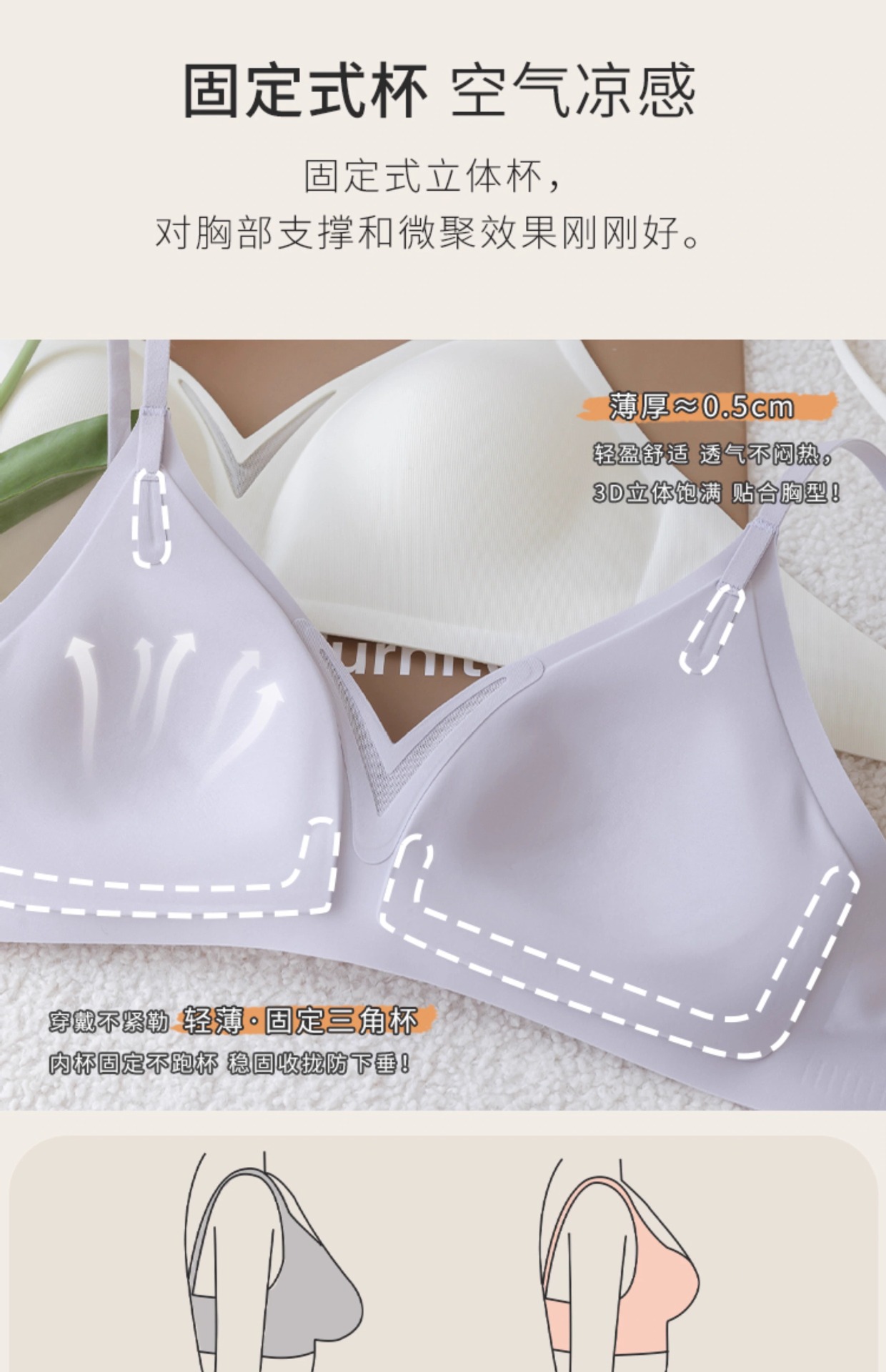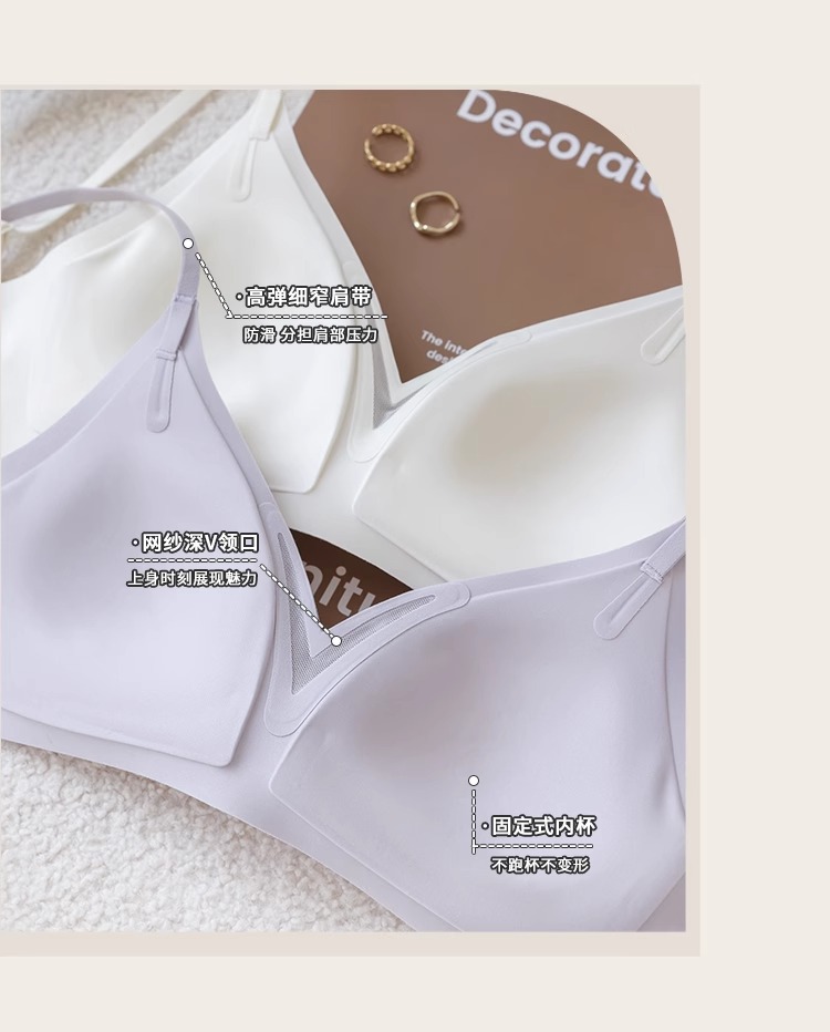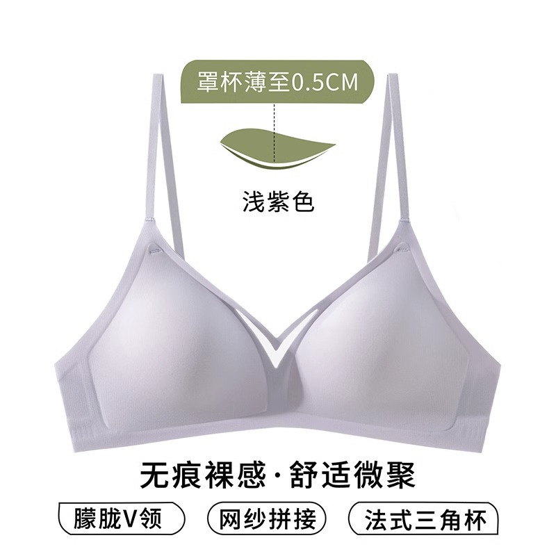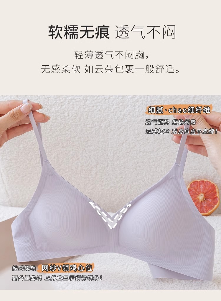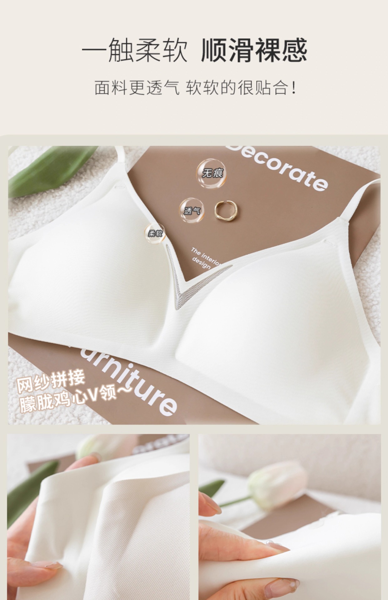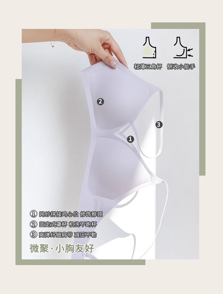 추적없는 액체 젤리 속옷 여성의 얇은 대형 가슴 작은 처짐 방지 푸시 업 작은 가슴 아름다운 등 삼각형 컵 브라스토어 가기