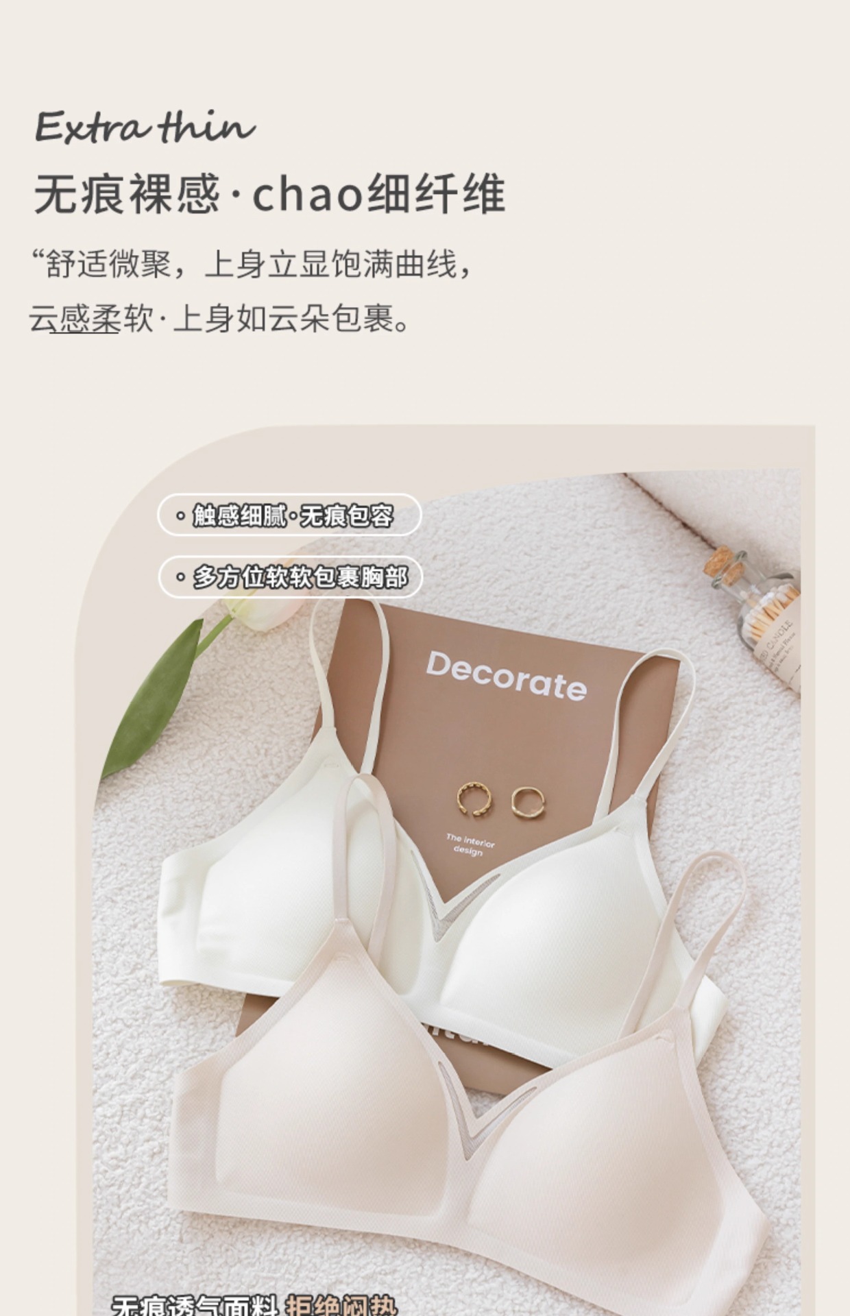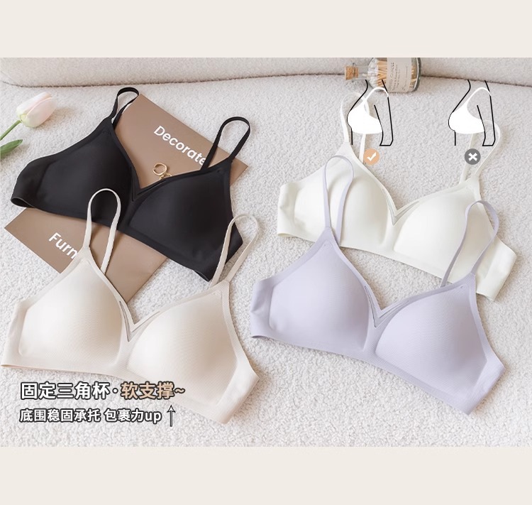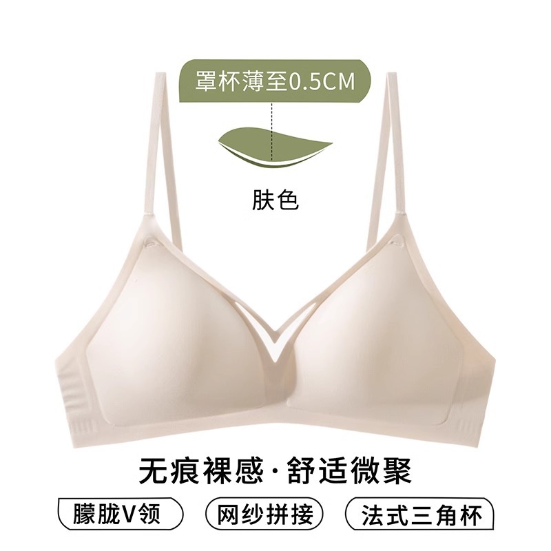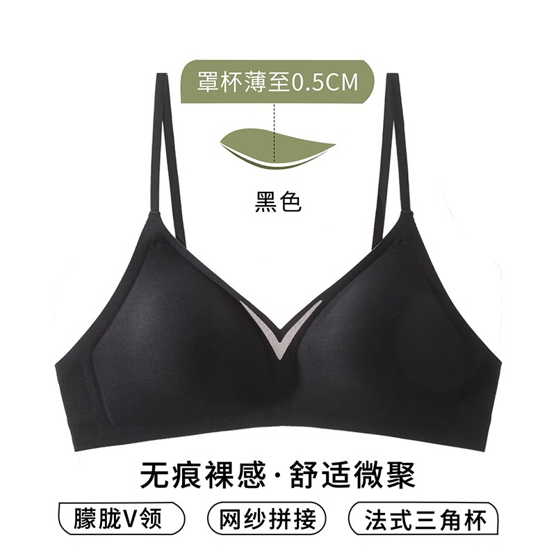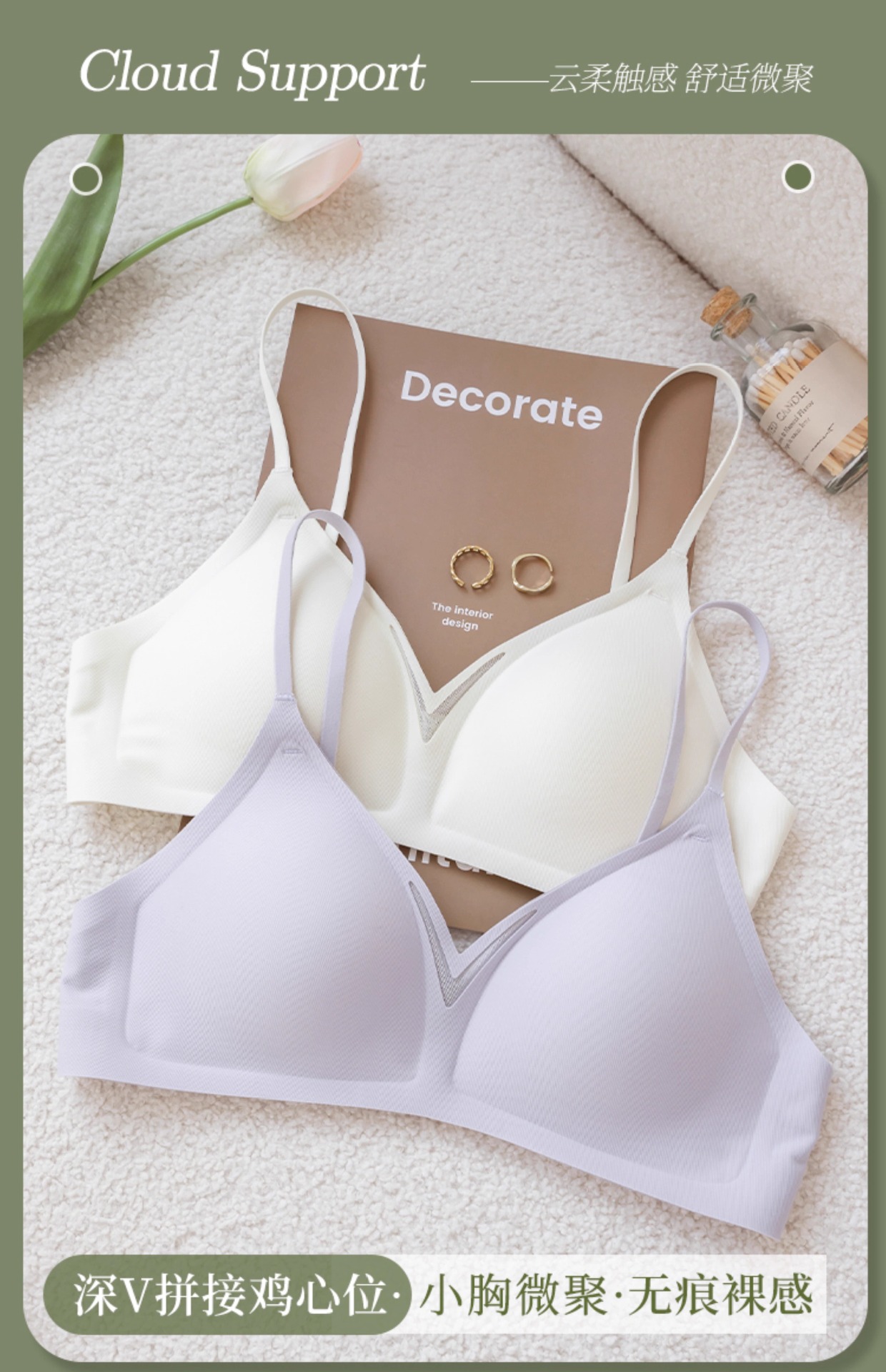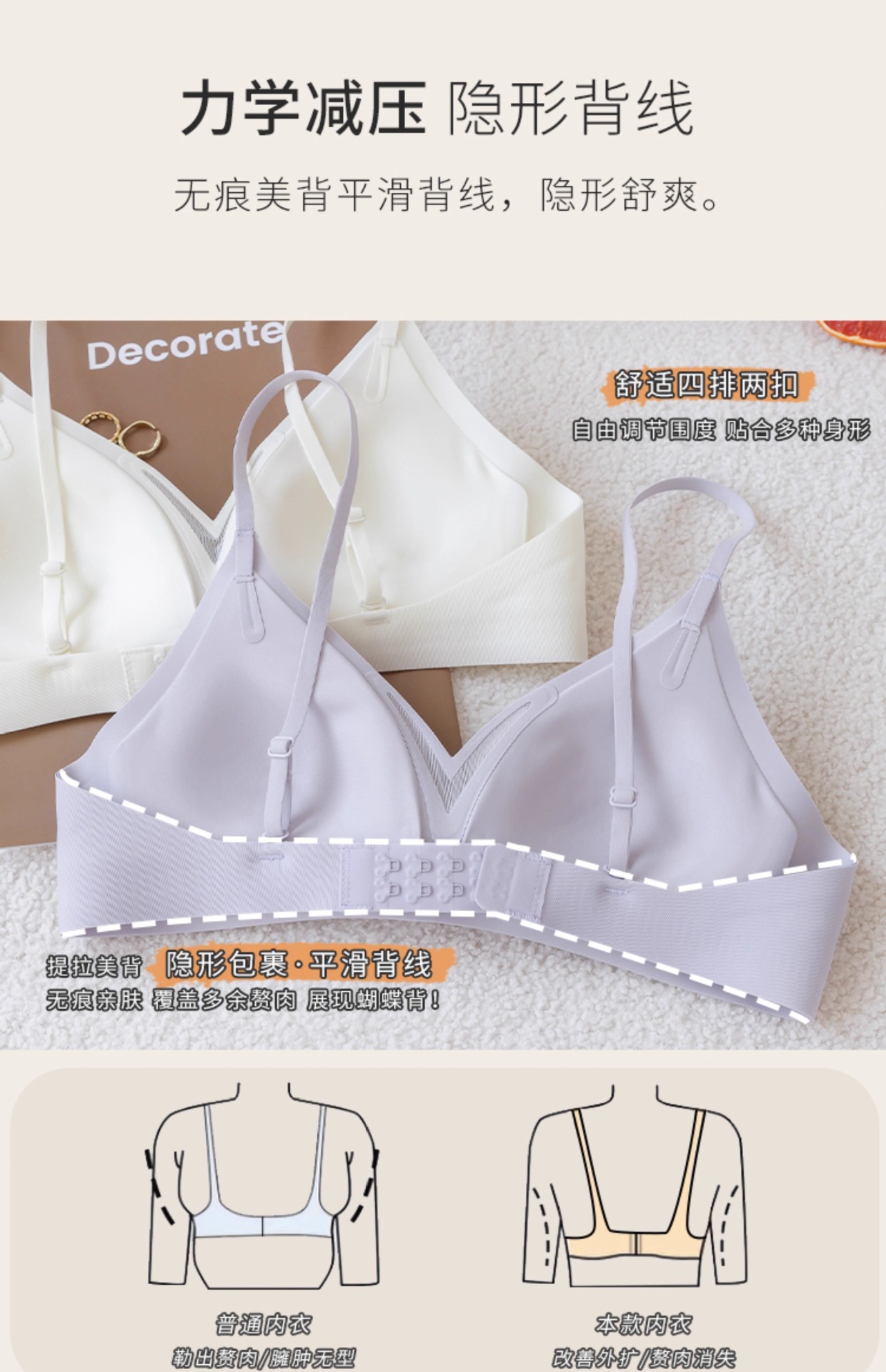 추적없는 액체 젤리 속옷 여성의 얇은 대형 가슴 작은 처짐 방지 푸시 업 작은 가슴 아름다운 등 삼각형 컵 브라스토어 가기