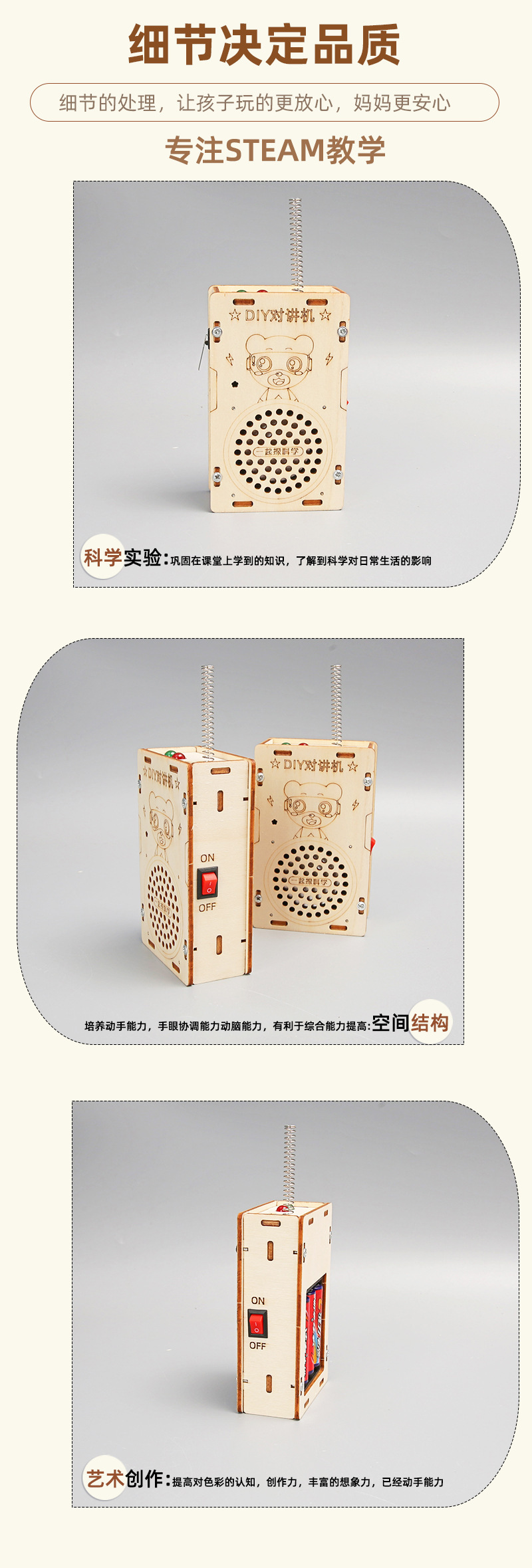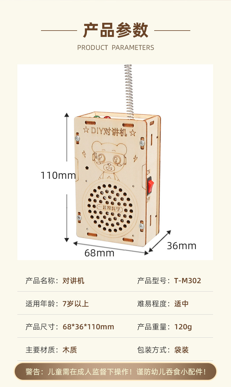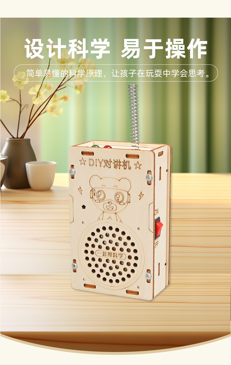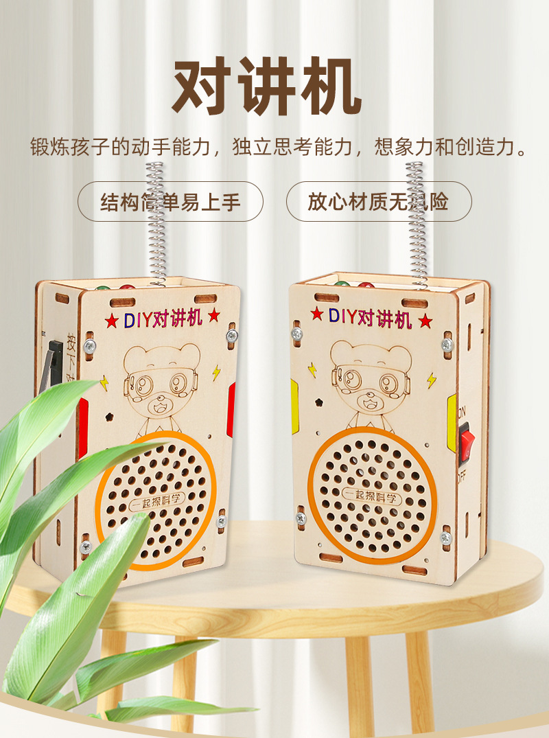 페이징 장난감 어린이 워키 토키 과학 실험 과학 및 교육 프론티어 DIY 목재 기술 작은 생산 200 미터 무선스토어 가기