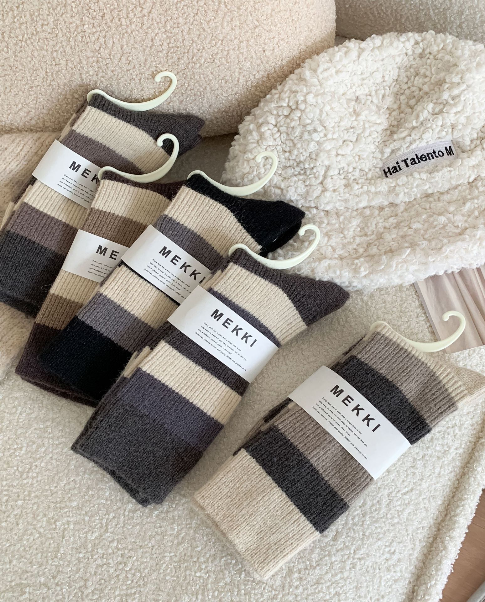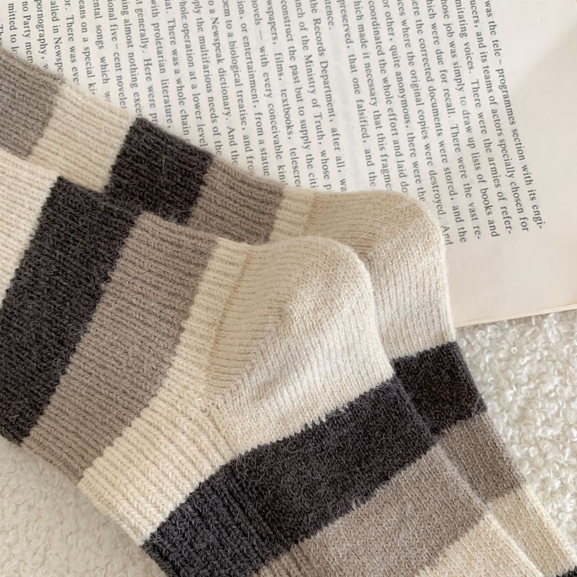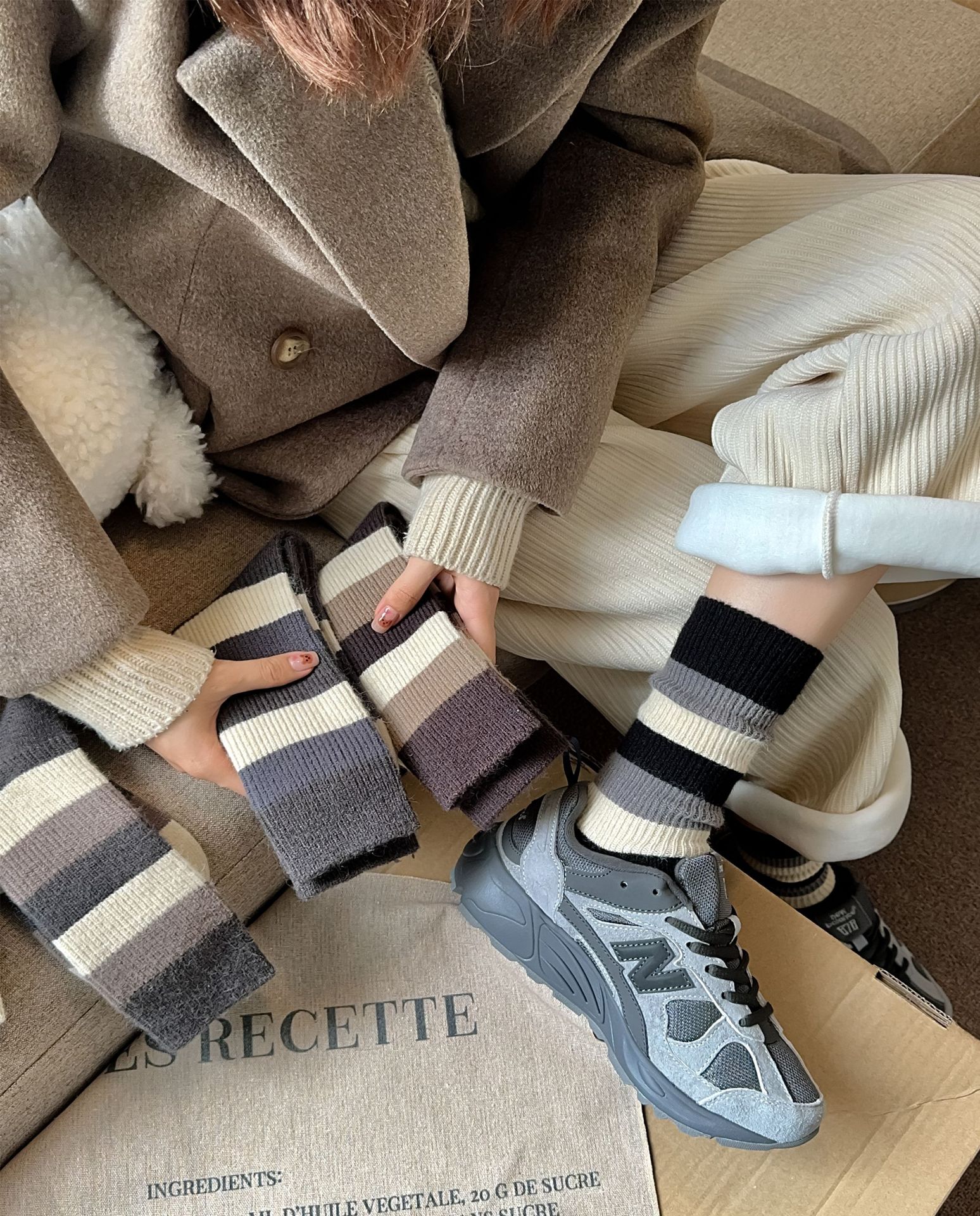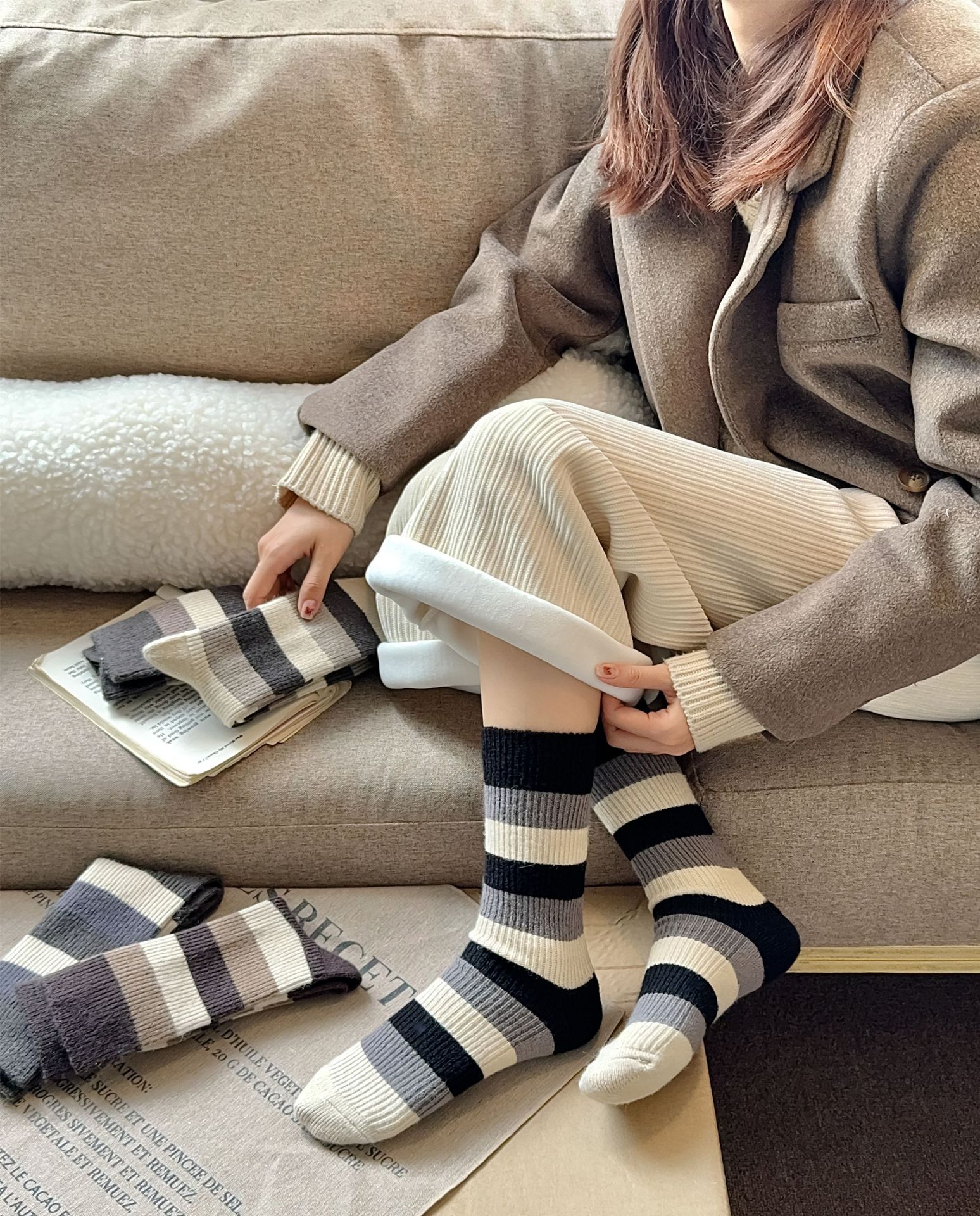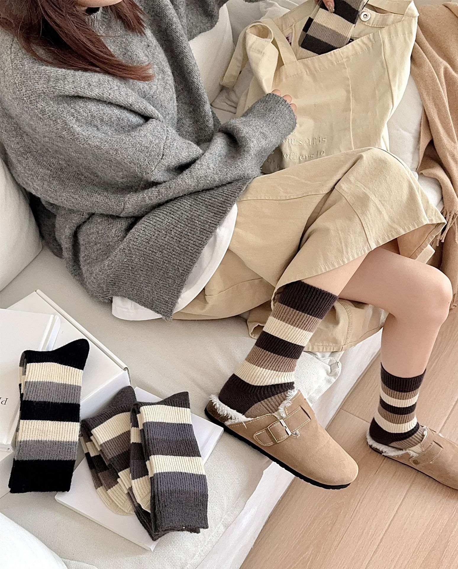새로운 두꺼운 모조 캐시미어 여성용 양말 따뜻한 · 열 보관 양말 라이트 베이지 동대문 디자인 와이드 스트립 스택 양말스토어 가기