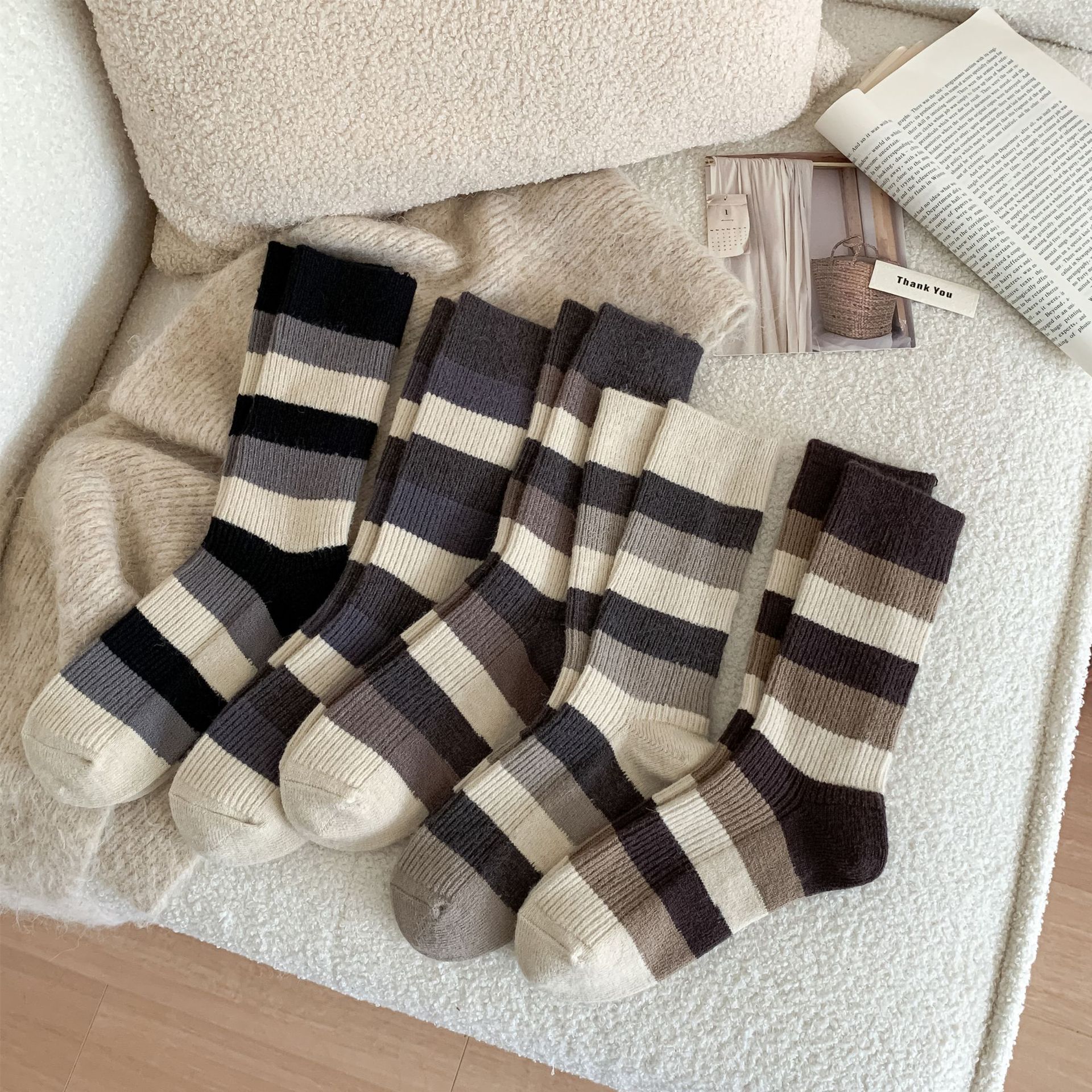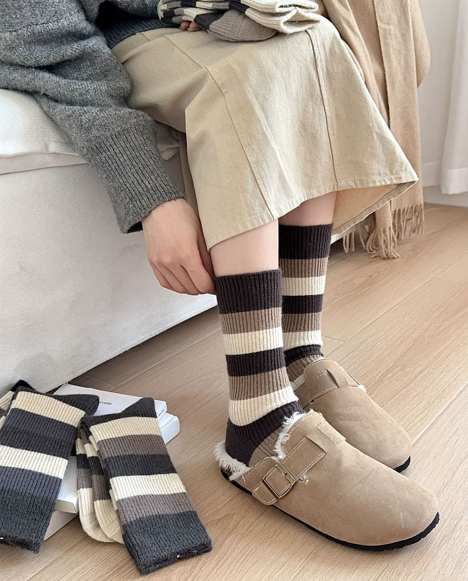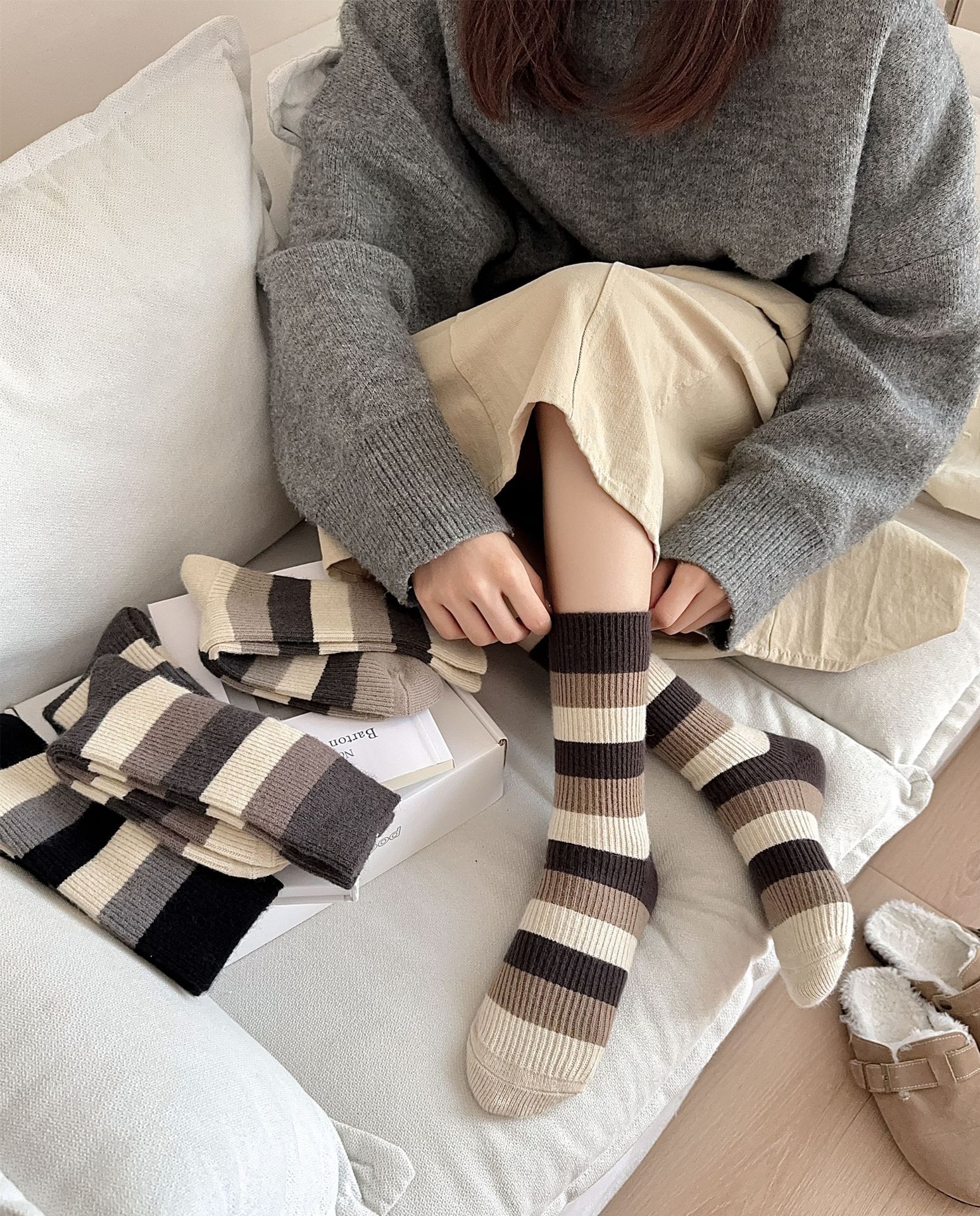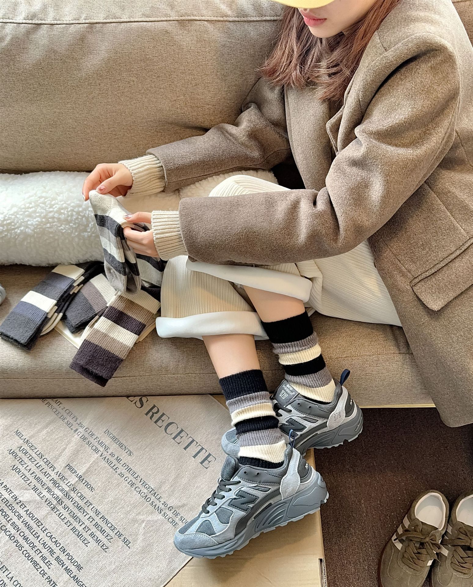 새로운 두꺼운 모조 캐시미어 여성용 양말 따뜻한 · 열 보관 양말 라이트 베이지 동대문 디자인 와이드 스트립 스택 양말스토어 가기
