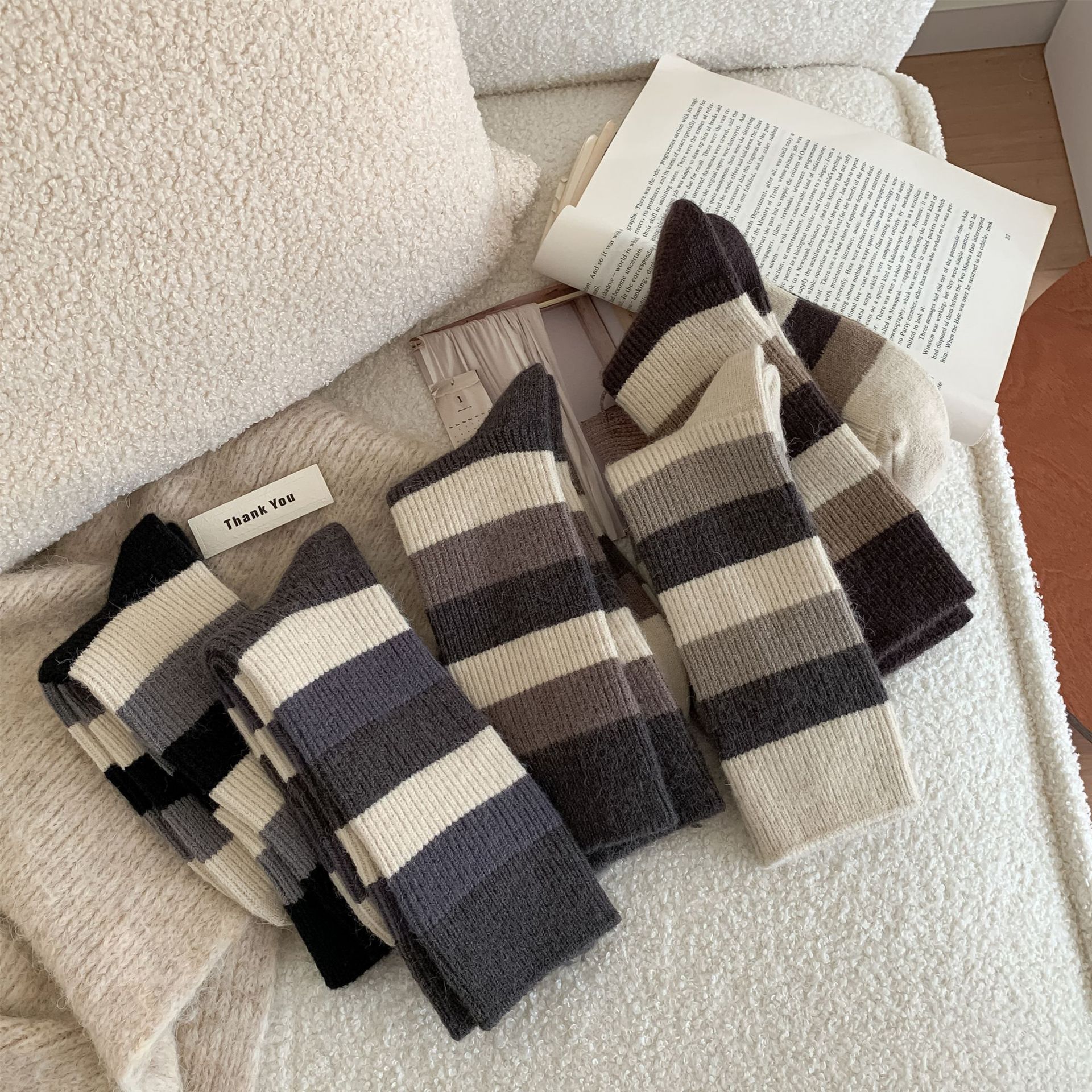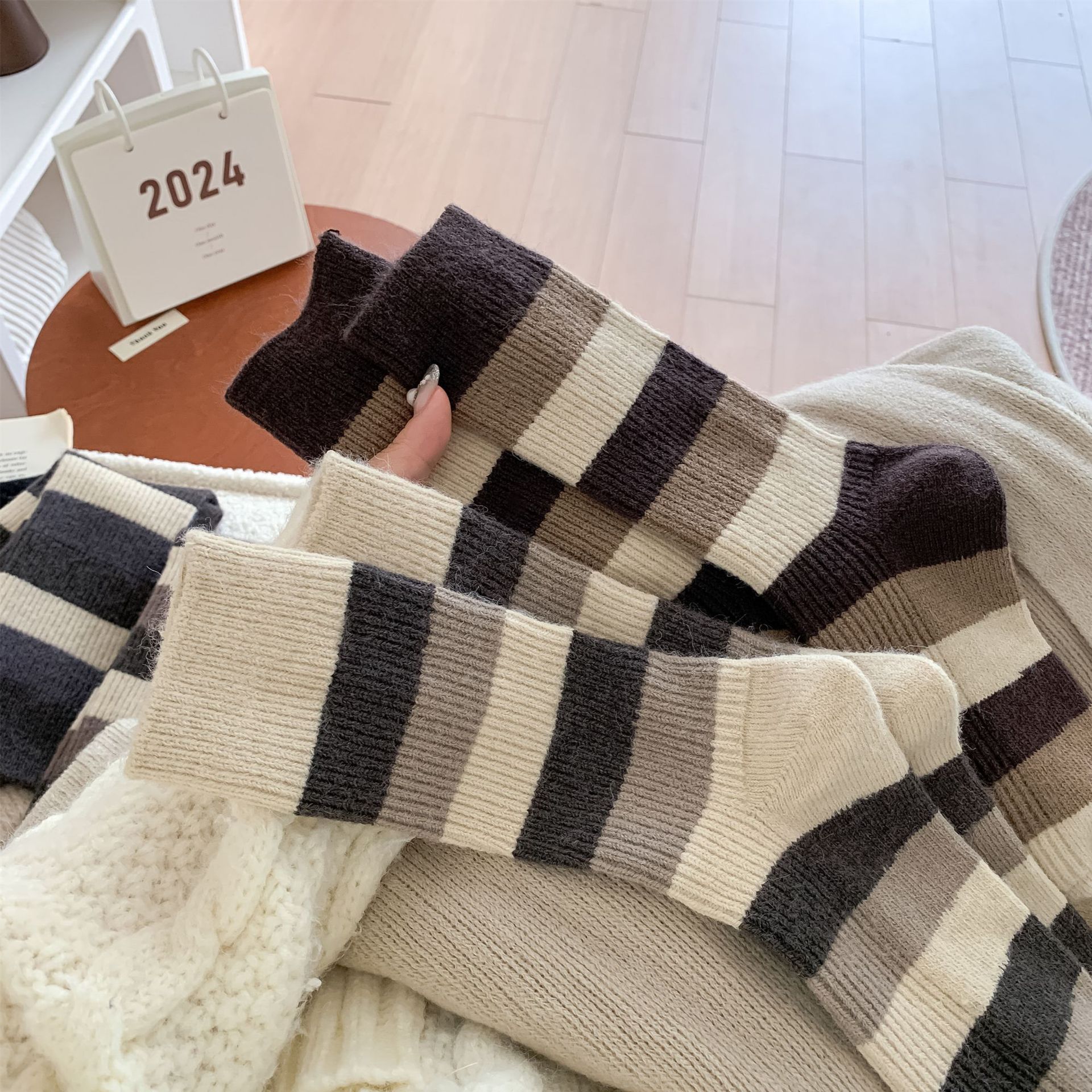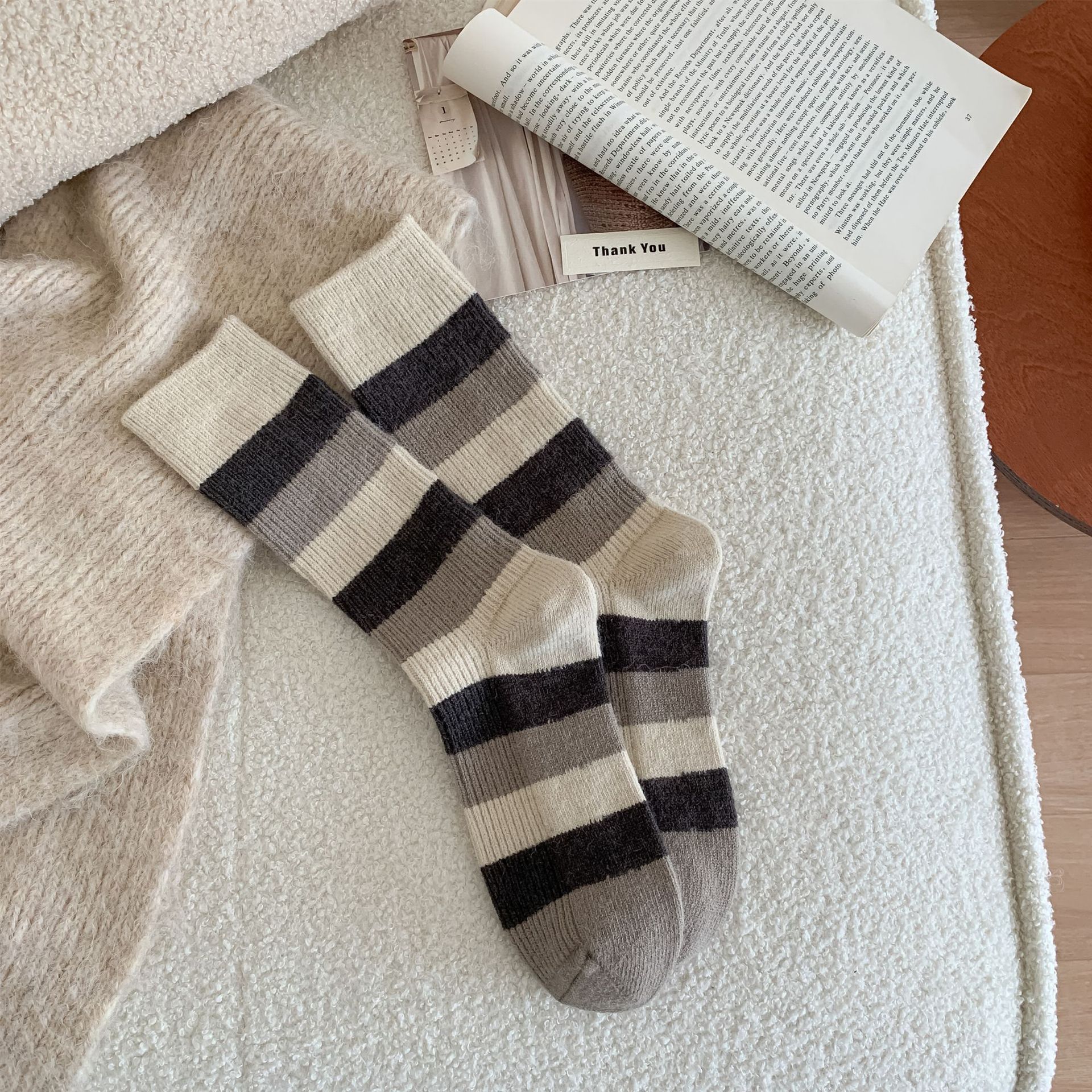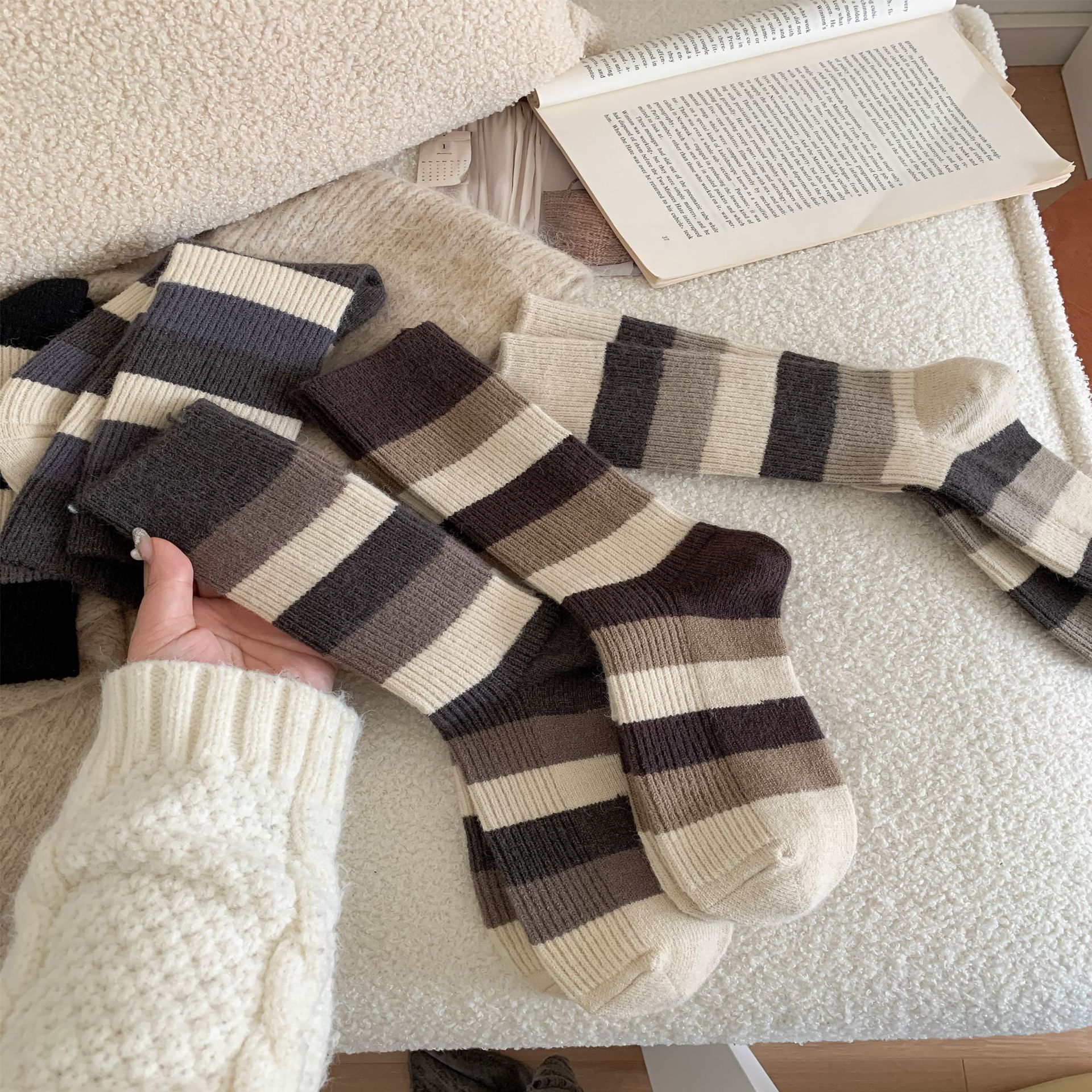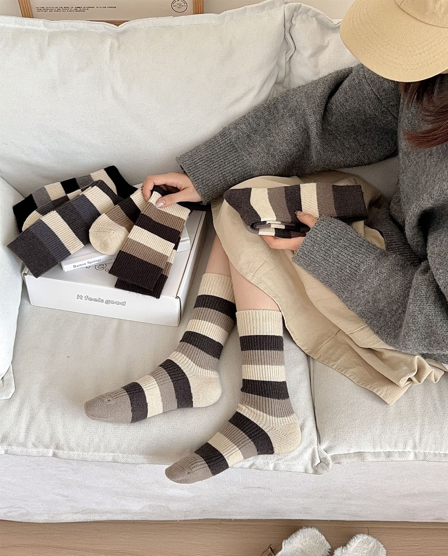 새로운 두꺼운 모조 캐시미어 여성용 양말 따뜻한 · 열 보관 양말 라이트 베이지 동대문 디자인 와이드 스트립 스택 양말스토어 가기
