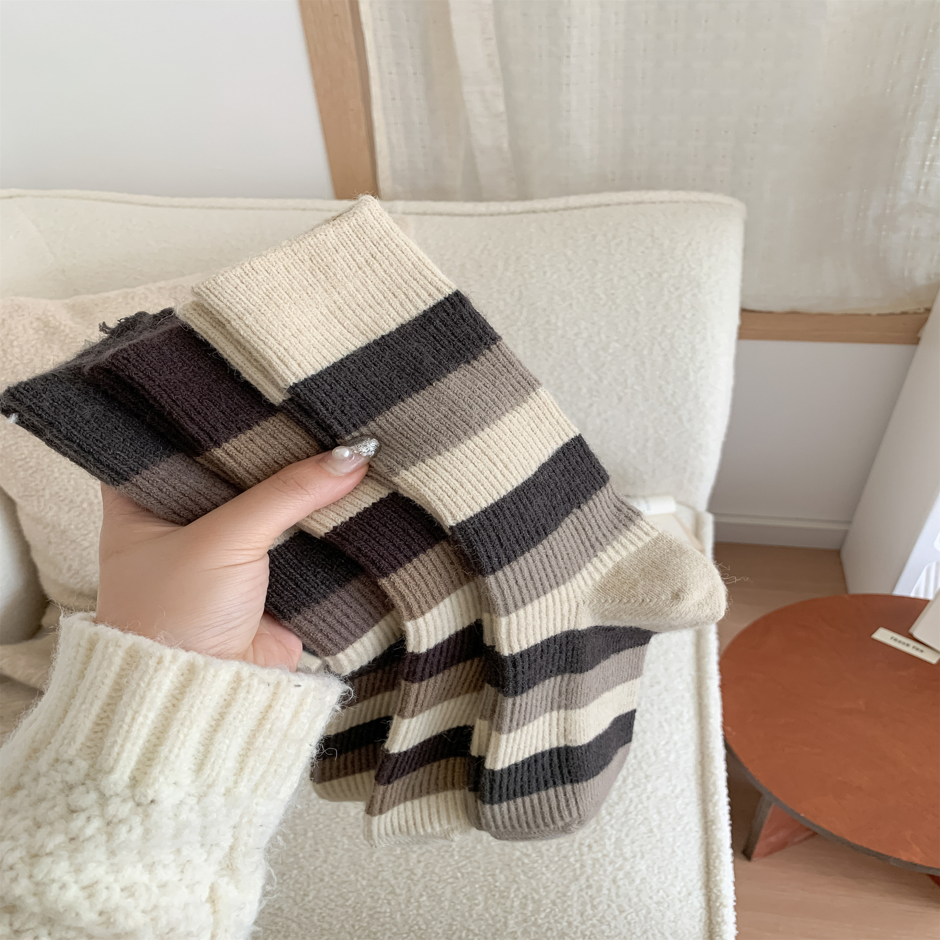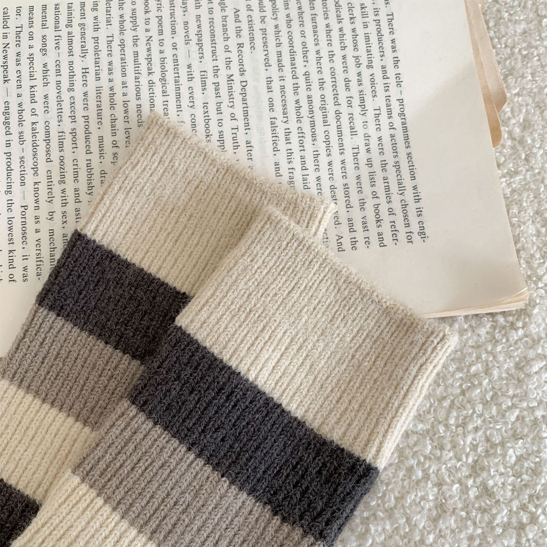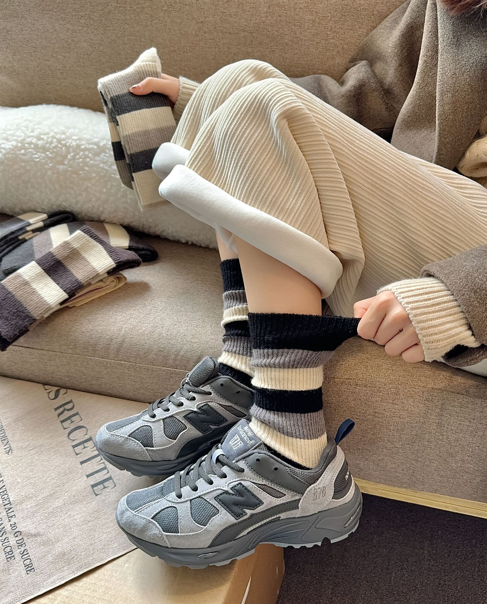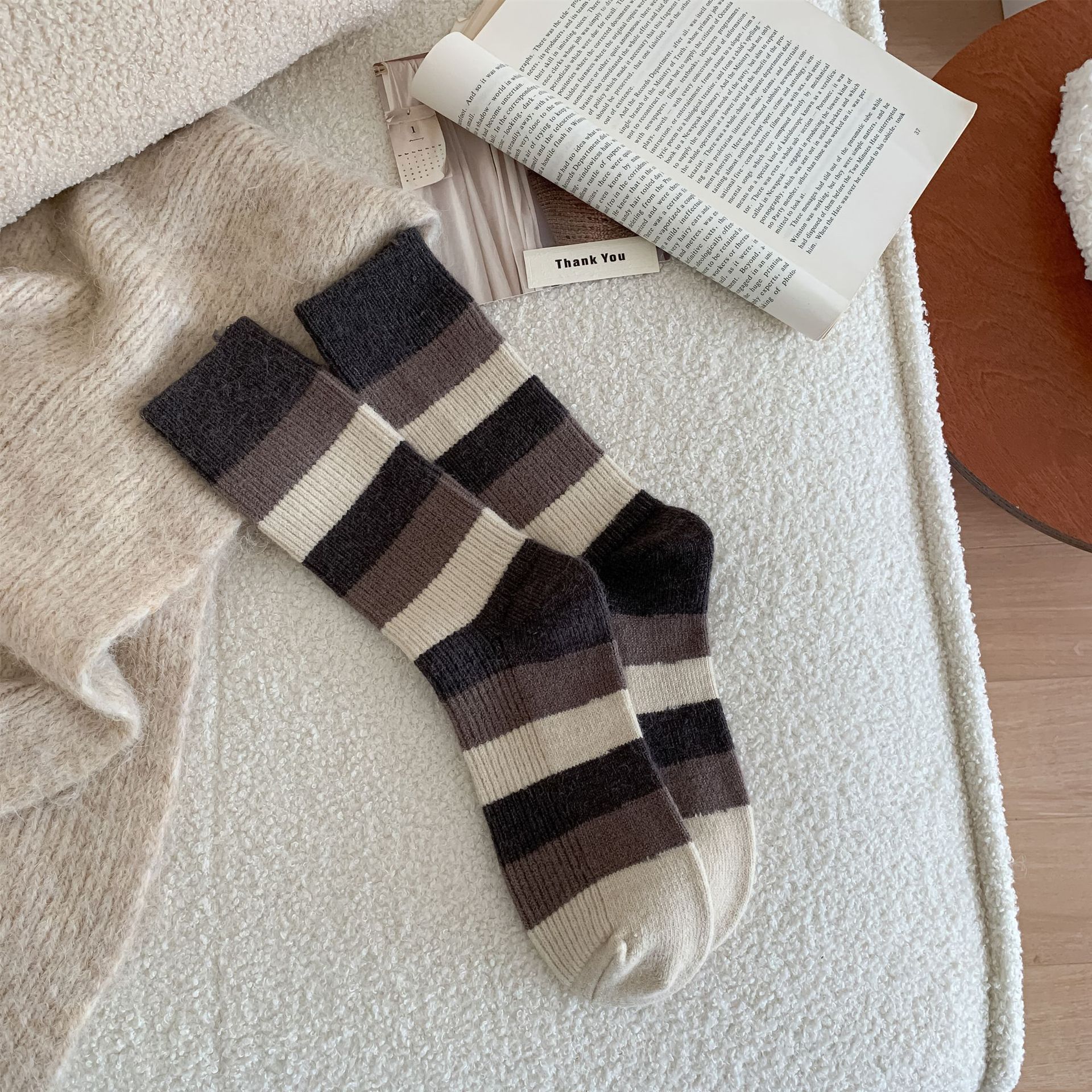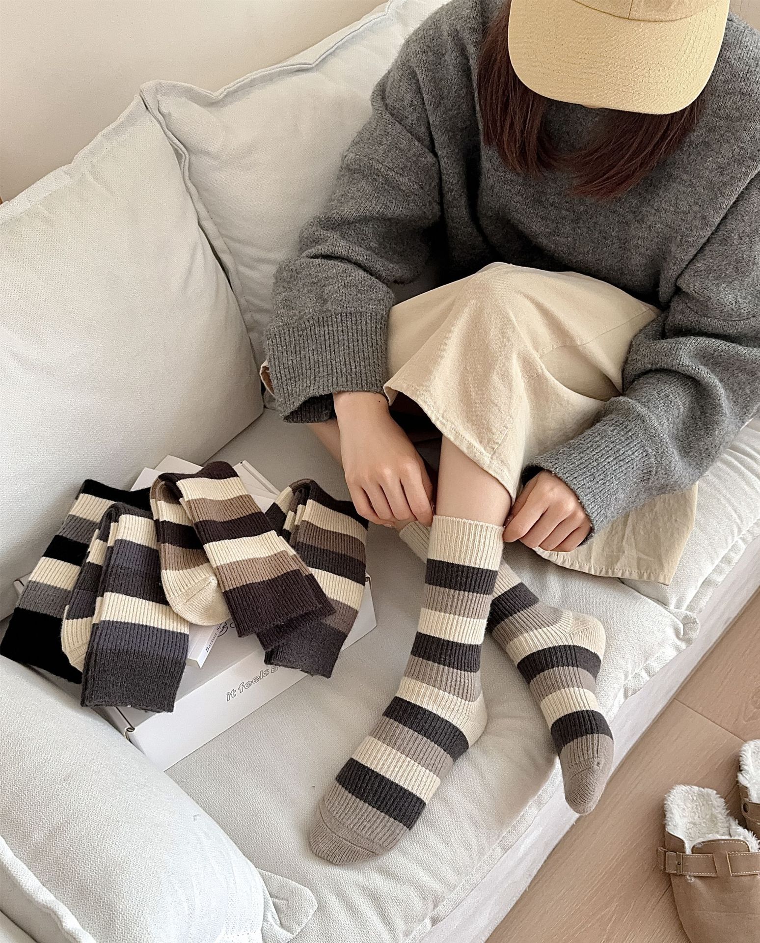 새로운 두꺼운 모조 캐시미어 여성용 양말 따뜻한 · 열 보관 양말 라이트 베이지 동대문 디자인 와이드 스트립 스택 양말스토어 가기