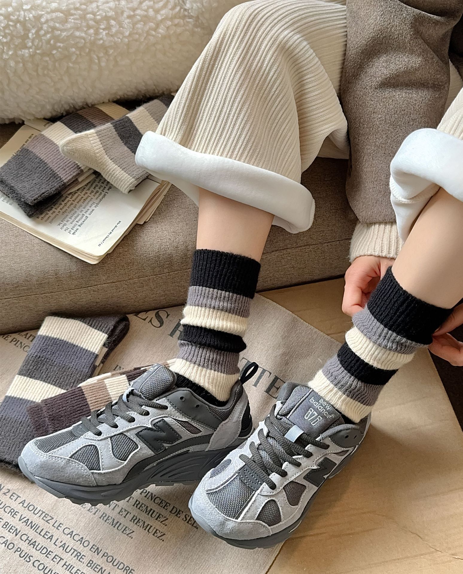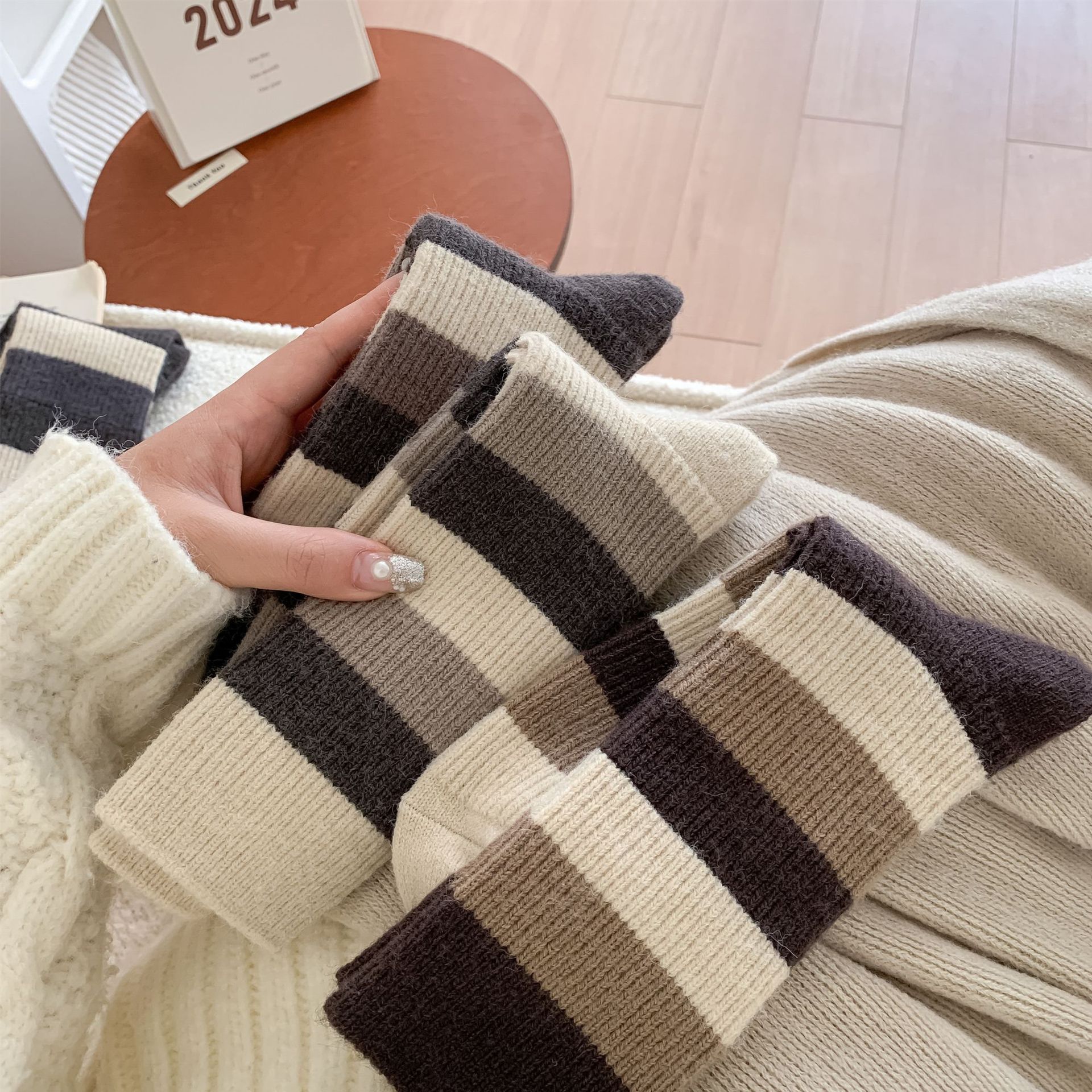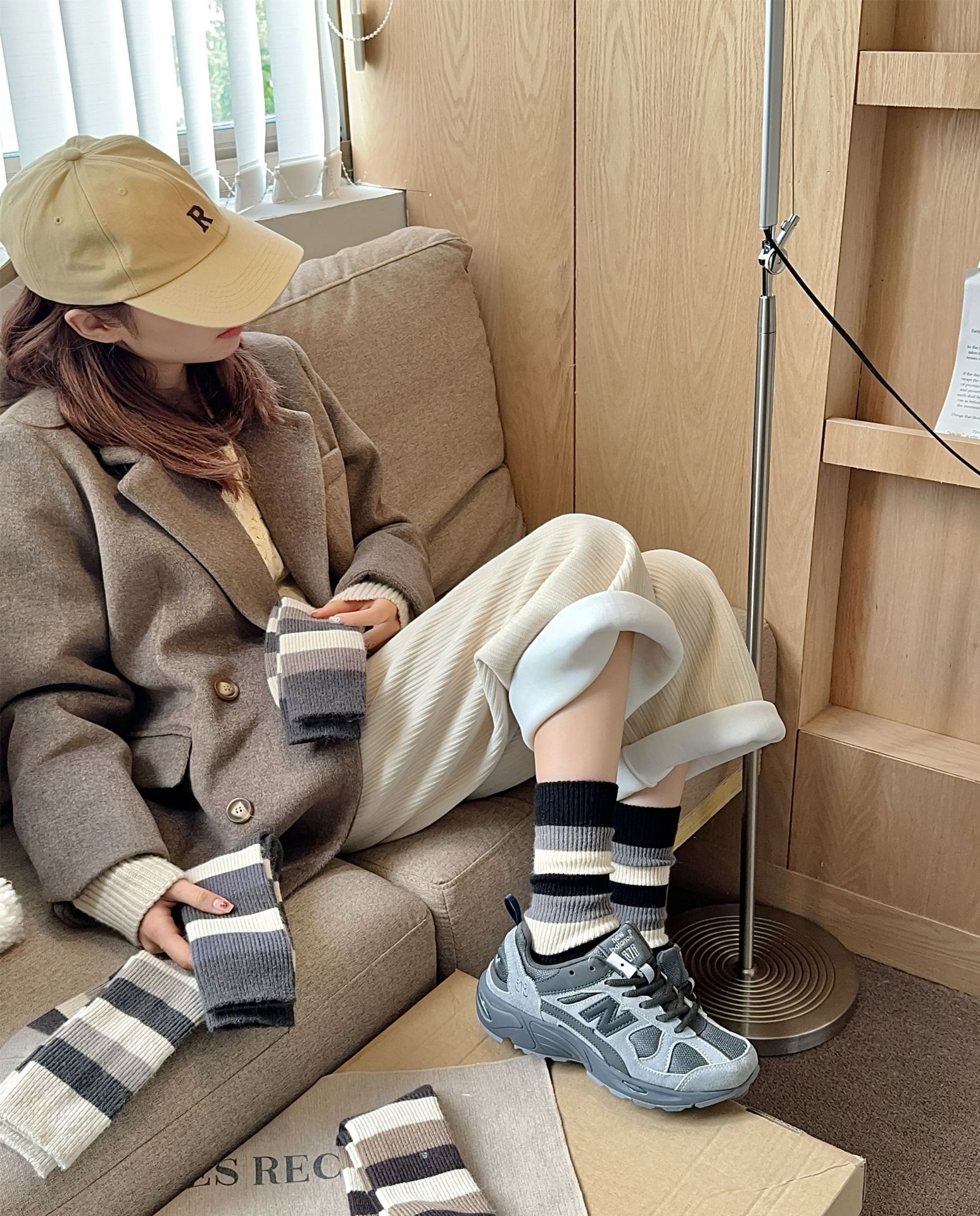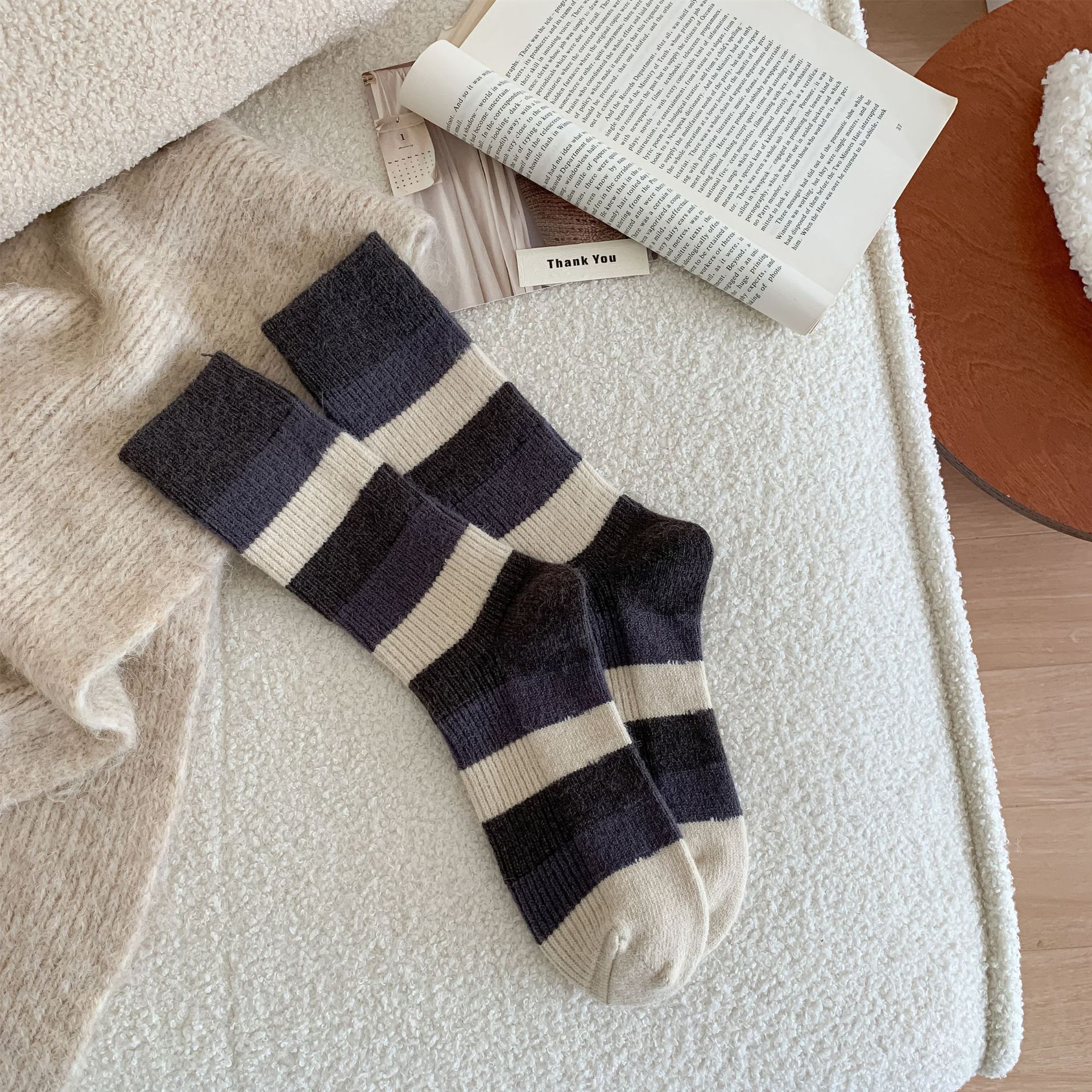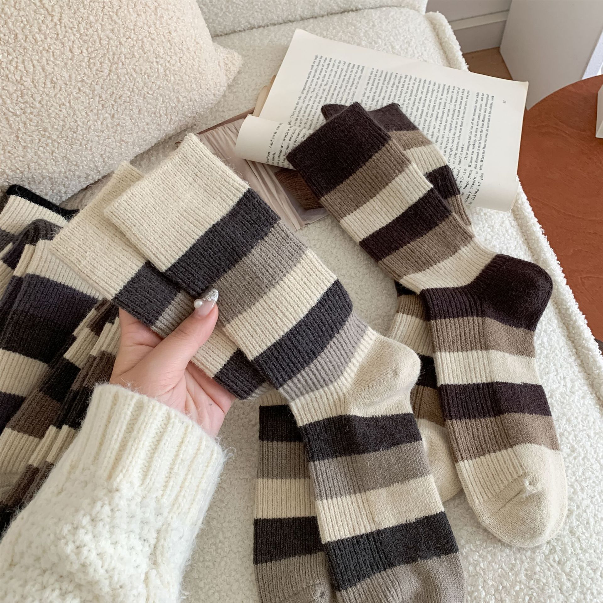 새로운 두꺼운 모조 캐시미어 여성용 양말 따뜻한 · 열 보관 양말 라이트 베이지 동대문 디자인 와이드 스트립 스택 양말스토어 가기