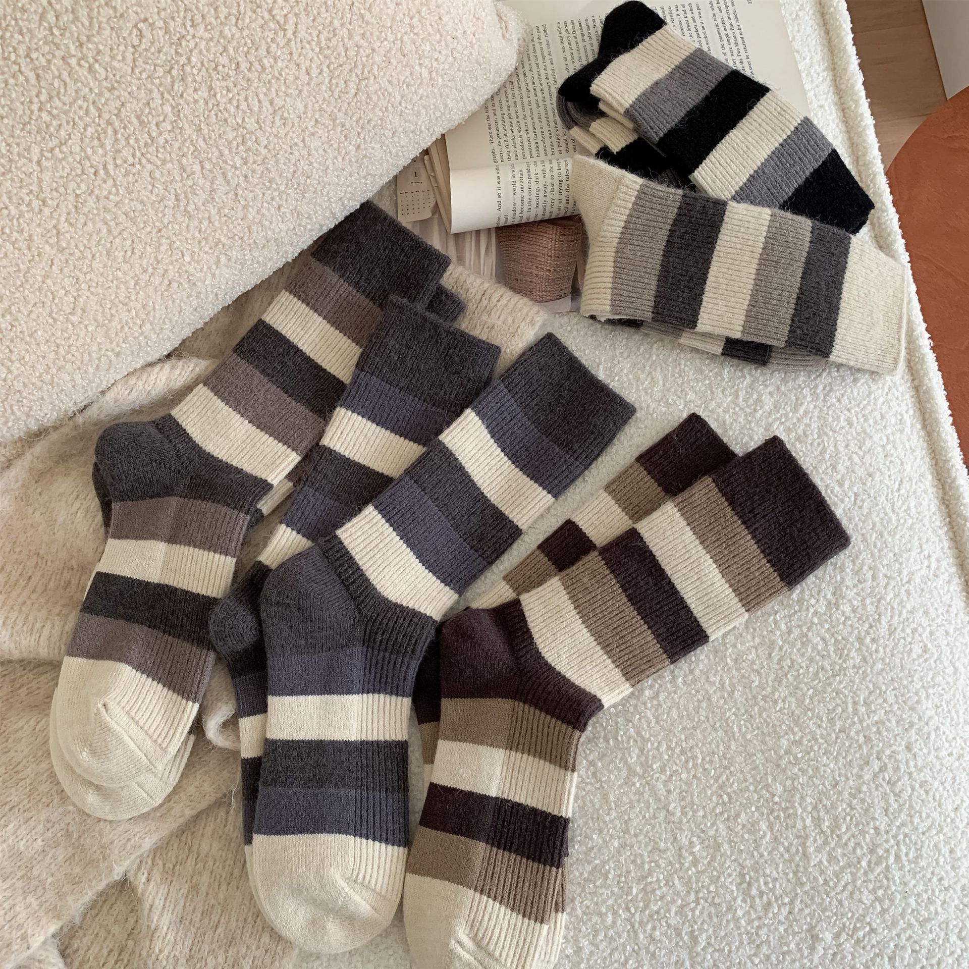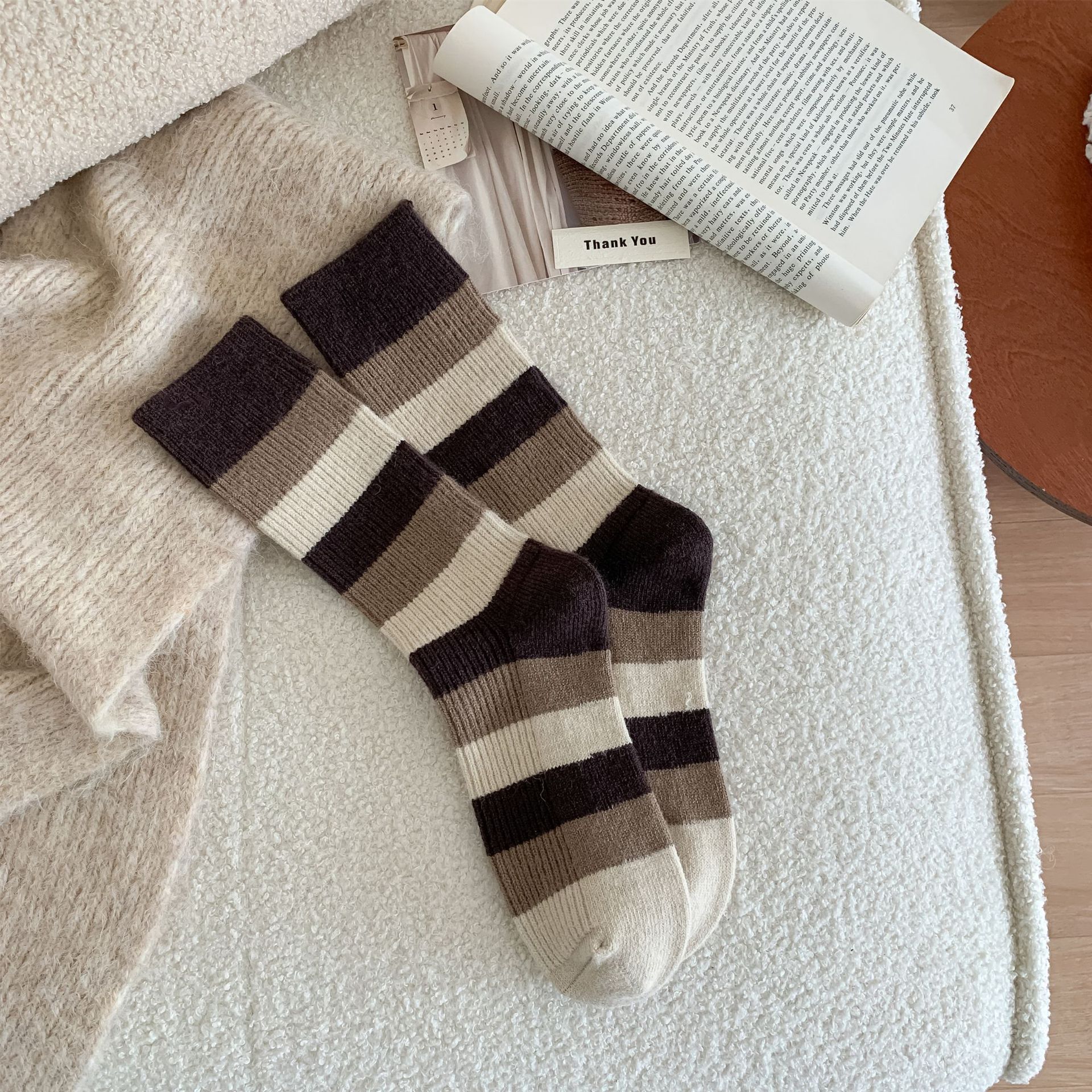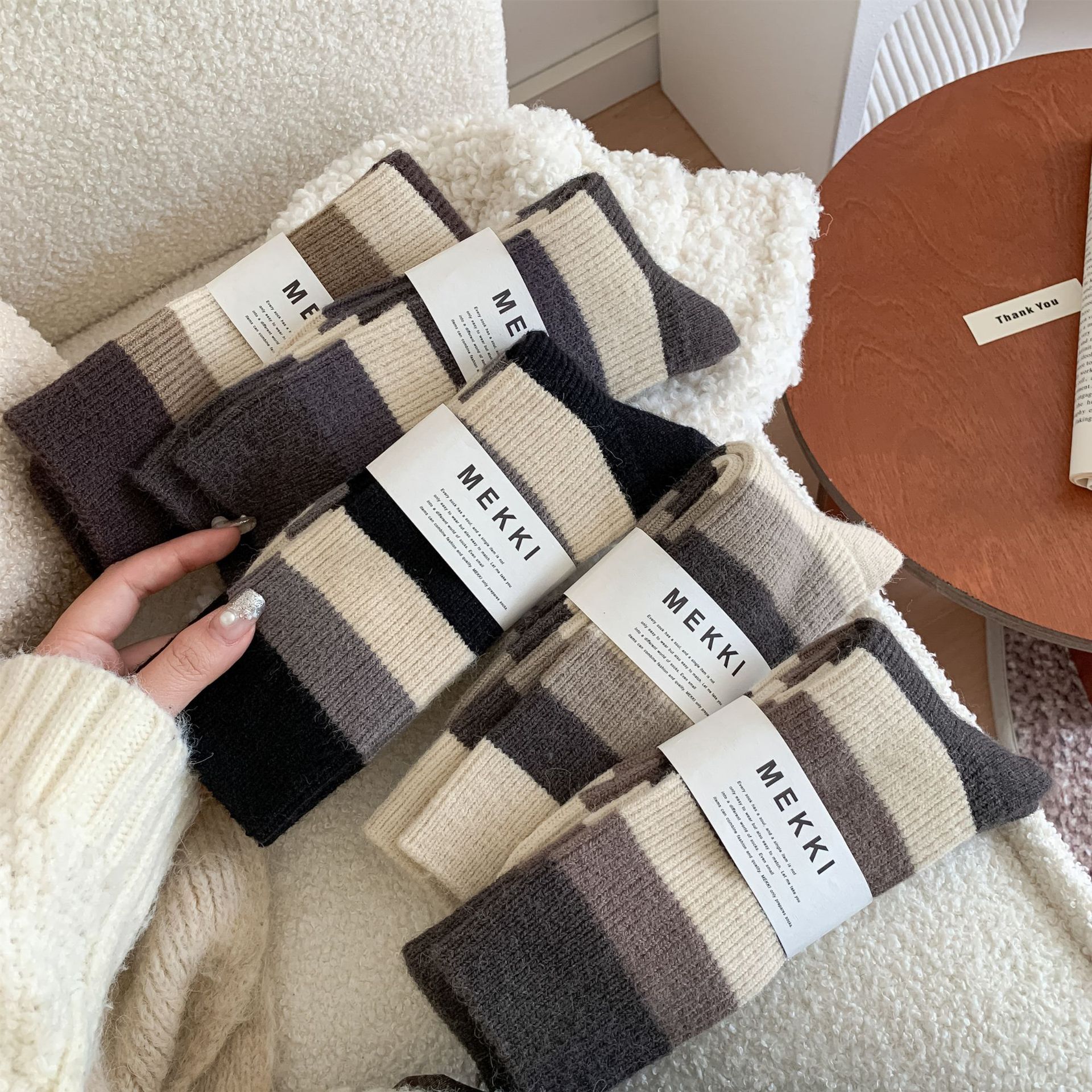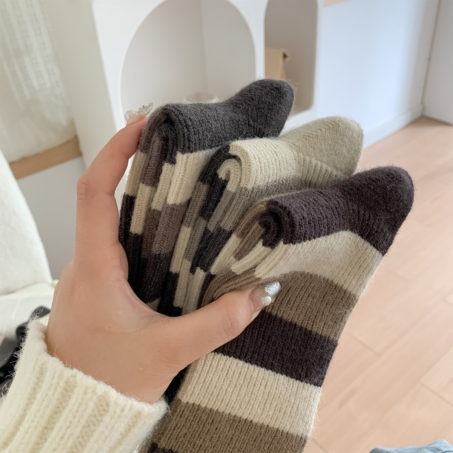 새로운 두꺼운 모조 캐시미어 여성용 양말 따뜻한 · 열 보관 양말 라이트 베이지 동대문 디자인 와이드 스트립 스택 양말스토어 가기