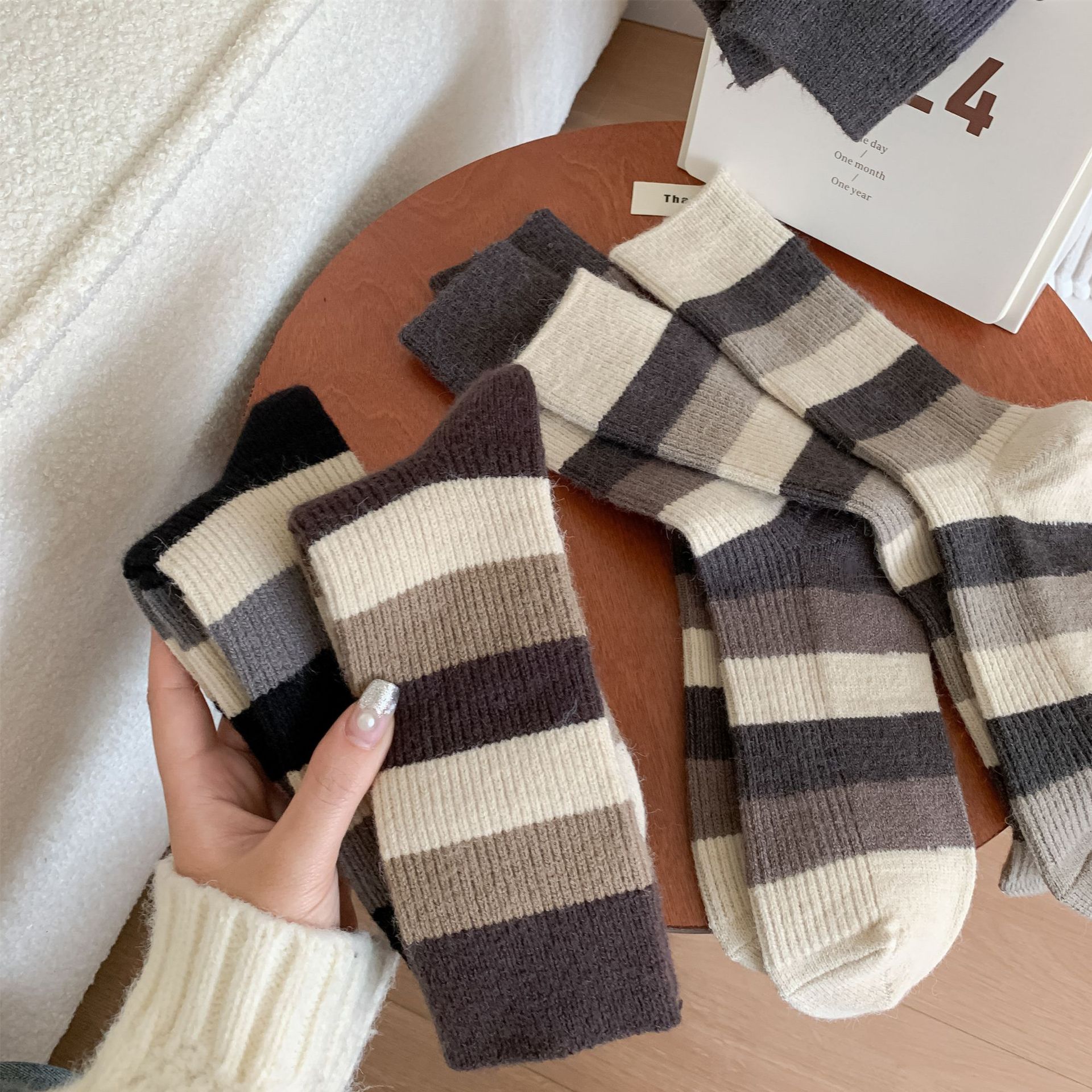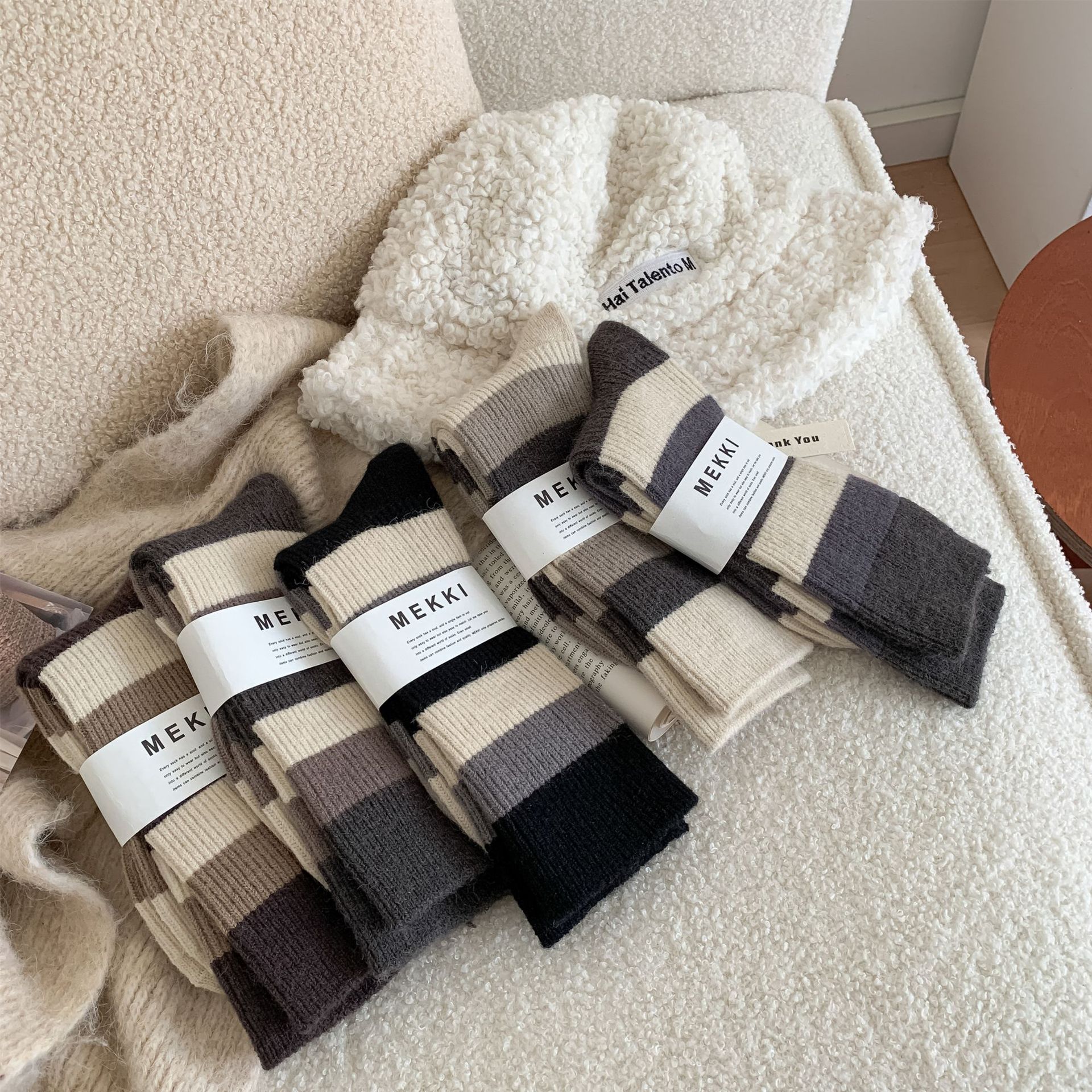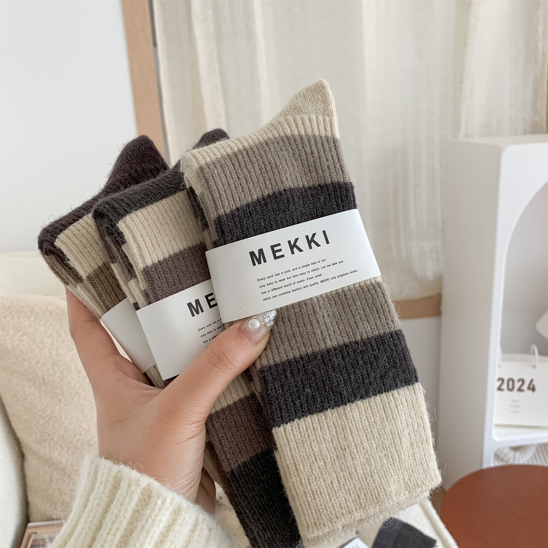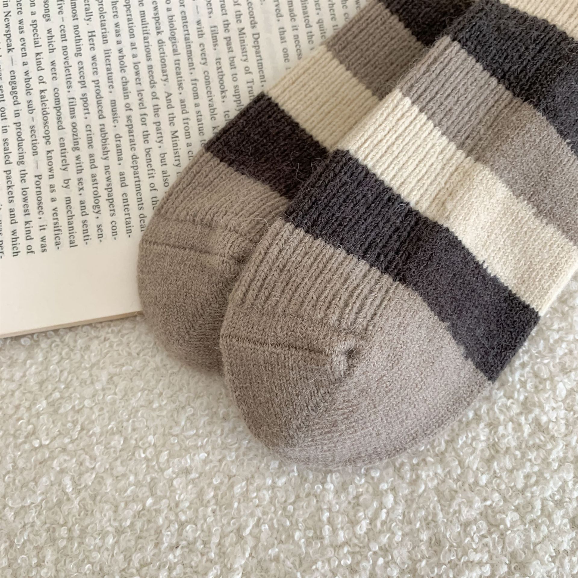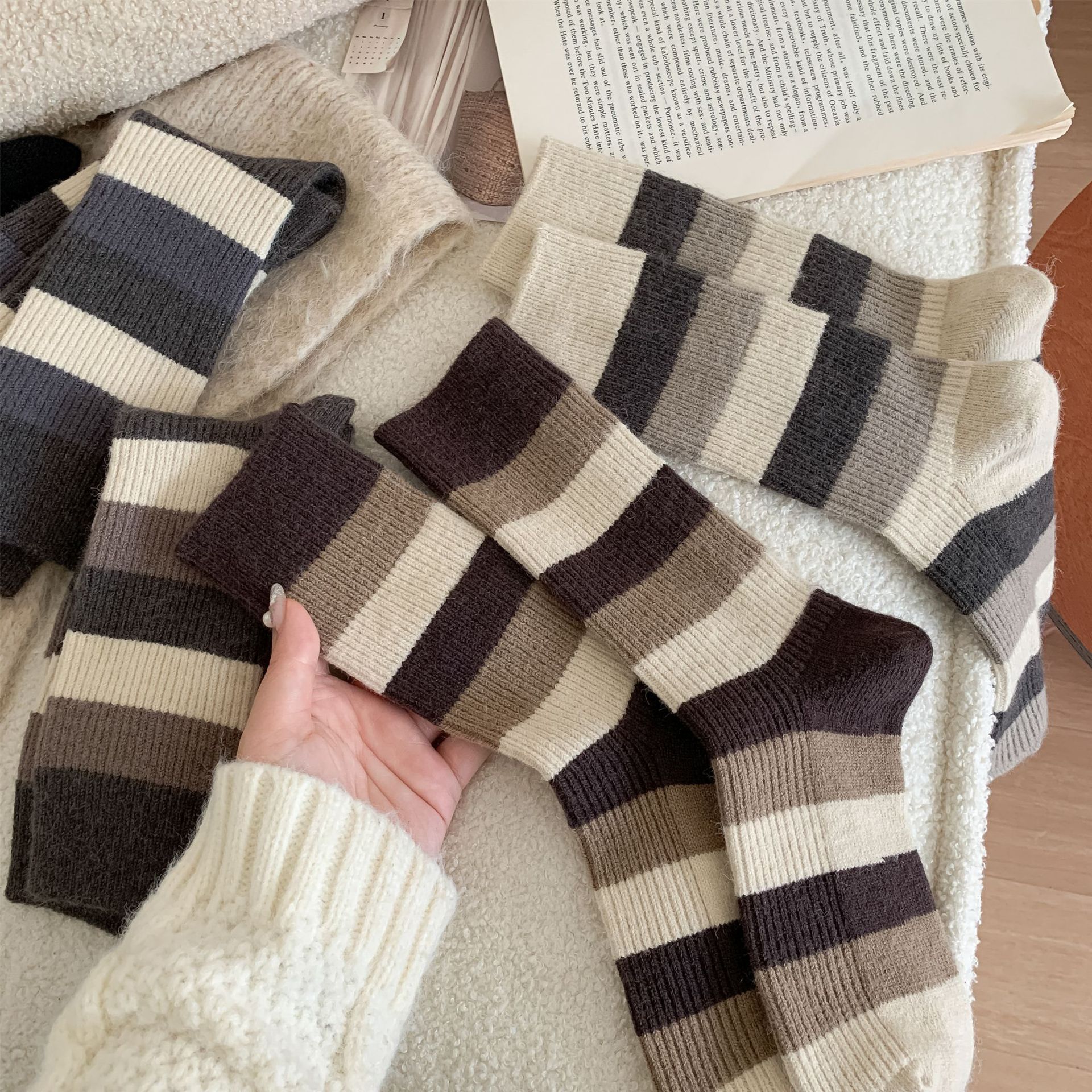 새로운 두꺼운 모조 캐시미어 여성용 양말 따뜻한 · 열 보관 양말 라이트 베이지 동대문 디자인 와이드 스트립 스택 양말스토어 가기