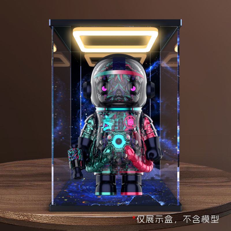 백라이트 HD 디스플레이 박스 POPMART 버블 마트 몰리 400% 핑크 및 보라색 가시 수제스토어 가기