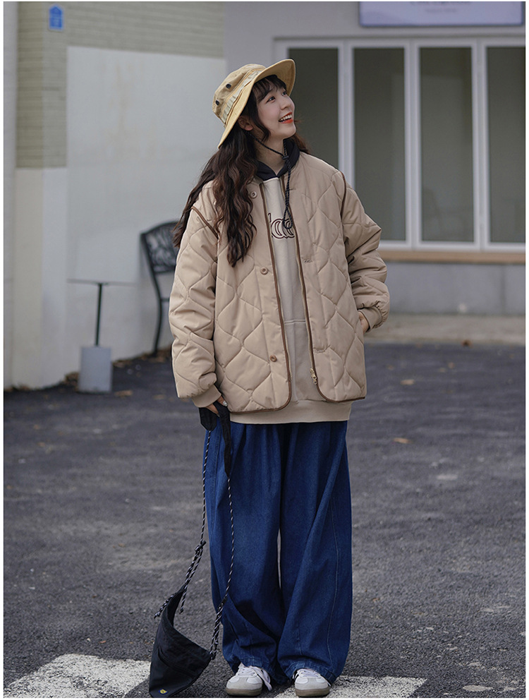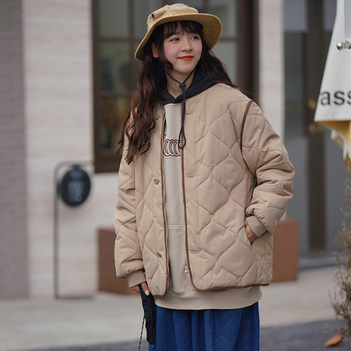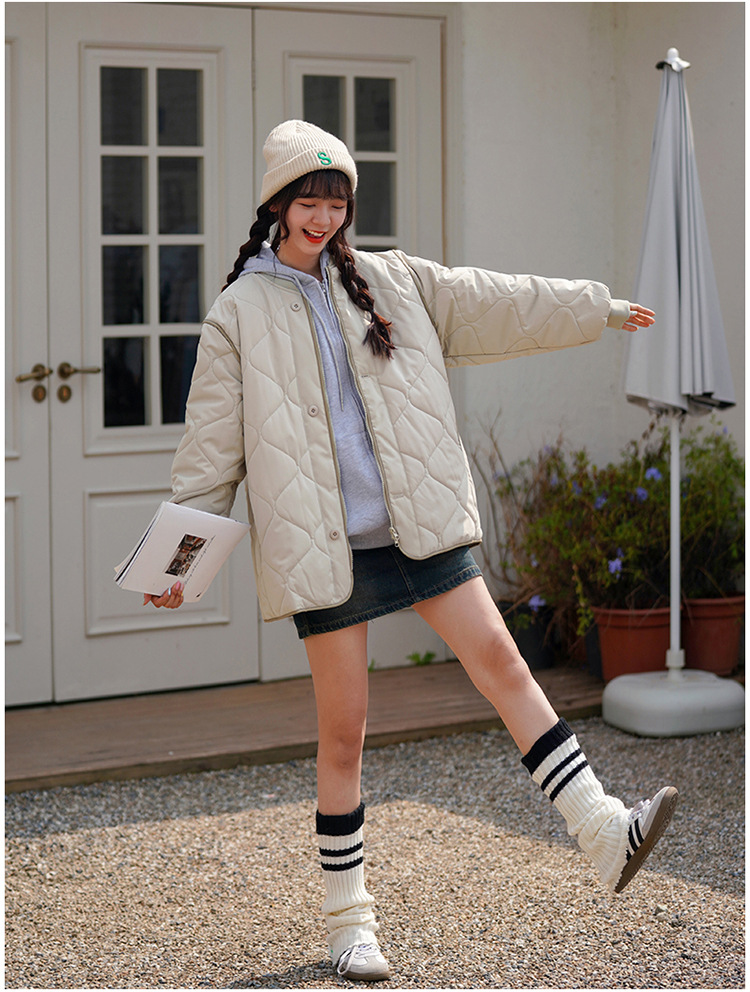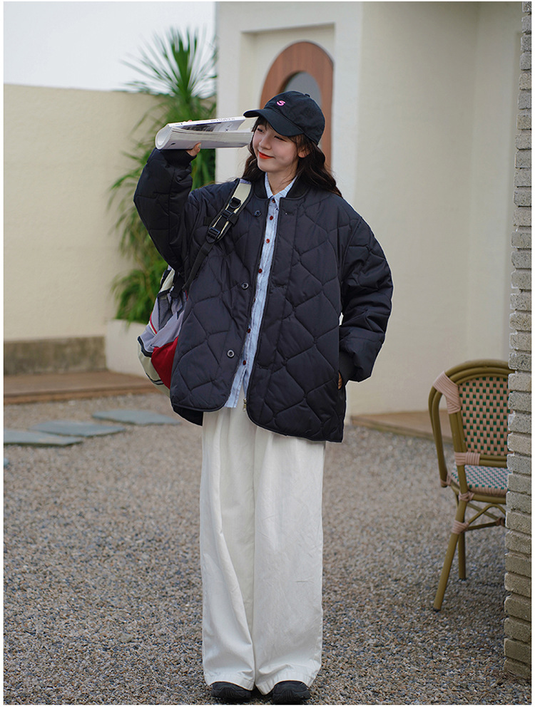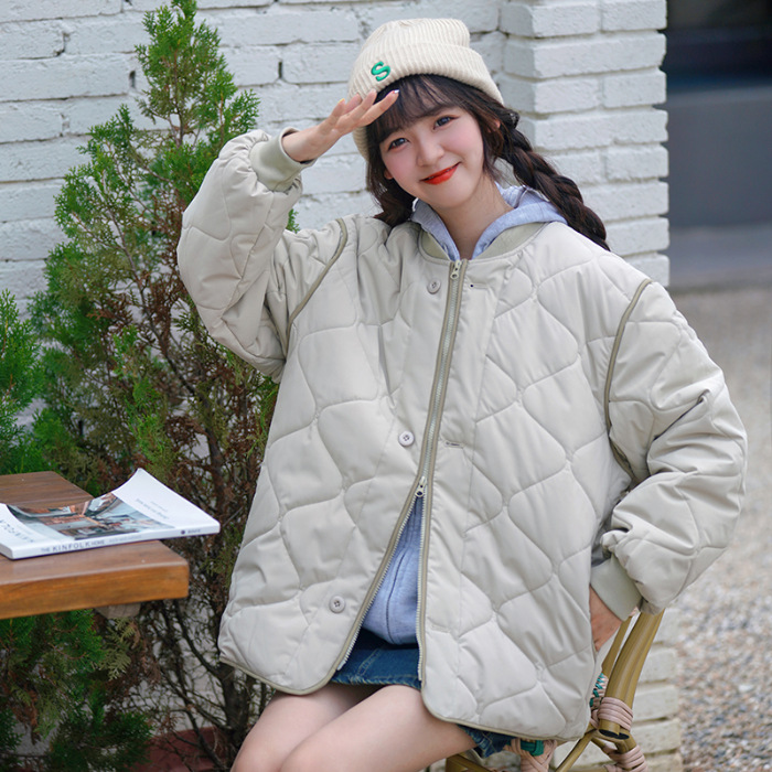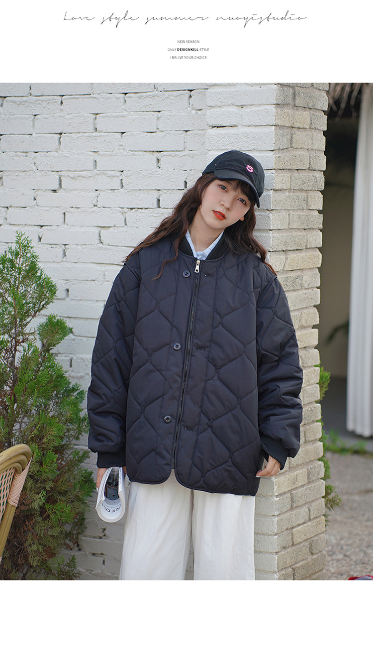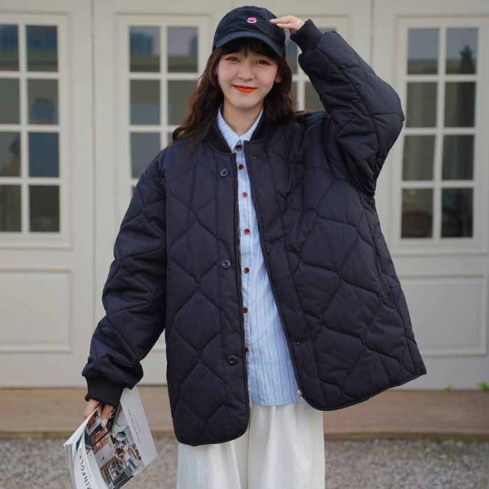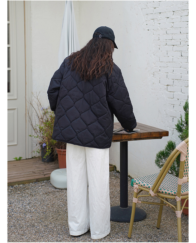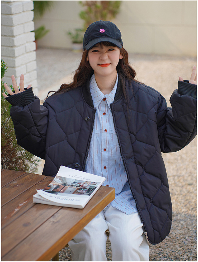 리얼 샷 다운 코튼 패딩 재킷 여자 겨울 한국 스타일 다이아몬드 모양의 격자 모양의 두꺼운 코튼 패딩 코트 플러스 사이즈 코트스토어 가기