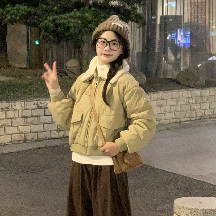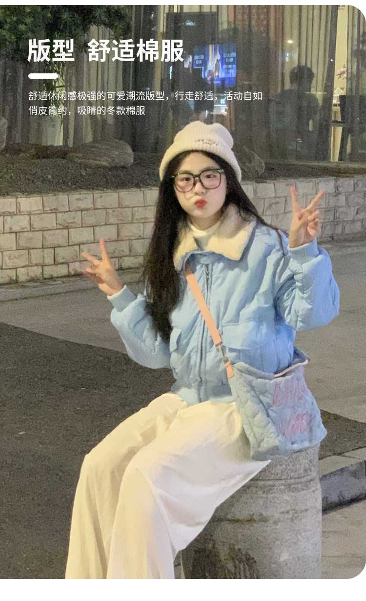 실제 샷 탈착식 칼라 다운 코튼 패딩 재킷 여자 겨울 2024 새로운 한국 버전 올 매치 패딩 면화 패딩 재킷 코트스토어 가기
