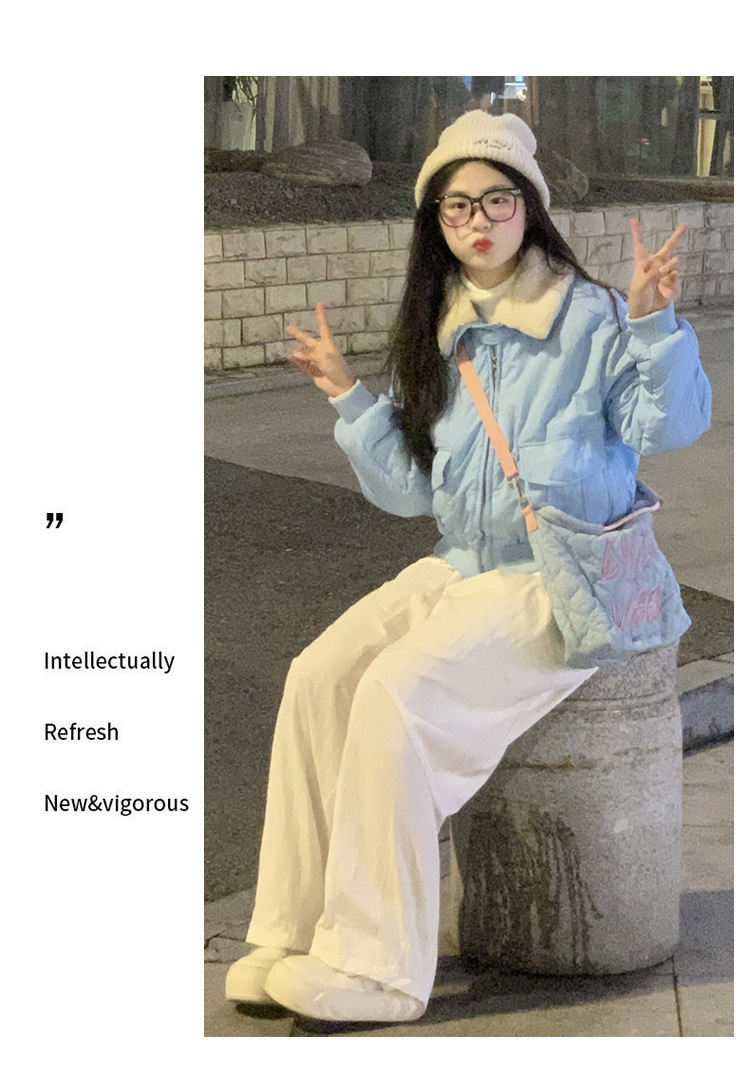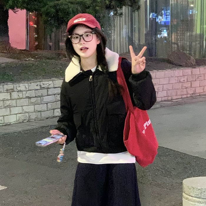 실제 샷 탈착식 칼라 다운 코튼 패딩 재킷 여자 겨울 2024 새로운 한국 버전 올 매치 패딩 면화 패딩 재킷 코트