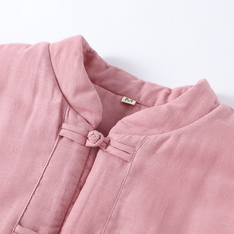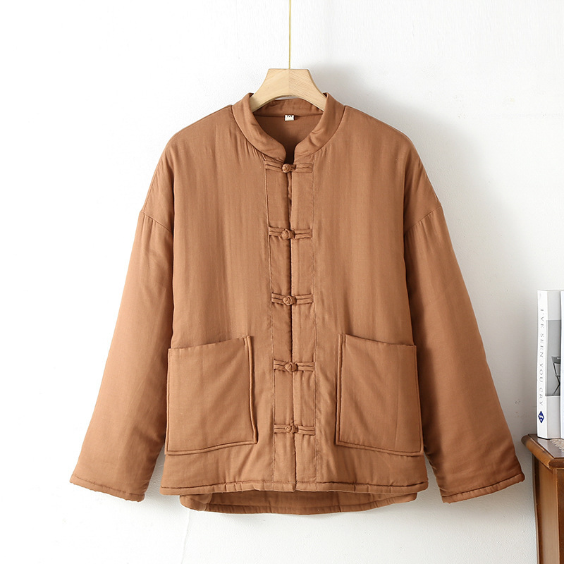 가을과 겨울 새로운 중국식 버클 3 층면 패딩 따뜻한 재킷은 남성과 여성을위한 두꺼운 가정 애호가의 잠옷 밖에서 착용 할 수 있습니다.