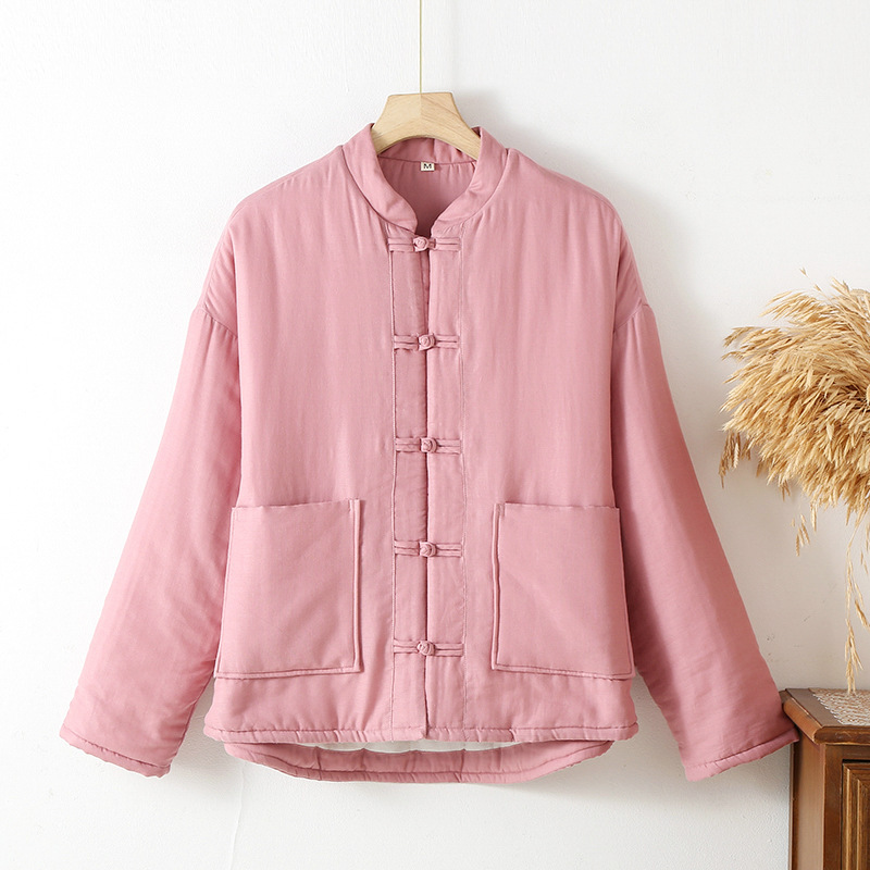 가을과 겨울 새로운 중국식 버클 3 층면 패딩 따뜻한 재킷은 남성과 여성을위한 두꺼운 가정 애호가의 잠옷 밖에서 착용 할 수 있습니다.스토어 가기