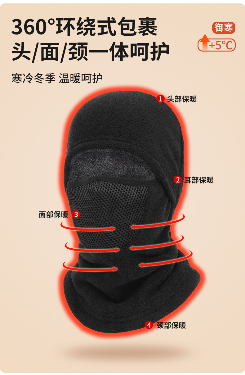 루이 동 국경 야외 사이클링 따뜻한 헤드 기어 방풍 방탄 스키 더블 레이어 두꺼운 마스크 다기능 양털 모자